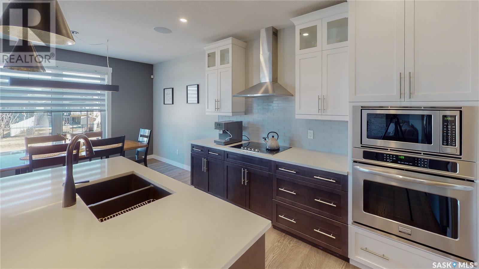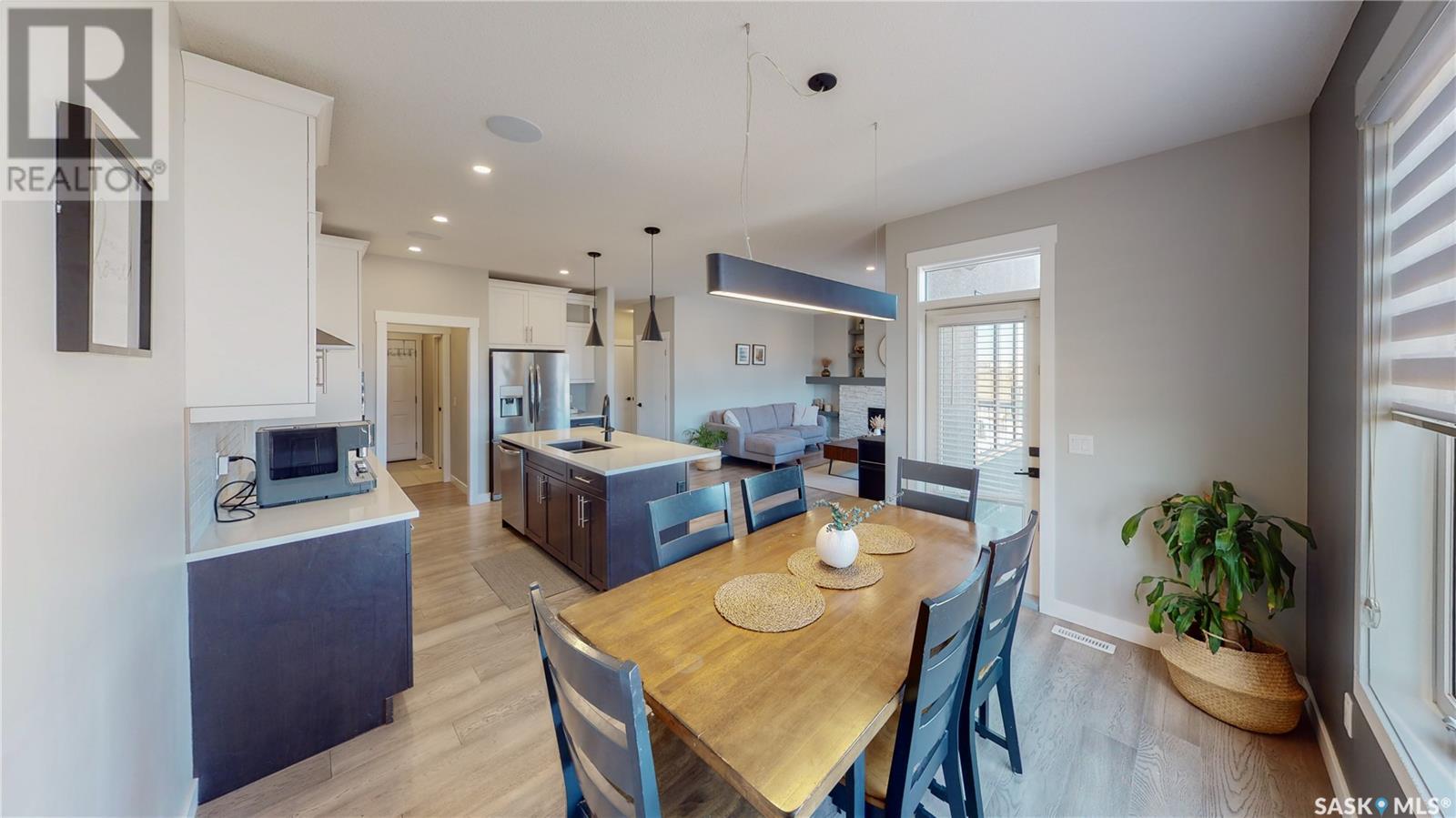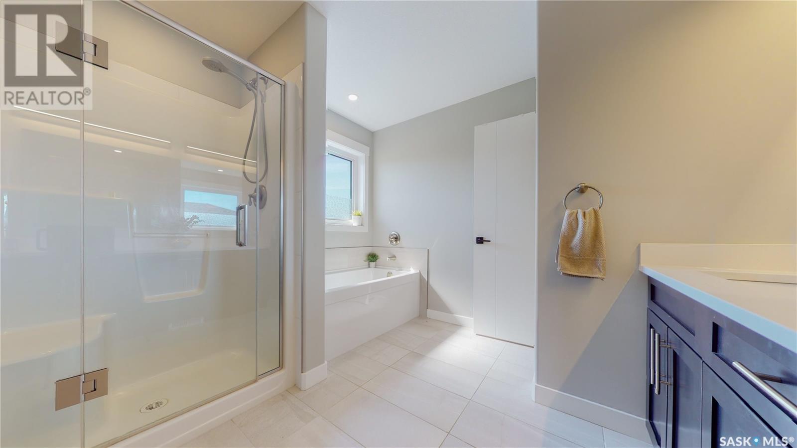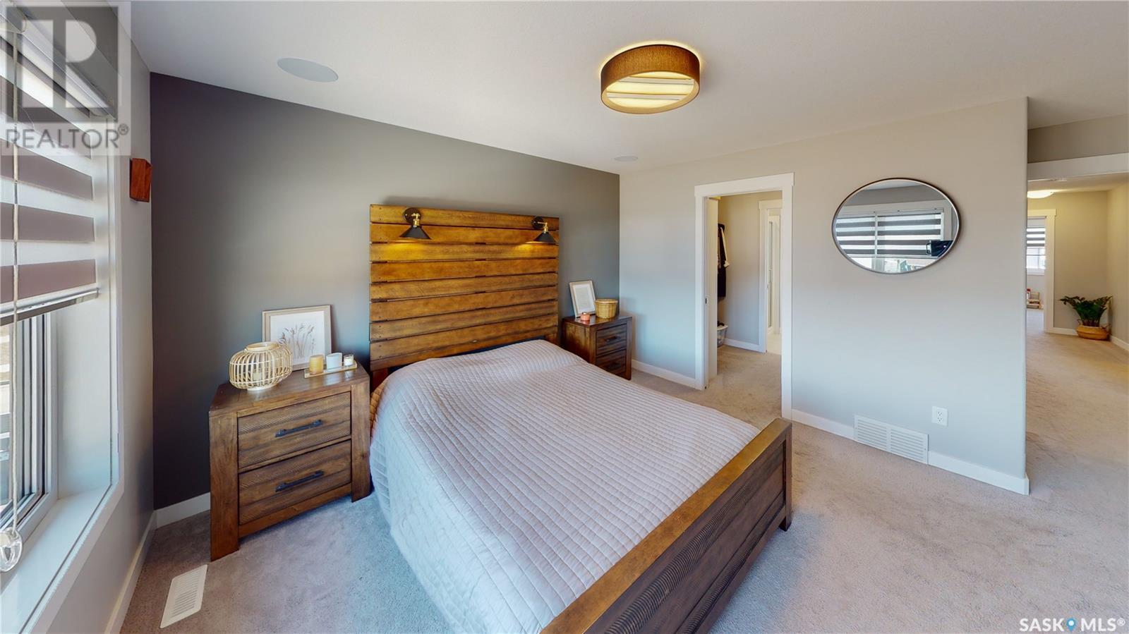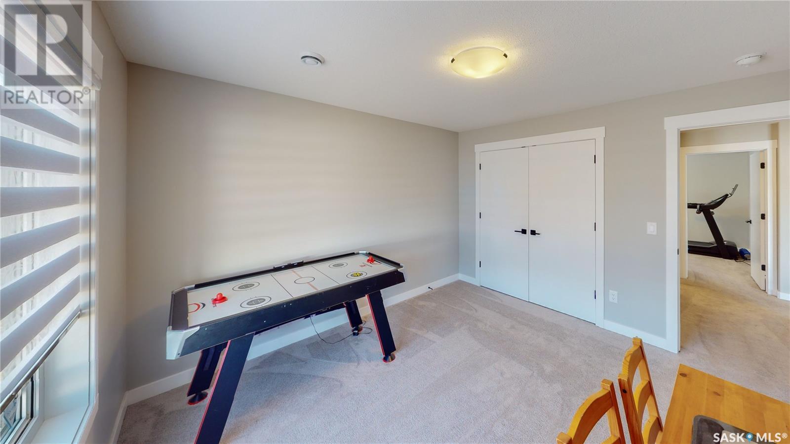 Looking for a beautifully crafted walk-out two-story home backing a walking path? Welcome to 4846 Greenview Cres E. in the very desirable neighborhood of the Greens On Gardiner. This Deveraux home built in 2018 generously offers 1918 sq ft (plus the basement) & is overflowing with space, warm natural light from the east exposure, & offers 5 bedrooms, 4 bathrooms, a bonus room, an oversized dbe garage & more! Upon entry, the foyer welcomes you into a large living room where a gas fireplace w’ stacked stone highlights a beautiful mantle, modern shelving & spacious design paired with the h-wood flooring. The area naturally opens to a lovely dining area with access to the patio. The kitchen offers quartz counters, upgraded cabinets, plenty of counter space, an eat-up island, & a walk-thru pantry that leads to a tiled mudroom w’ built-in cabinets (direct entry to garage). Completing the main floor is a 2 pc bath. Heading upstairs, the bonus room is such a versatile room – make it a playroom, a den, or simply stated - another sitting area to relax as you enjoy the beautiful sunshine. The primary bedroom is wonderfully designed with a walk thru closet leading to a spa-like ensuite with a soaker tub, shower, double quartz vanity & tiled flooring. Two additional bedrooms, another tiled full bath & an upstairs laundry room complete the 2nd level. The walk-out basement is fully developed with 2 more bedrooms, another full bath, a rec room, & utility/storage areas. The yard is open for your own ideas – plenty of room for a pool, trampoline, play structure, etc. It is partially fenced & backs the walking path that leads directly to the school & park area – fabulous for children to safely walk on their own. The location is superb - close to the popular & growing Acre 21 development featuring a grocery store, pharmacy, shopping, restaurants, clinics, & more! Walk for a coffee & enjoy all the paths & parks. Contact the sales professional to learn more. Immediate possession avail. (id:22211)