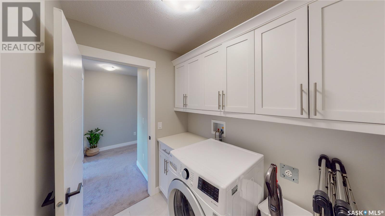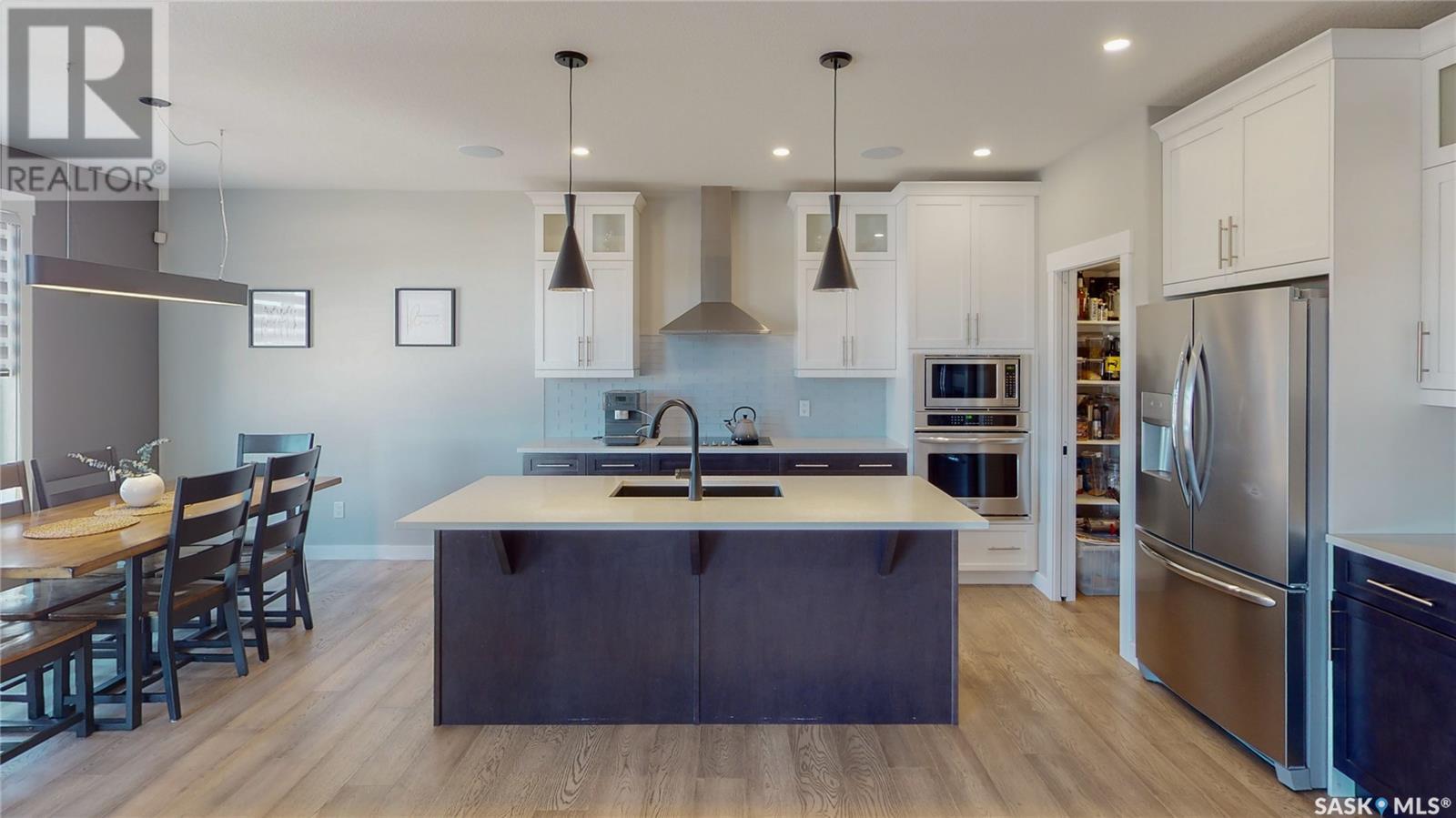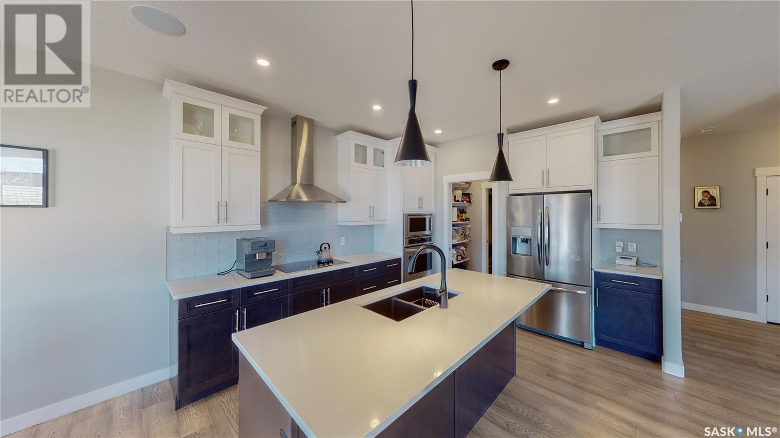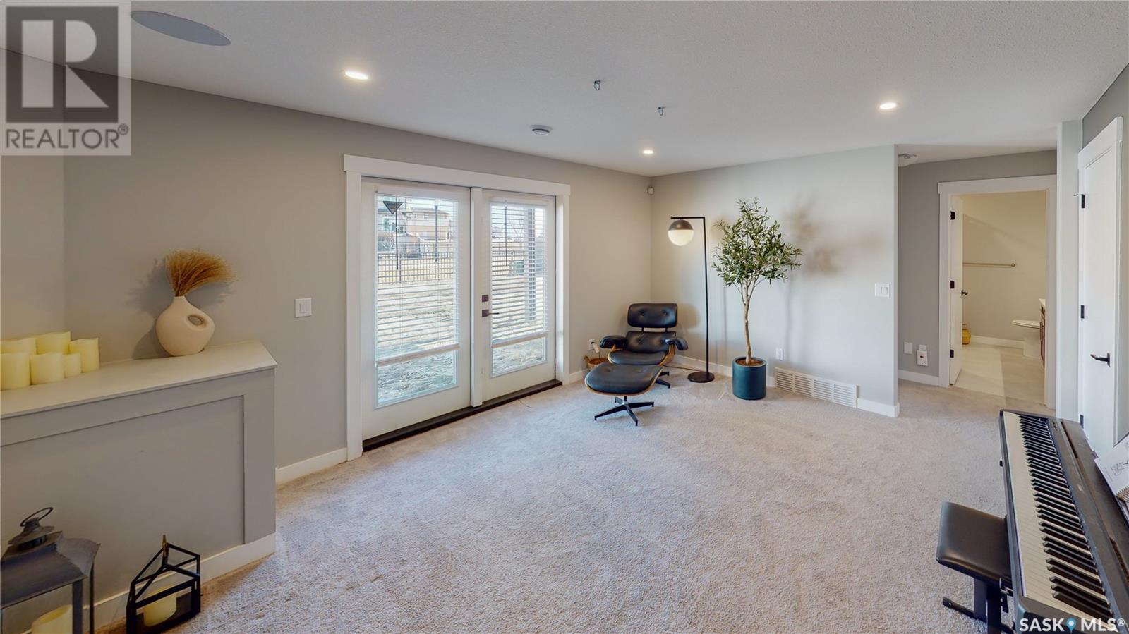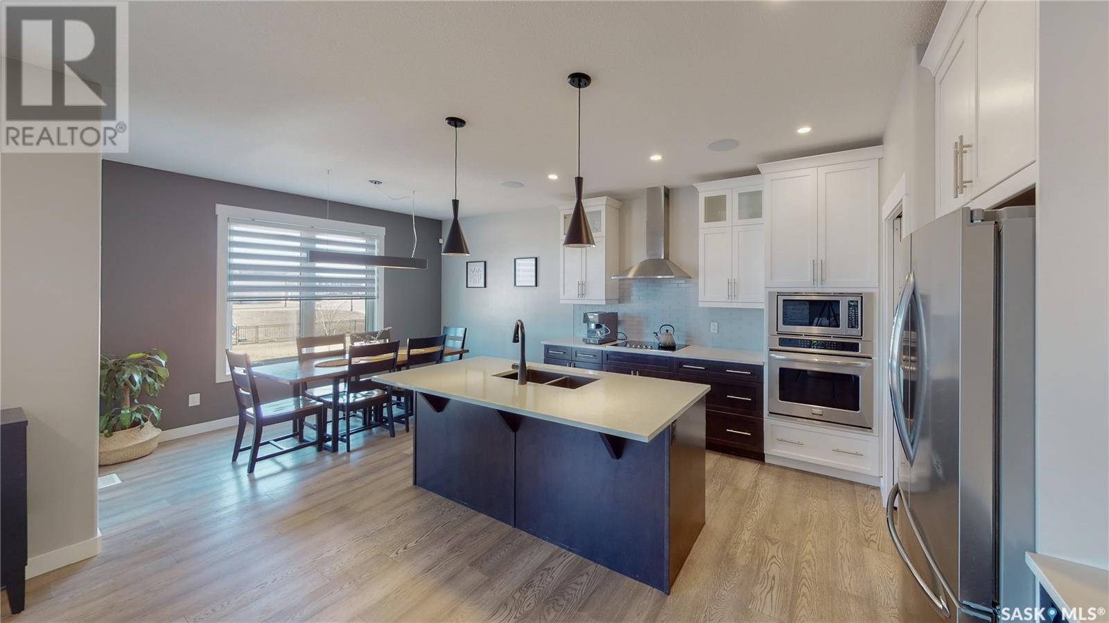 Looking for a beautifully crafted walk-out two-story home backing a walking path? Welcome to 4846 Greenview Cres E. in the very desirable neighborhood of the Greens On Gardiner. This Deveraux home built in 2018 generously offers 1918 sq ft (plus the basement) & is overflowing with space, warm natural light from the east exposure, & offers 5 bedrooms, 4 bathrooms, a bonus room, an oversized dbe garage & more! Upon entry, the foyer welcomes you into a large living room where a gas fireplace w’ stacked stone highlights a beautiful mantle, modern shelving & spacious design paired with the h-wood flooring. The area naturally opens to a lovely dining area with access to the patio. The kitchen offers quartz counters, upgraded cabinets, plenty of counter space, an eat-up island, & a walk-thru pantry that leads to a tiled mudroom w’ built-in cabinets (direct entry to garage). Completing the main floor is a 2 pc bath. Heading upstairs, the bonus room is such a versatile room – make it a playroom, a den, or simply stated - another sitting area to relax as you enjoy the beautiful sunshine. The primary bedroom is wonderfully designed with a walk thru closet leading to a spa-like ensuite with a soaker tub, shower, double quartz vanity & tiled flooring. Two additional bedrooms, another tiled full bath & an upstairs laundry room complete the 2nd level. The walk-out basement is fully developed with 2 more bedrooms, another full bath, a rec room, & utility/storage areas. The yard is open for your own ideas – plenty of room for a pool, trampoline, play structure, etc. It is partially fenced & backs the walking path that leads directly to the school & park area – fabulous for children to safely walk on their own. The location is superb - close to the popular & growing Acre 21 development featuring a grocery store, pharmacy, shopping, restaurants, clinics, & more! Walk for a coffee & enjoy all the paths & parks. Contact the sales professional to learn more. Immediate possession avail. (id:22211)
