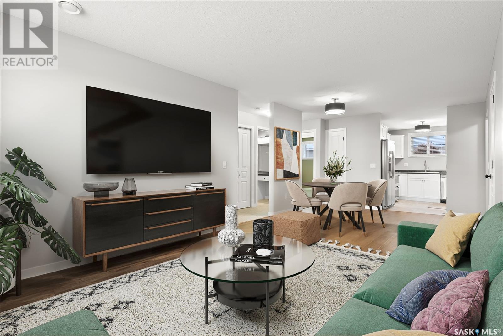 Welcome to #18-5004 James Hill Road! This lower level unit is updated, bright and just waiting for a new owner to enjoy all the conveniences of condo living. Freshly painted in a modern grey palette, this unit is clean and spacious. The open concept floor plan flows between the kitchen, dining and living room areas. The kitchen offers plenty of modern, white cabinetry, newer appliances and access to your private back patio. Durable vinyl flooring run throughout this space. There are 2 good-sized bedrooms (with brand new carpet)and a large 4-pc bathroom with lots of counter space. This unit comes with 2 electrified parking stalls, as well as plenty of street parking out front. Close to bus routes, walking paths and all the amenities Harbour Landing has to offer. With quick possession available, 18-5004 James Hill Road is perfect for a student, retiree or anyone looking to downsize without sacrificing quality or style. Condo fees include: lawn care, snow removal, exterior building maintenance, garbage removal, common insurance and reserve fund. (id:22211)