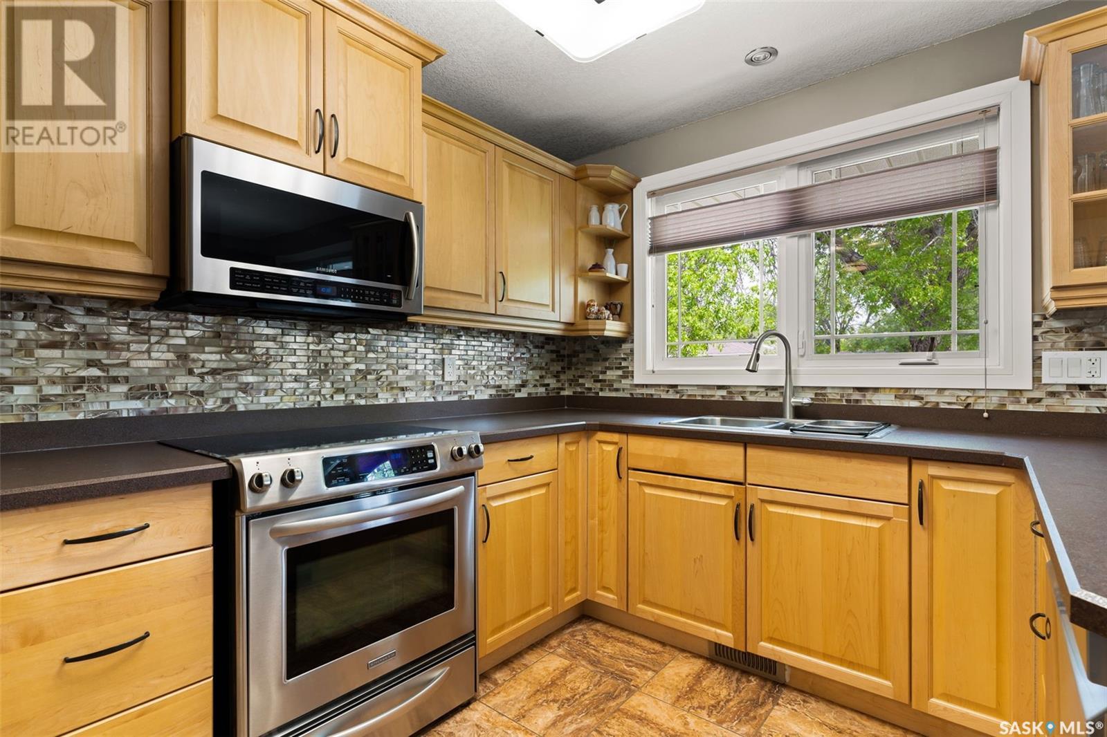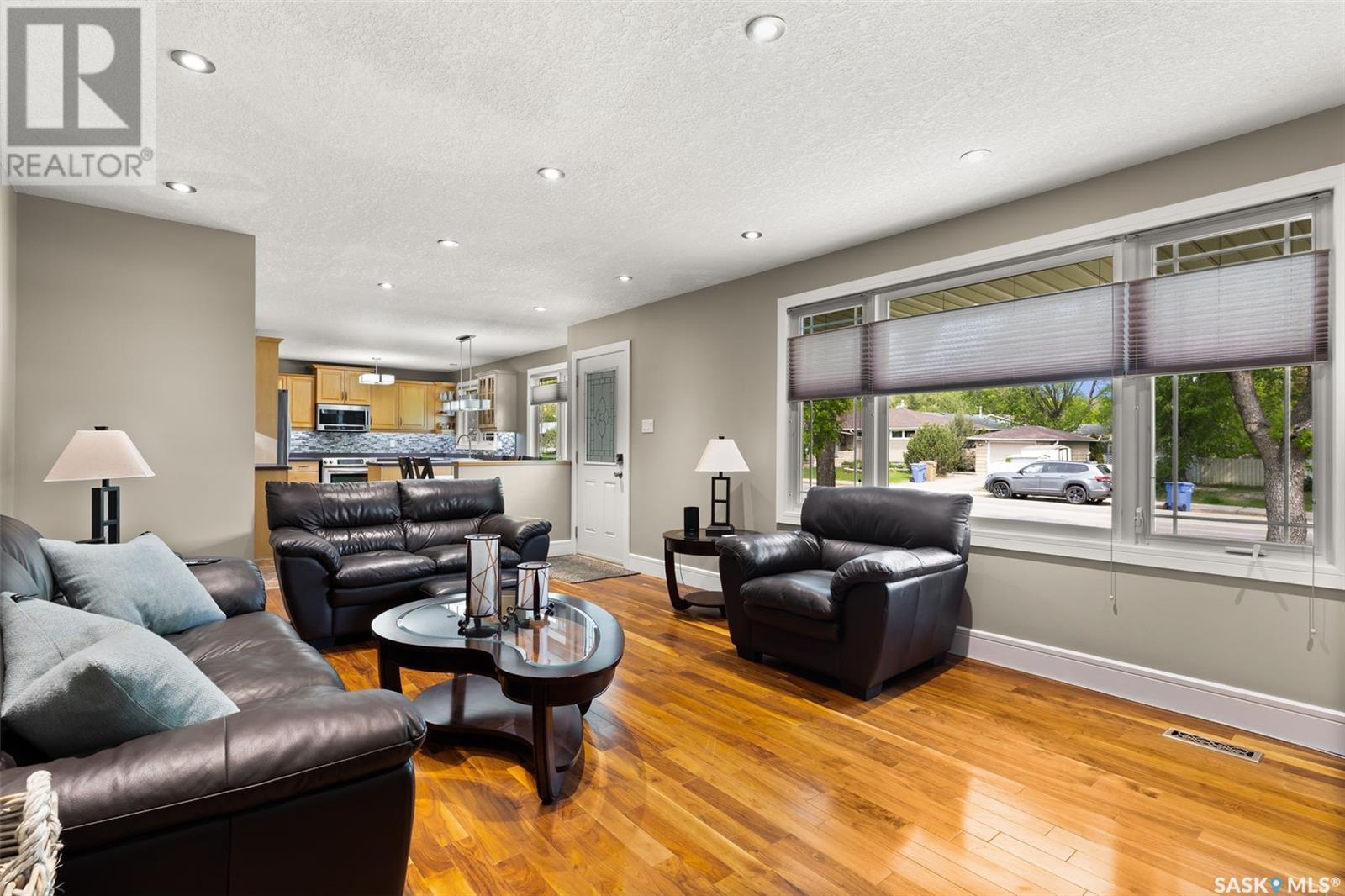 Welcome to 5327 7th Avenue North. Wow! This beautiful move in ready 5 bedroom, 3 bath 1156 square ft. bungalow has seen extensive renovations and upgrades over the years . As you walk in you will notice the spacious open concept living/dining room and kitchen space. The kitchen features an abundance of cabinetry, tile backsplash, under cabinet lighting, stainless steel appliances and a separate pantry space. Just off the kitchen is the dining space with large windows that allow the sunshine to pour in. The living room is spacious with large PVC windows and an ample amount of pot lights! The primary suite is a generous size and features a closet with built in organizer/drawers and a 2 piece ensuite bathroom. There is a good size 4 piece bathroom on the main floor and 2 additional bedrooms with brand new carpets that complete the main living space. The basement was completely gutted and renovated and features a large rec room with gorgeous custom wet bar with quartz countertops. The basement also features 2 large bedrooms with oversized windows (5ft by 2ft) , a beautiful 3 piece bathroom with custom tile shower and a separate mechanical room complete the basement. Outside you will find a spacious yard with oversized double detached garage! Additional value added upgrades include: PVC windows throughout, Spray foam insulation in basement, new AC(2021), New washer and dryer (2018), New bar fridge (2022) , Sump pump addition, Brand new panel with 200A service. new underground sprinklers in 2022, new shingles on garage (2021) , oversized double garage and SO Much more!! This home is close to all north end amenities, a few blocks from the Normanview mall and great trails, schools and parks and would be perfect for any size family . (id:22211)