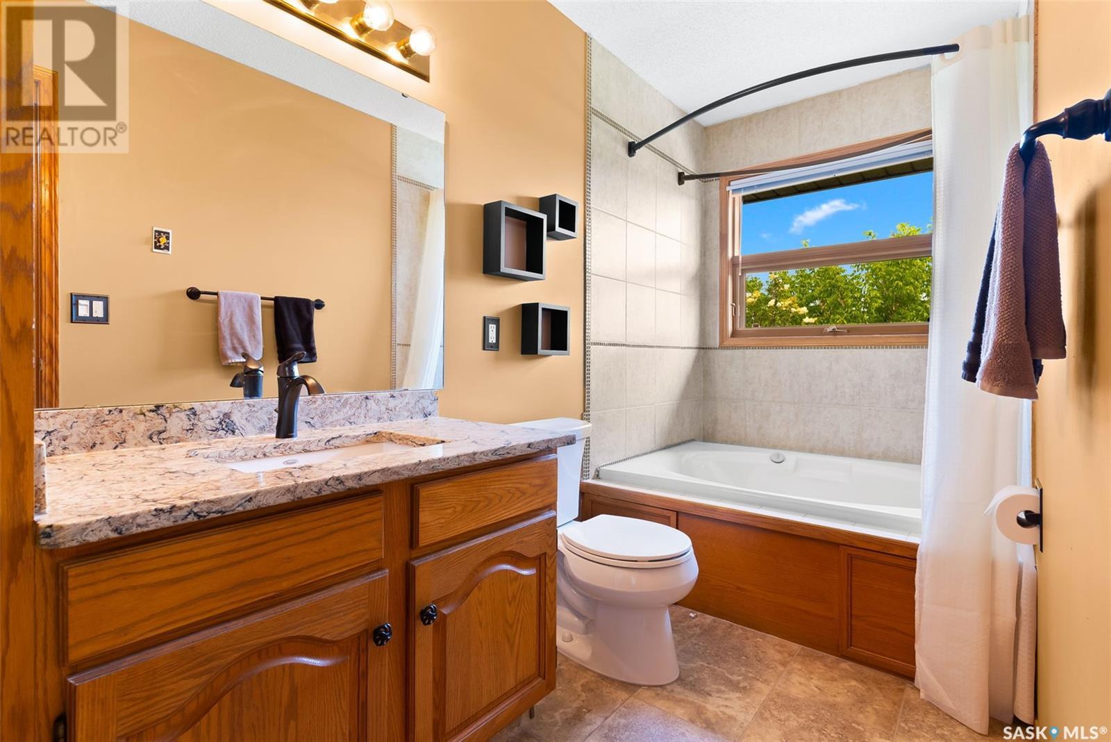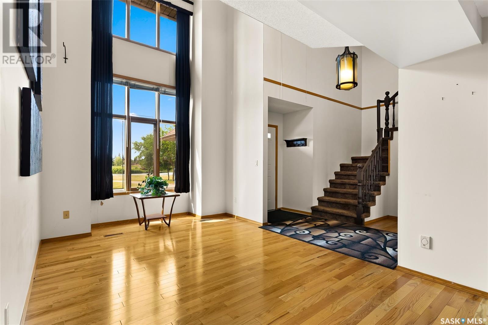If you've been waiting for a home with a gorgeous view in Regina's north end, look no further than 6127 Brunskill Place in Mount Royal. This 1978sq.ft. two-story offers a stunning view of A.E. Wilson Park and all the active living perks that come with living near a fantastic prairie scenic area of the city. Immediately be impressed when you walk into this grand sitting room with 17ft ceilings with hardwood floors, and large picturesque windows that filter in gorgeous light and take in those sights of the creek. Black appliances, a deep cabinet pantry, a gas stove-top, and ample counter space are all fantastic features of this beautiful kitchen. Directly adjacent is the living room with a gas fireplace, and tucked away is the main floor laundry and the double attached garage access. The primary bedroom upstairs offers a dedicated 3pc. ensuite with gleaming counters, a walk-in closet, and a view overlooking the park. Three additional bedrooms, a 4pc. bath, and a great spot in the open hallway for a homework station complete the top floor. Downstairs, you'll find a comfy rec. room complete with two more additional bedrooms and a 3pc. bath with a beautifully tiled shower. It also features a wash basin, perfect for soaking your handwash-only garments or as a small dog bath. The backyard offers a deck with a private lower patio and firepit area with a gate at the back fence for accessibility (swing and shed included). Close to north-end amenities as well as Walker Elementary. Extras: underground sprinklers, r/o, two furnaces, storage in the double car garage with electric heater, and a/c. A.E. Wilson Park is one of Regina's hidden gems. With over 2km of bike paths, the family can explore Boreal Island, play at the splash park at Rick Hansen Optimist Playground, or watch the pelicans and picnic at dusk. Connect with the listing agent to book your private viewing today. (id:22211)
