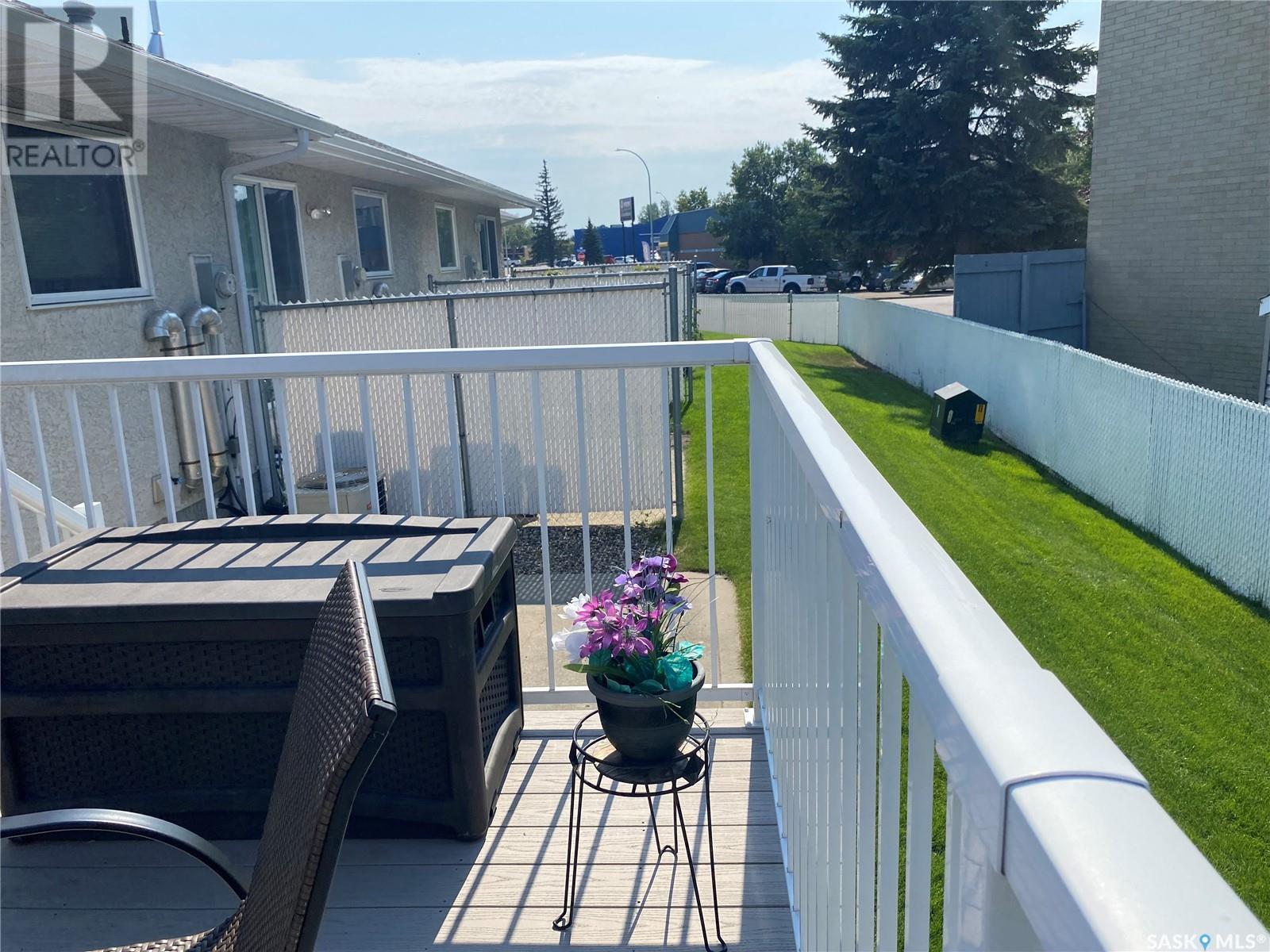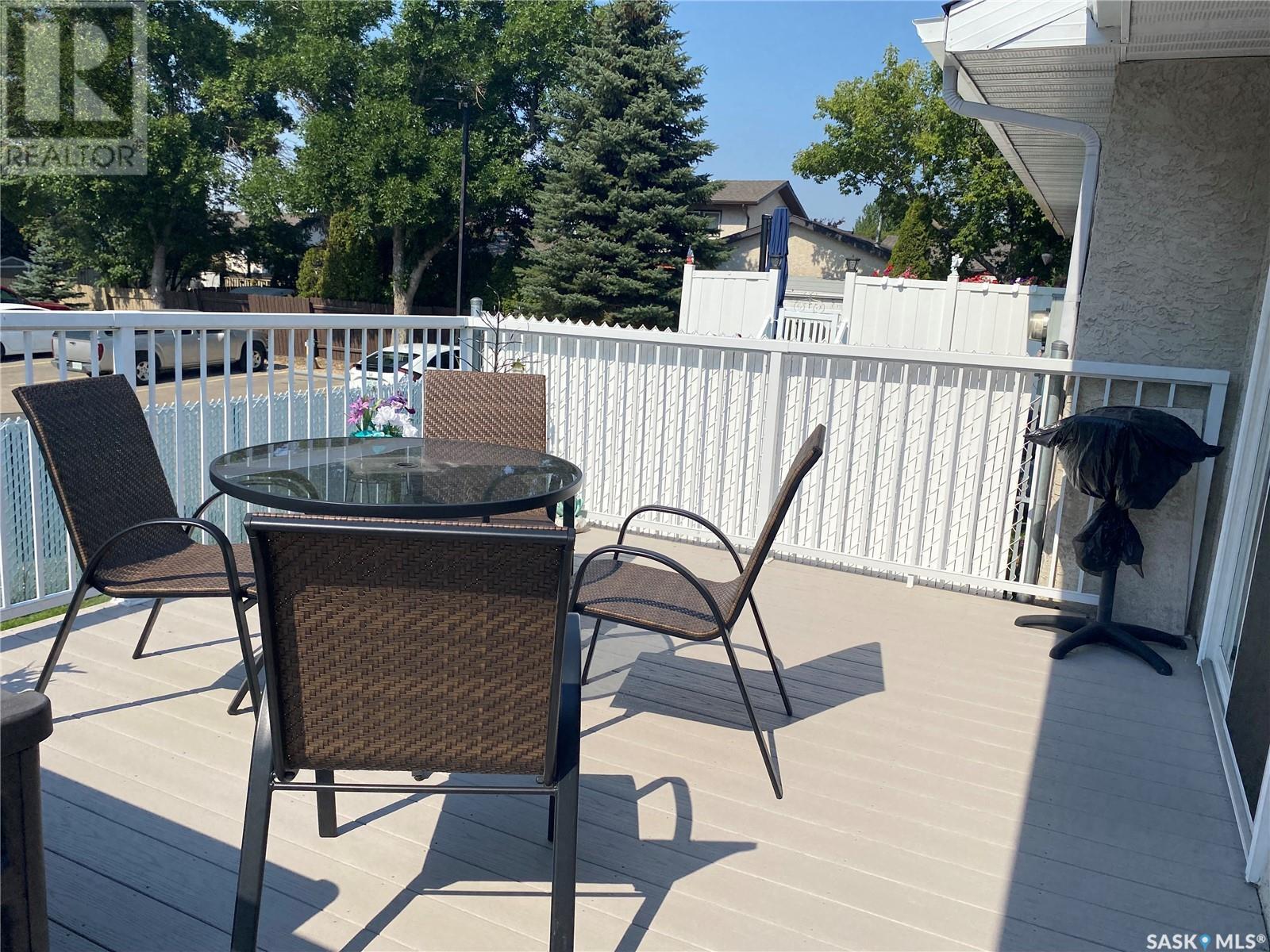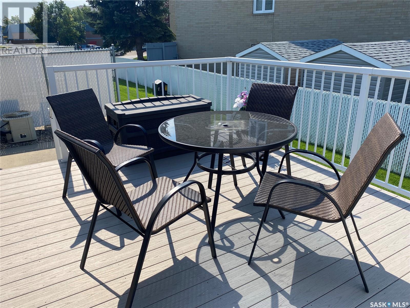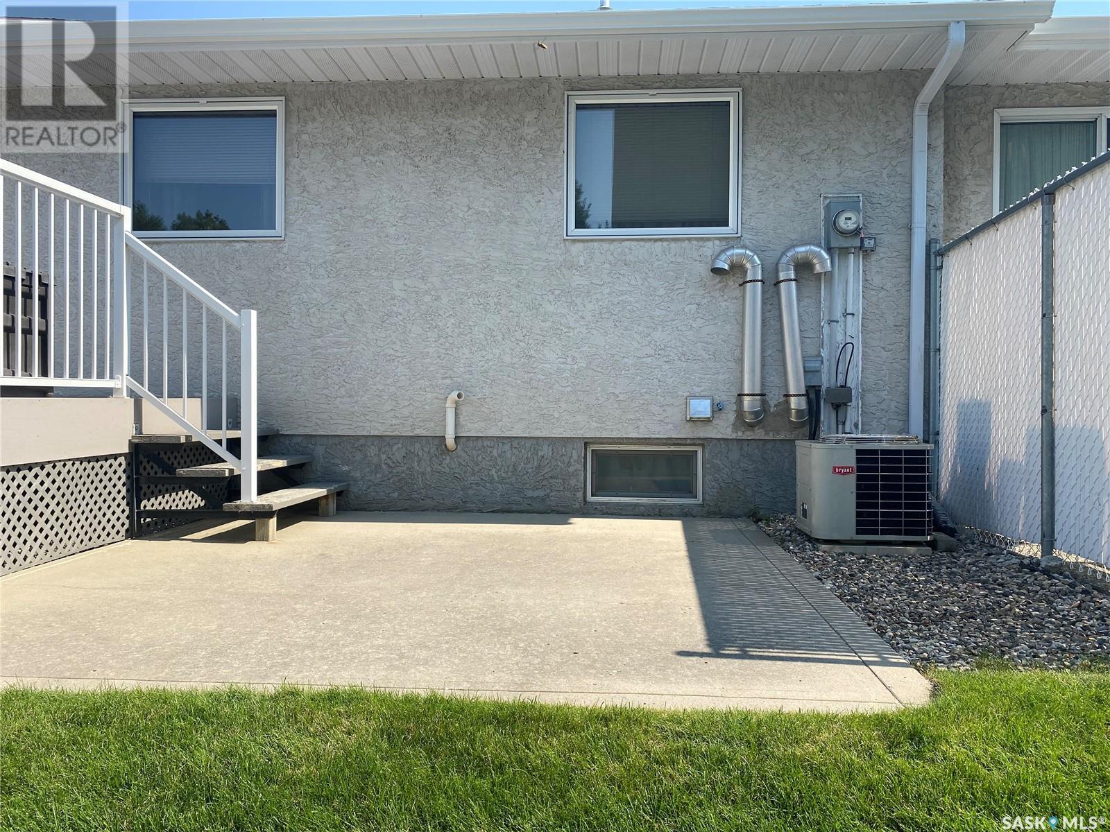 This is one of few bungalow style condos in north Regina. This complex is conveniently located within walking distance to the many services in the area. A bonus with this unit is the spacious, attached, direct-entry garage. This unit offers a large bright living room immediately upon entering through the front entry way. Just steps away is the large, open kitchen/dining room area. The dining area has newer patio doors opening onto a beautiful, no maintenance deck, which with the large patio, adds further entertaining space for family and friends. The primary bedroom is a very good size and is across the hall from the full 4 piece bathroom. There is also a convenient main floor laundry steps from the bedroom. Years ago the second bedroom was converted to a TV room right off the kitchen/dining room. This could be converted back to be the second bedroom. The basement features a very large family room great for entertaining. There is a nice large room with a window and two closets has previously been used as a bedroom. There is a second den which could make a great home office, especially with the large storage area attached to it. There is a very nicely finished 3 piece bathroom as well. Completing the basement is the large utility room which offers plenty of storage as well. Extra value comes with Central A/C, Central Vac with kick-sweep, 6 appliances (as is), shingles replaced 2022. Please call Salesperson for more information or to book a showing. (id:22211)