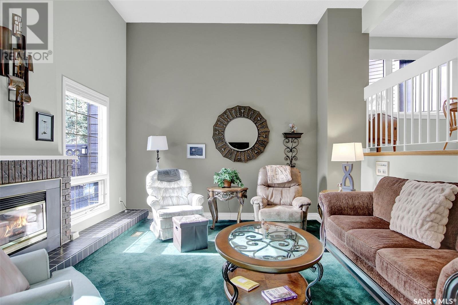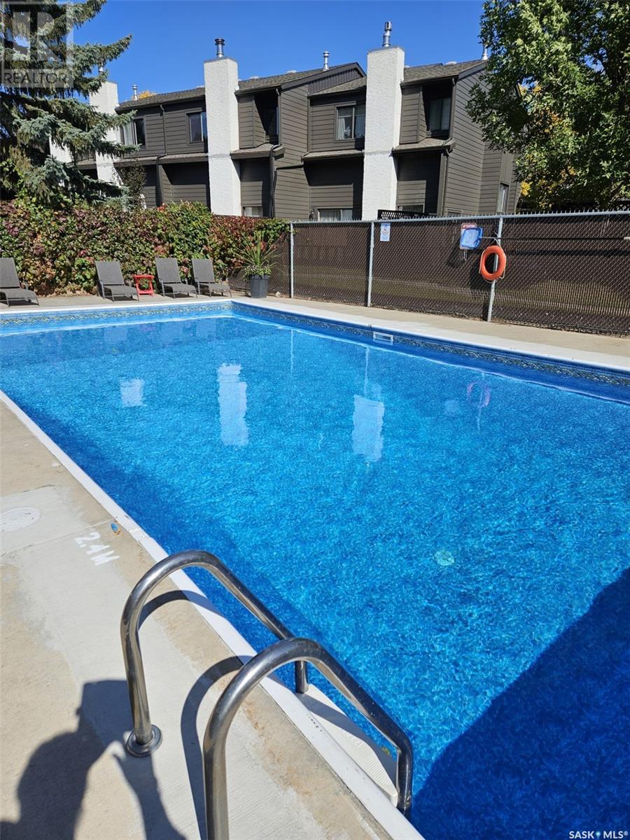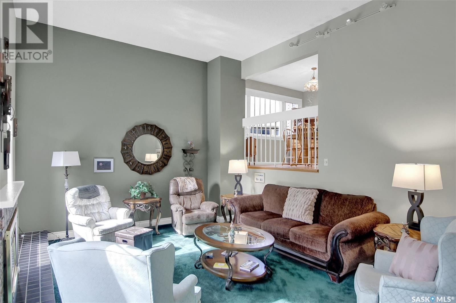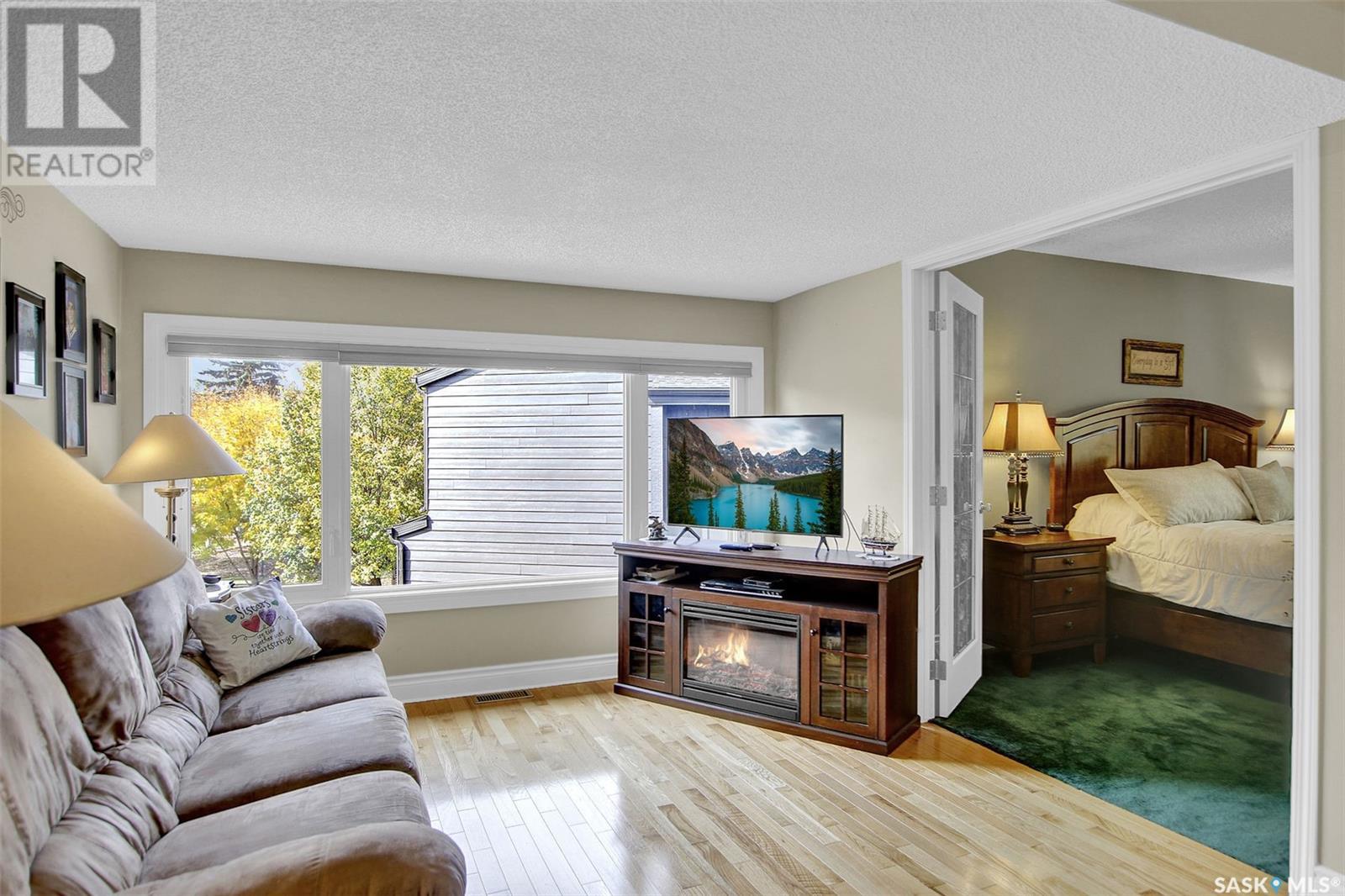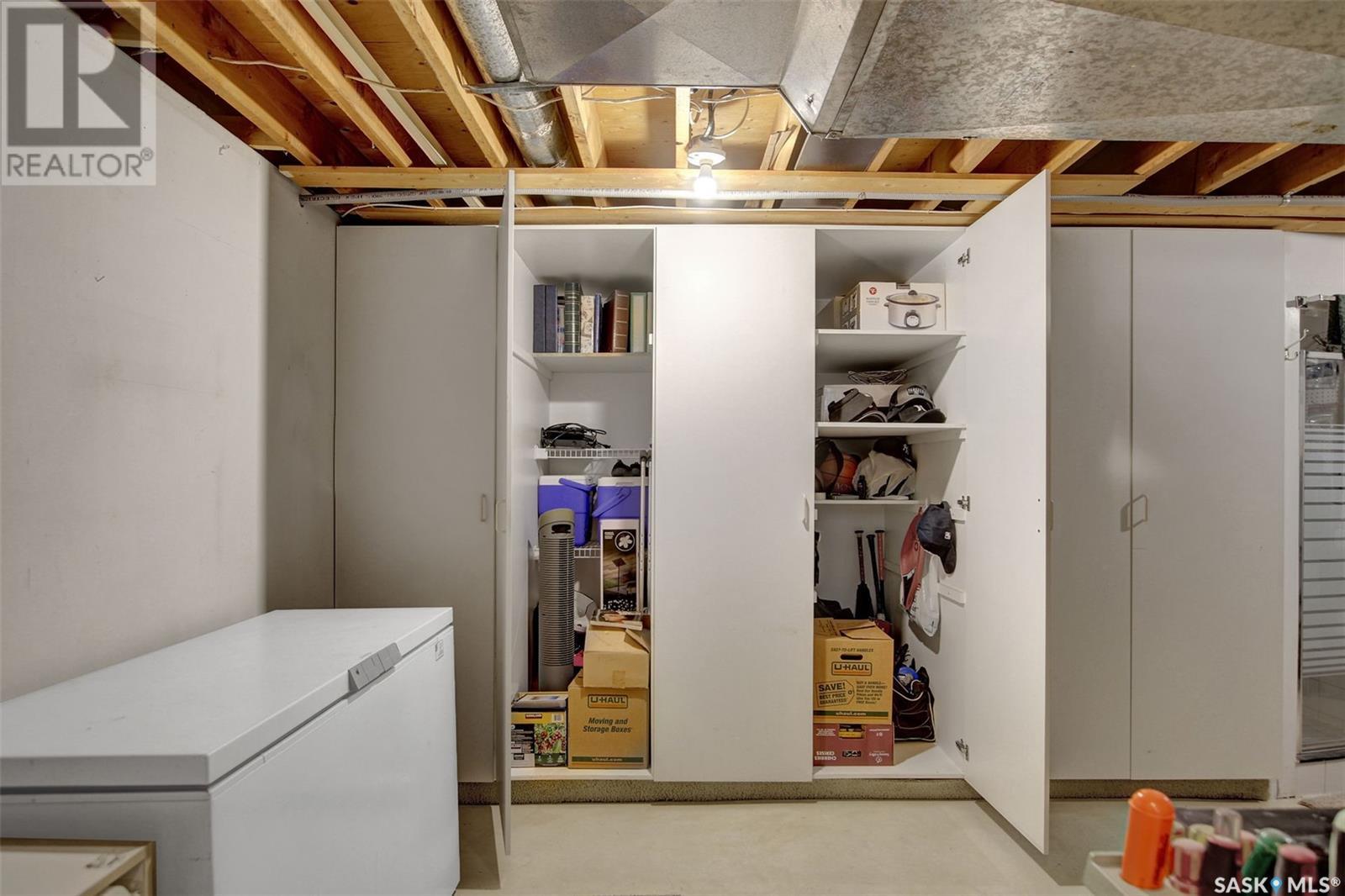 Click on the reel at the top to watch the virtual tour. Don’t miss the opportunity to own this end unit condo offering great natural light located in desirable Quincy Greene. Front entry has heated floor & direct entry to garage. Main floor living room with sunny south exposure, 12-foot ceiling, gas fireplace & garden door to a deck. The second level offers large dining room with hardwood floor & large SW facing window. Kitchen overlooks the private front road & offers an abundance of cabinets & counter space at both ends of the room. Large pantry or linen closet & a two-piece bathroom complete this level. The third level features a bonus room with a window for natural light, 2 secondary bedrooms, French doors to primary bedroom which can accommodate a king size bed plus room to spare with access to the walk-in closet (cabinet with deep drawers), shower stall plus washer & dryer & access to the four-piece main bathroom. (jetted tub not working). Basement is insulated & drywalled with great storage including six deep storage lockers and a second shower. Most windows replaced with PVC. Single attached garage, drywalled with a garage door opener. Interlocking brick double driveway. Private back yard with a no maintenance composite deck, permanent gazebo and natural gas hookup for a barbeque. Backing onto a well treed greenspace. Complex includes outdoor pool, tennis court, and playground. Located across from the swimming pool, lending library & visitor parking. Great Hillsdale location with close proximity to U. of R., Wascana Park, Conexus Art Centre, Sask Polytech, McKenzie Art Gallery, restaurants, shopping and all other south end amenities. NOTE: Complex is under construction with the last few buildings receiving new insulation & composite siding (id:22211)