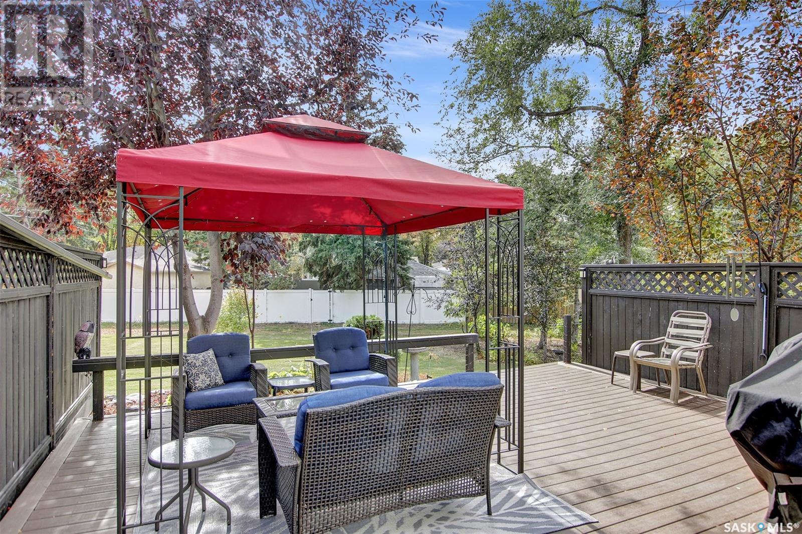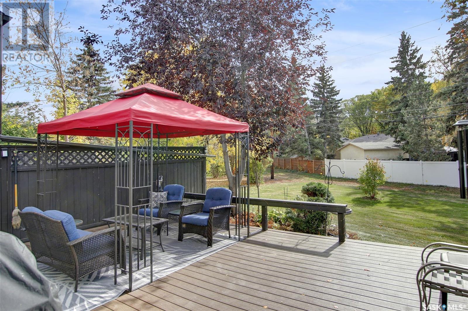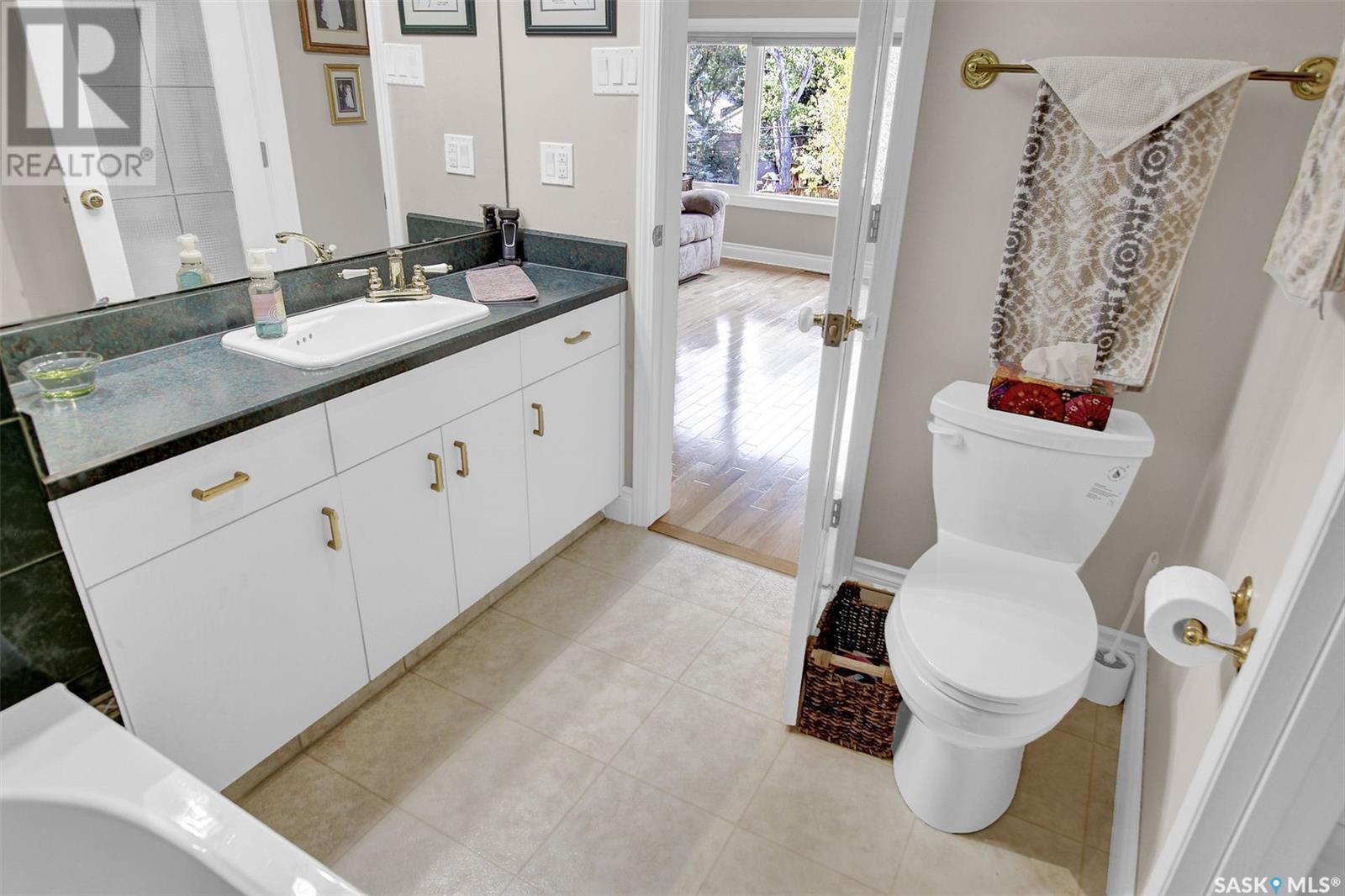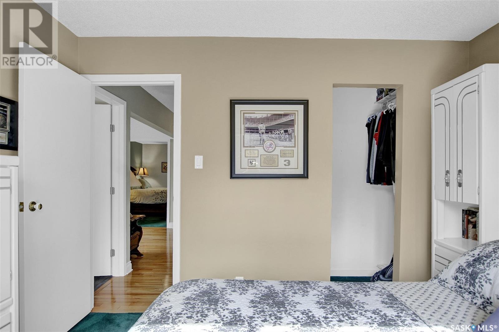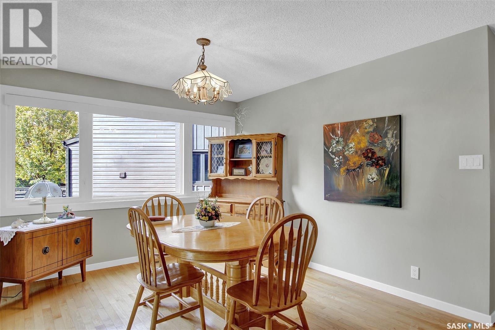 Click on the reel at the top to watch the virtual tour. Don’t miss the opportunity to own this end unit condo offering great natural light located in desirable Quincy Greene. Front entry has heated floor & direct entry to garage. Main floor living room with sunny south exposure, 12-foot ceiling, gas fireplace & garden door to a deck. The second level offers large dining room with hardwood floor & large SW facing window. Kitchen overlooks the private front road & offers an abundance of cabinets & counter space at both ends of the room. Large pantry or linen closet & a two-piece bathroom complete this level. The third level features a bonus room with a window for natural light, 2 secondary bedrooms, French doors to primary bedroom which can accommodate a king size bed plus room to spare with access to the walk-in closet (cabinet with deep drawers), shower stall plus washer & dryer & access to the four-piece main bathroom. (jetted tub not working). Basement is insulated & drywalled with great storage including six deep storage lockers and a second shower. Most windows replaced with PVC. Single attached garage, drywalled with a garage door opener. Interlocking brick double driveway. Private back yard with a no maintenance composite deck, permanent gazebo and natural gas hookup for a barbeque. Backing onto a well treed greenspace. Complex includes outdoor pool, tennis court, and playground. Located across from the swimming pool, lending library & visitor parking. Great Hillsdale location with close proximity to U. of R., Wascana Park, Conexus Art Centre, Sask Polytech, McKenzie Art Gallery, restaurants, shopping and all other south end amenities. NOTE: Complex is under construction with the last few buildings receiving new insulation & composite siding (id:22211)