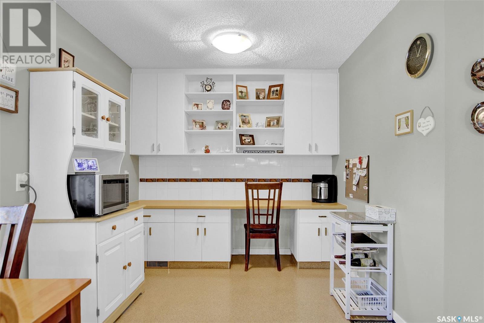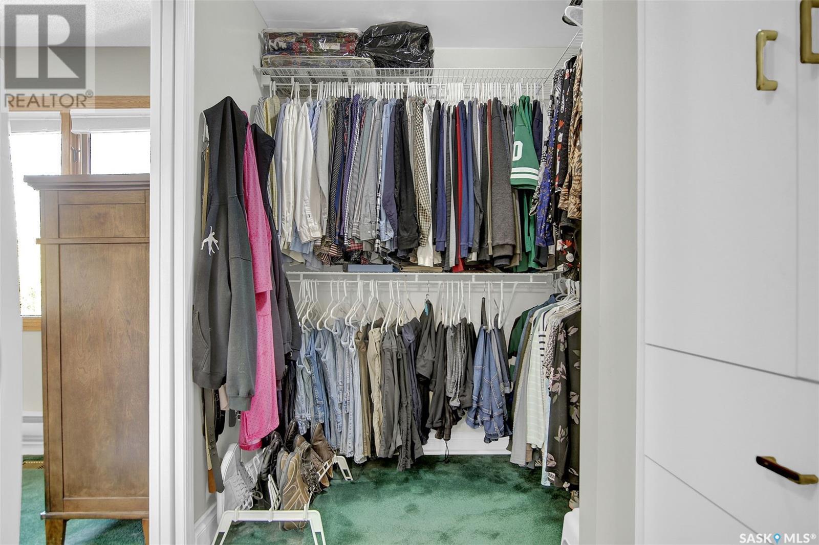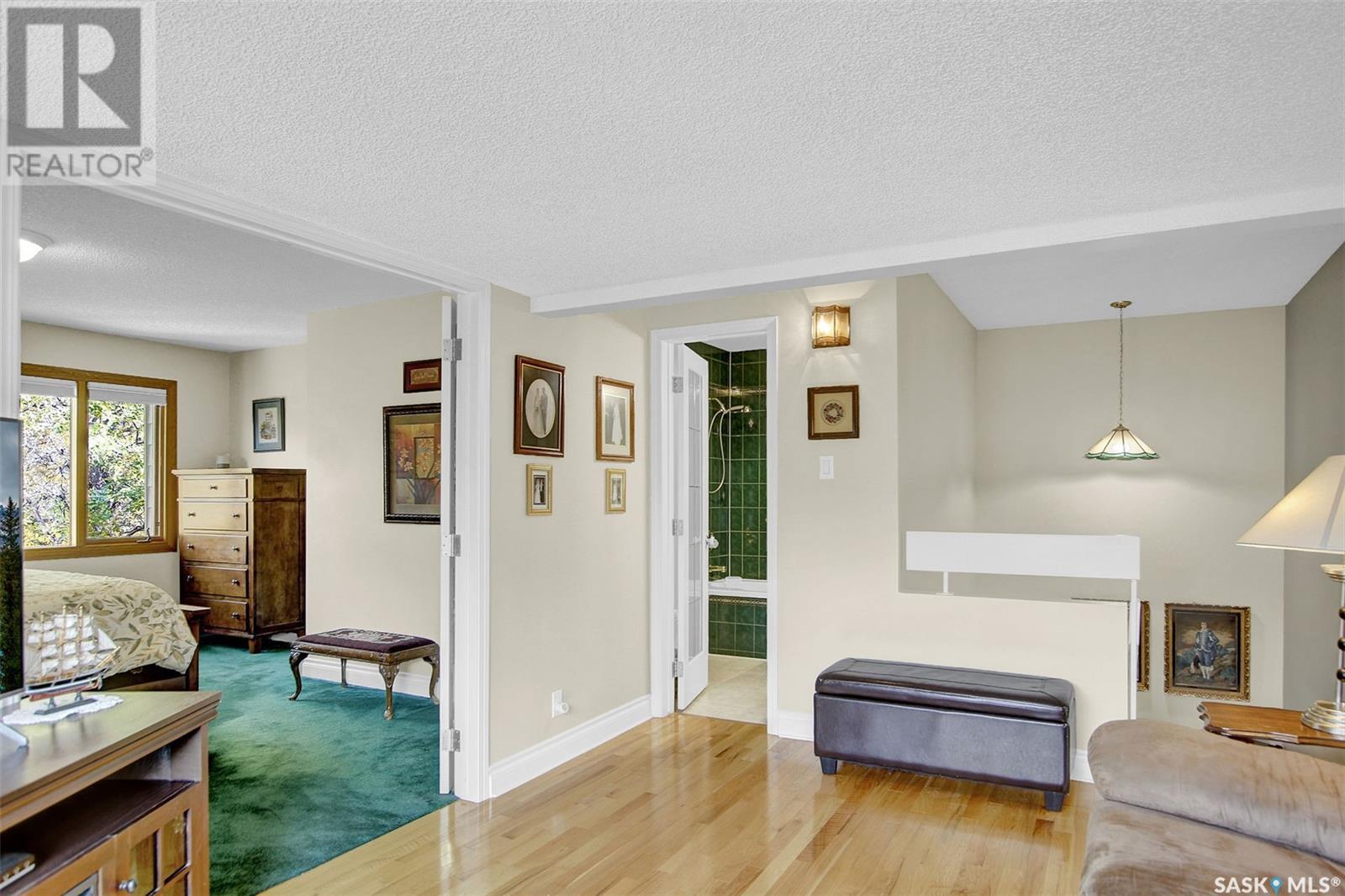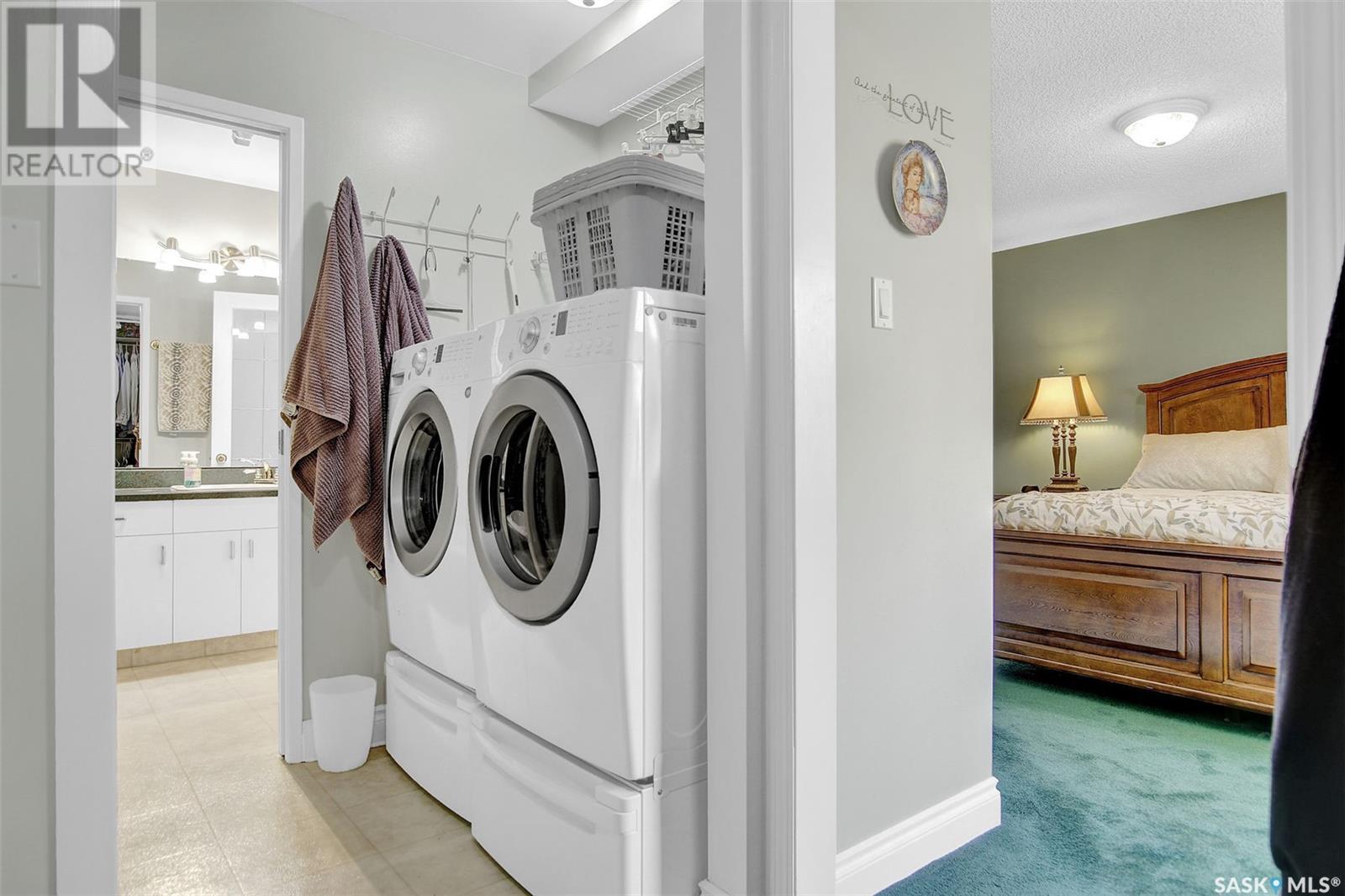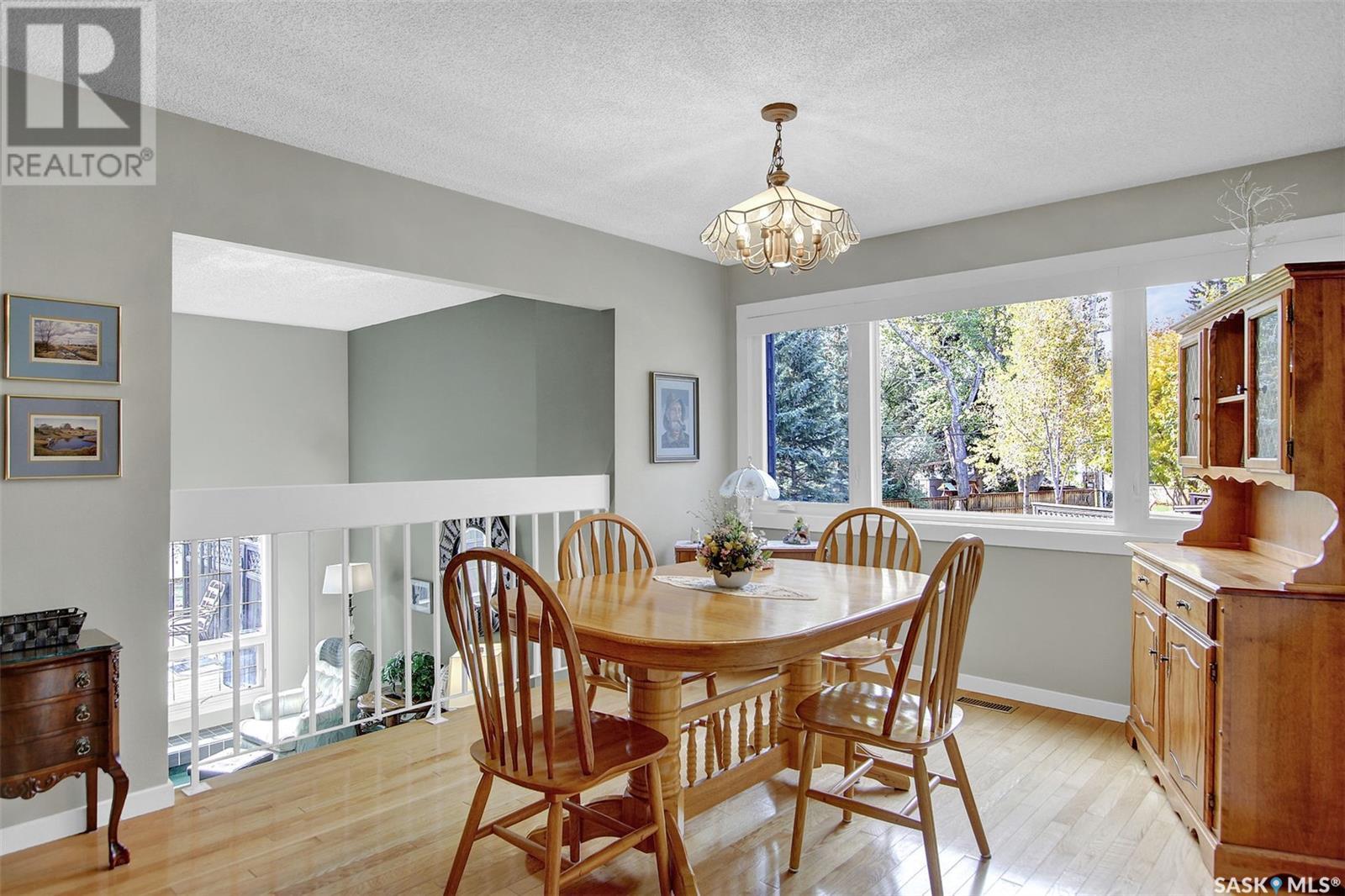 Click on the reel at the top to watch the virtual tour. Don’t miss the opportunity to own this end unit condo offering great natural light located in desirable Quincy Greene. Front entry has heated floor & direct entry to garage. Main floor living room with sunny south exposure, 12-foot ceiling, gas fireplace & garden door to a deck. The second level offers large dining room with hardwood floor & large SW facing window. Kitchen overlooks the private front road & offers an abundance of cabinets & counter space at both ends of the room. Large pantry or linen closet & a two-piece bathroom complete this level. The third level features a bonus room with a window for natural light, 2 secondary bedrooms, French doors to primary bedroom which can accommodate a king size bed plus room to spare with access to the walk-in closet (cabinet with deep drawers), shower stall plus washer & dryer & access to the four-piece main bathroom. (jetted tub not working). Basement is insulated & drywalled with great storage including six deep storage lockers and a second shower. Most windows replaced with PVC. Single attached garage, drywalled with a garage door opener. Interlocking brick double driveway. Private back yard with a no maintenance composite deck, permanent gazebo and natural gas hookup for a barbeque. Backing onto a well treed greenspace. Complex includes outdoor pool, tennis court, and playground. Located across from the swimming pool, lending library & visitor parking. Great Hillsdale location with close proximity to U. of R., Wascana Park, Conexus Art Centre, Sask Polytech, McKenzie Art Gallery, restaurants, shopping and all other south end amenities. NOTE: Complex is under construction with the last few buildings receiving new insulation & composite siding (id:22211)