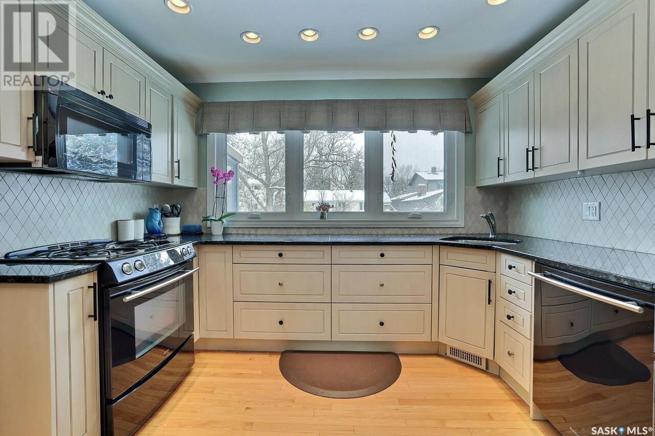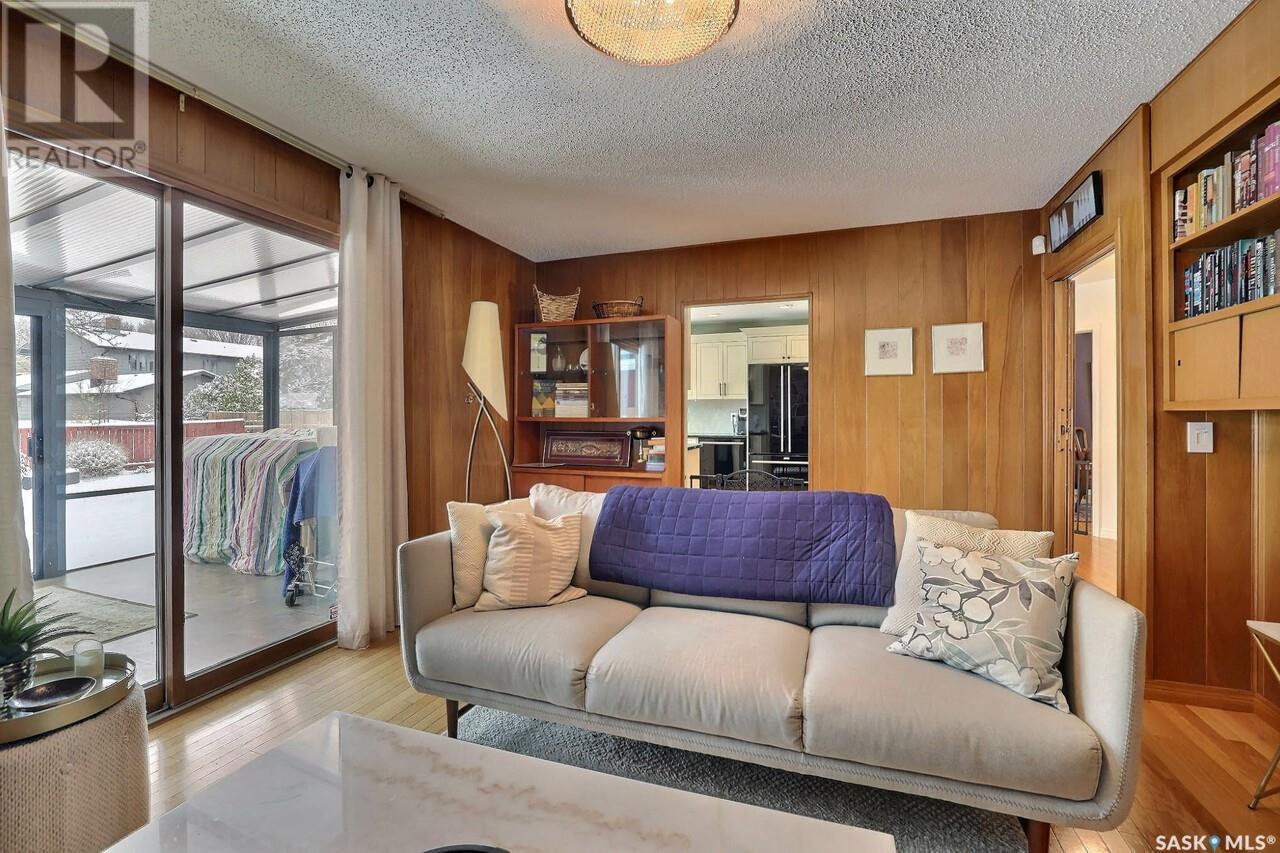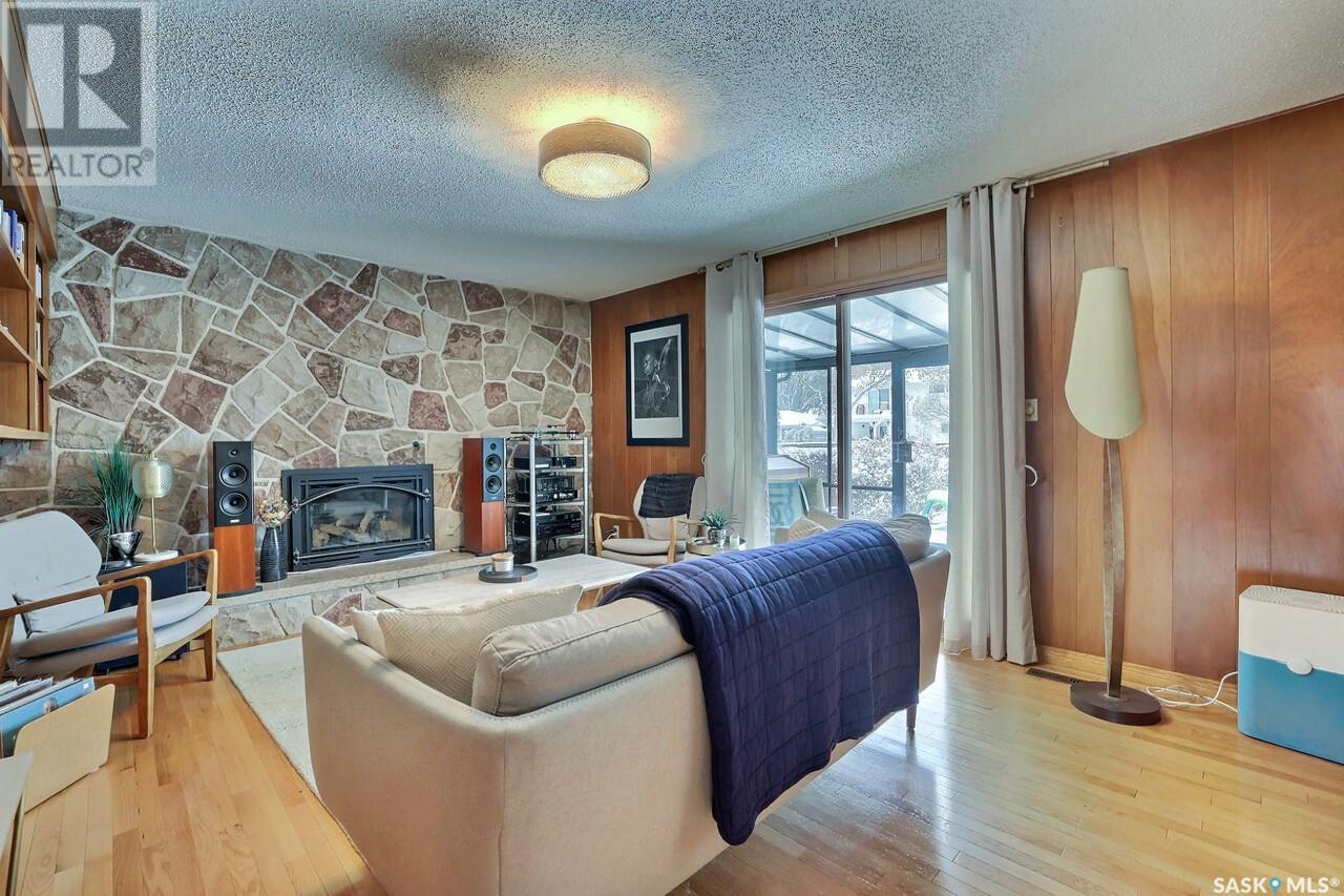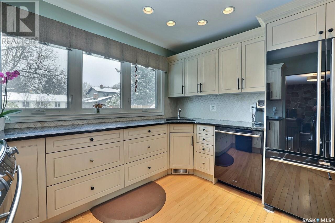 Incredible executive 4 bedroom, 4 bath with attached garage custom built home by premiere builder, Neils Jenson. This home is located on one of the most prestigious crescents in Hillsdale on a massive Texas sized lot. Great street appeal with stone front and private tiled front porch and sitting area. Stained glass front door, gleaming top quality hardwood on most of main, large comfortable living room with southern exposure, cozy family room with gas fireplace, stone mantel, built-in book shelves and cabinet. Patio doors leading to impressive glassed in sunroom leading to super-sized, mature, private backyard. Updated kitchen with quartz countertops, under mount sink and huge window overlooking yard, natural gas range, fridge, washer and microwave. Elegant formal dining room, rear entrance from back yard to handy mud area and laundry including washer and dryer and a 2 piece powder room completes the main level. New broadloom (Oct. 2023) up the stairs to 2nd level and in 3 of the 4 bedrooms on this level. One bedroom has hardwood floor. The primary bedroom has upgraded ensuite. There also is an upgraded 4 piece main bath and all 3 extra bedrooms are huge in size. Lower level has recreation room, games room, newer 3 piece bath, 2 storage areas and utility room. Note: there are several areas where you can observe exposed wall foundation which looks to be very sound. TV and TV mounts not included. (id:22211)