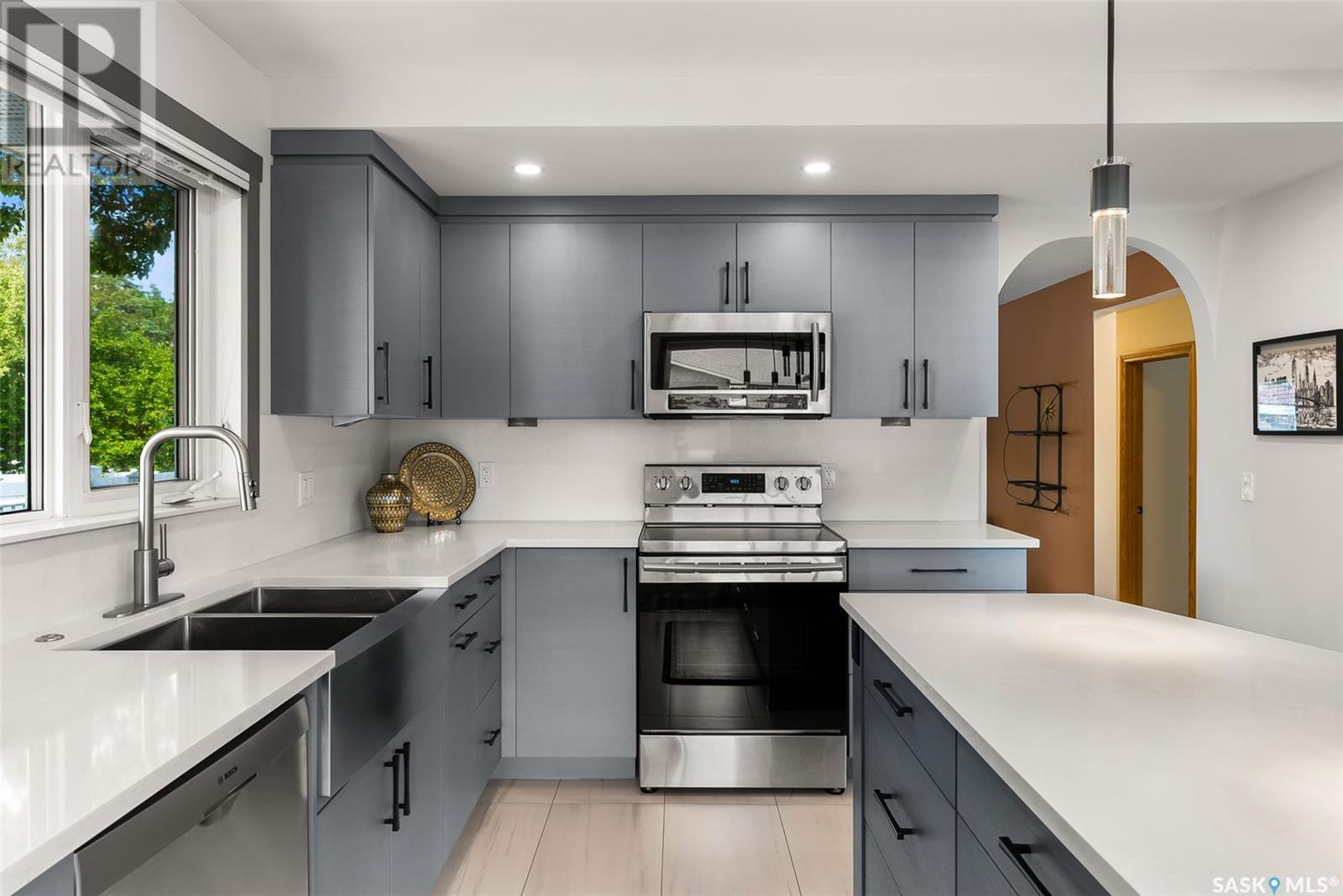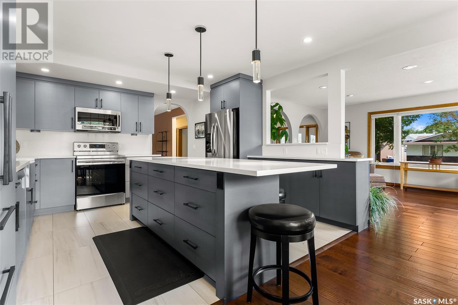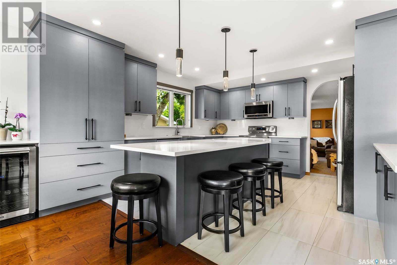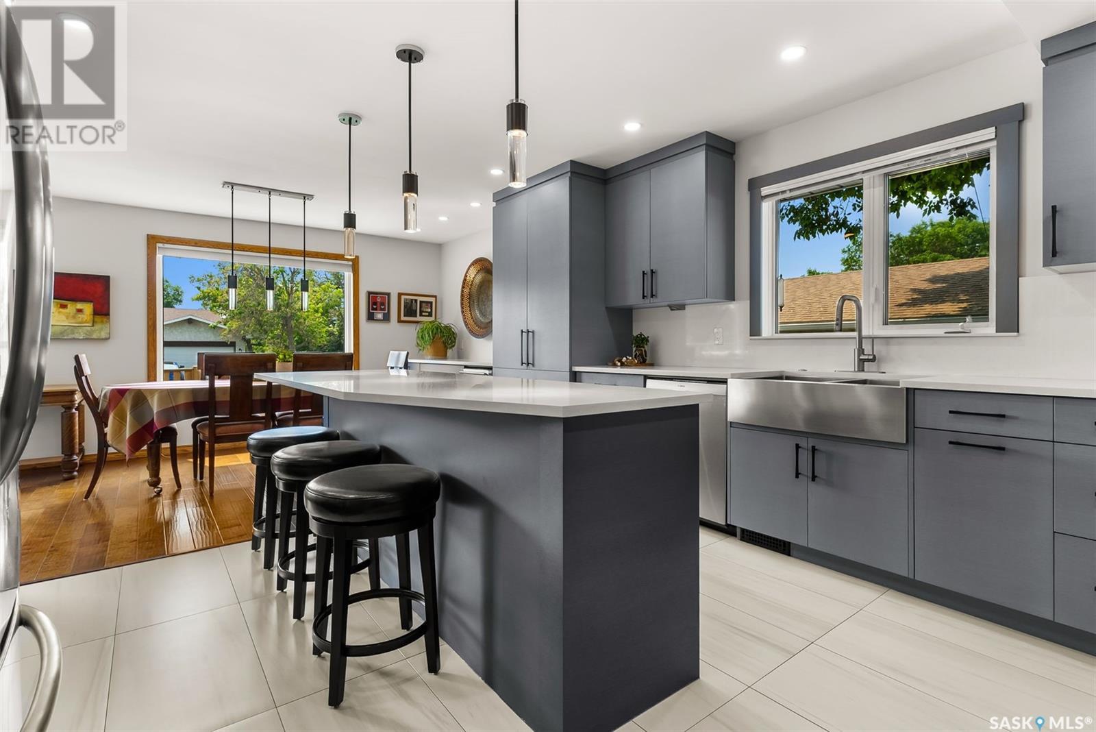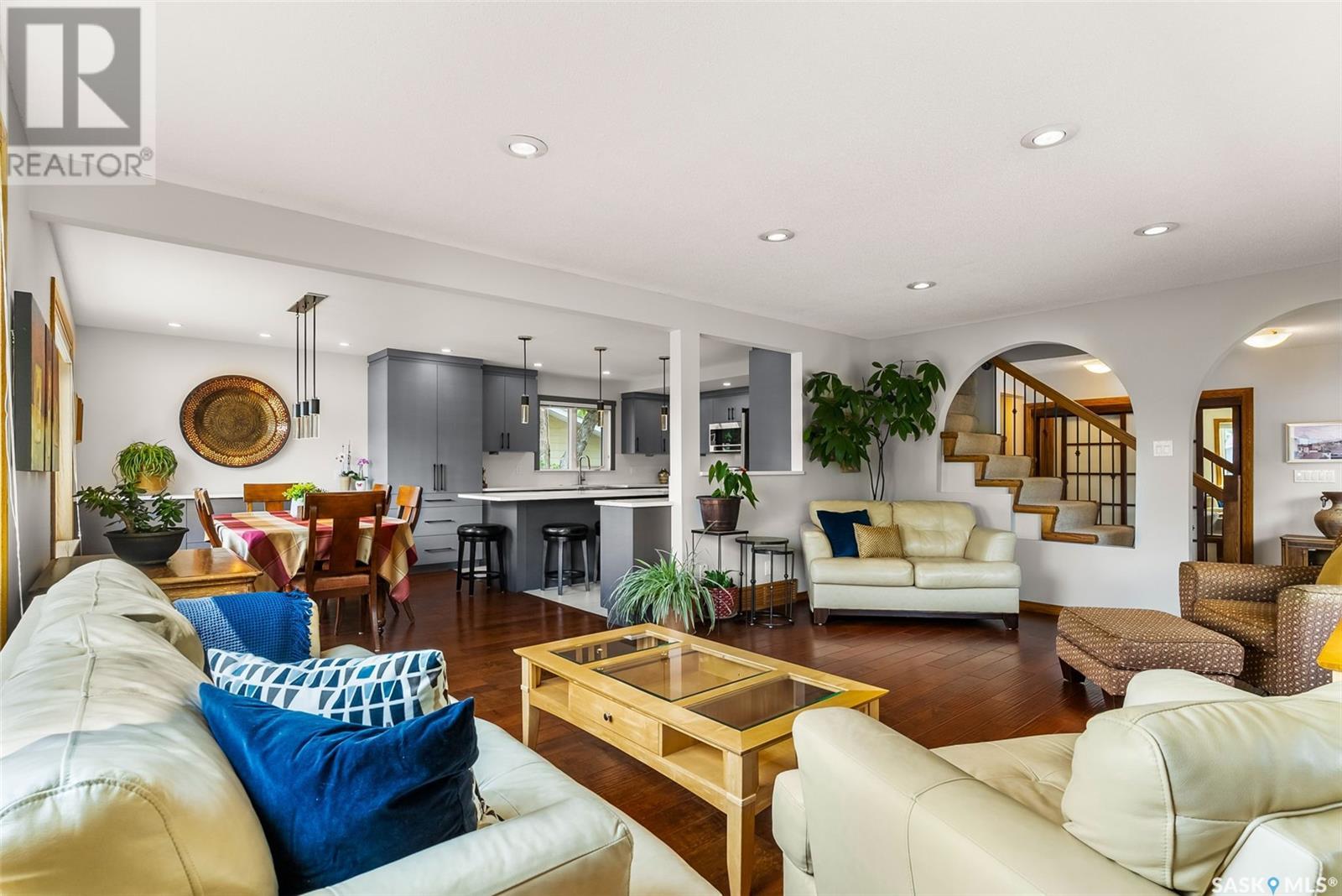Welcome to 99 Selkirk Crescent in the coveted Albert Park neighbourhood! This two-storey split home boasts a generous 2084 square feet of living space, offering ample room for you and your family to grow in. With 4 bedrooms on the 2nd floor, a main floor office and 5th bedroom in the basement there is space for everyone! So many updates have been done in this house over the past 10 yrs which mix the warmth of the updated solid wood doors and engineered hardwood with the modern kitchen renovation with soft close drawers done by Cougar Cabinets in 2017 ($65,000 reno). The main floor is the heart of the home & perfect for entertaining with the open concept kitchen, dining room & living room plus an additional family room for movie watching by the gas fireplace (installed in 2014). To finish off the main floor is an office and laundry/powder room that was renovated in 2016. The basement, developed in 2021, adds an additional dimension to this already impressive home. Offering the 5th bedroom and 3 piece bathroom, it provides flexibility and privacy for guests or providing teenagers their own space! One of the added features of this home is its ideal location across from Plainsview Park giving the added benefit of seeing green space from your dining room. The yard is a great use of space with three different levels for entertaining and lots of room for a play structure or trampoline for the kids or firepit area to enjoy as a family with underground sprinklers throughout on timers. The double attached garage has radiant heat with a thermostat and is unique as has an additional 21’6” x 11’ workshop area behind the 20’4” x 21’4” parking area. There is an additional parking pad beside the garage that will accommodate a 31 ft camper. Also included: wine fridge, fridge and freezer in basement, floating shelves in basement bedroom and bathroom. 220 Volt plug (owner has never used it), Nest door bell and thermostat, and Reverse Osmosis water system. (id:22211)