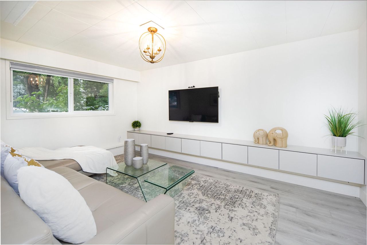 Fully renovated 4 bedrooms and 2 full bathrooms house in the nice Shellmont Neighbourhood. Two large, sunny western deck off kitchen & master bedroom. Renovations including new roof, floor, doors, closet organizers and doors, fireplace, lighting, blinds, furnace, central AC & vacuum, fence, gate, gazebo, gutters & drains. Separate entry one bedroom suite below as a great mortgage helper. Good location! Just minutes away from Ironwood Shopping Centre, bus station and highways. Don't miss this investment opportunity to own and rebuild your dream home.