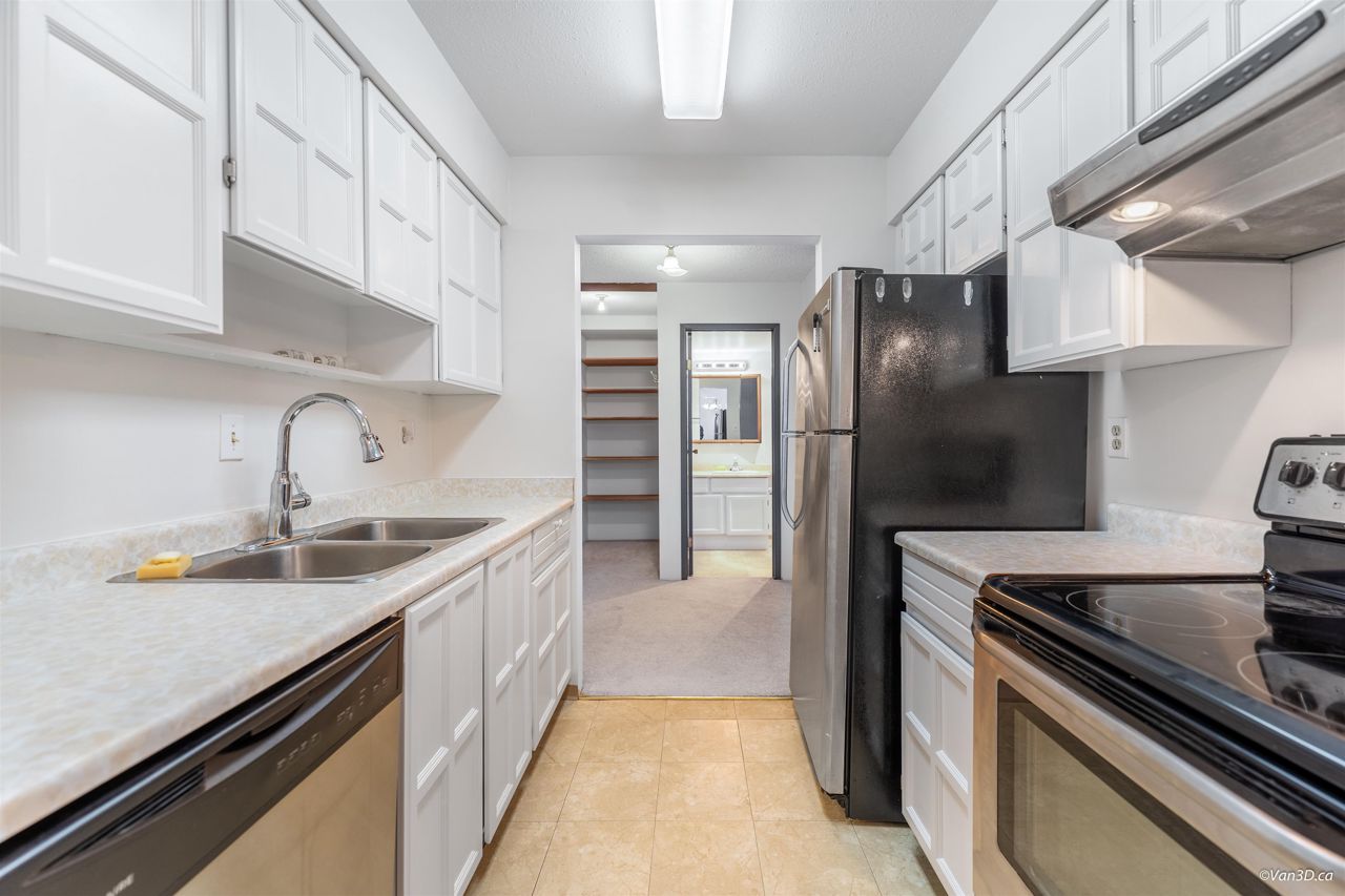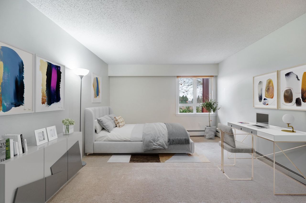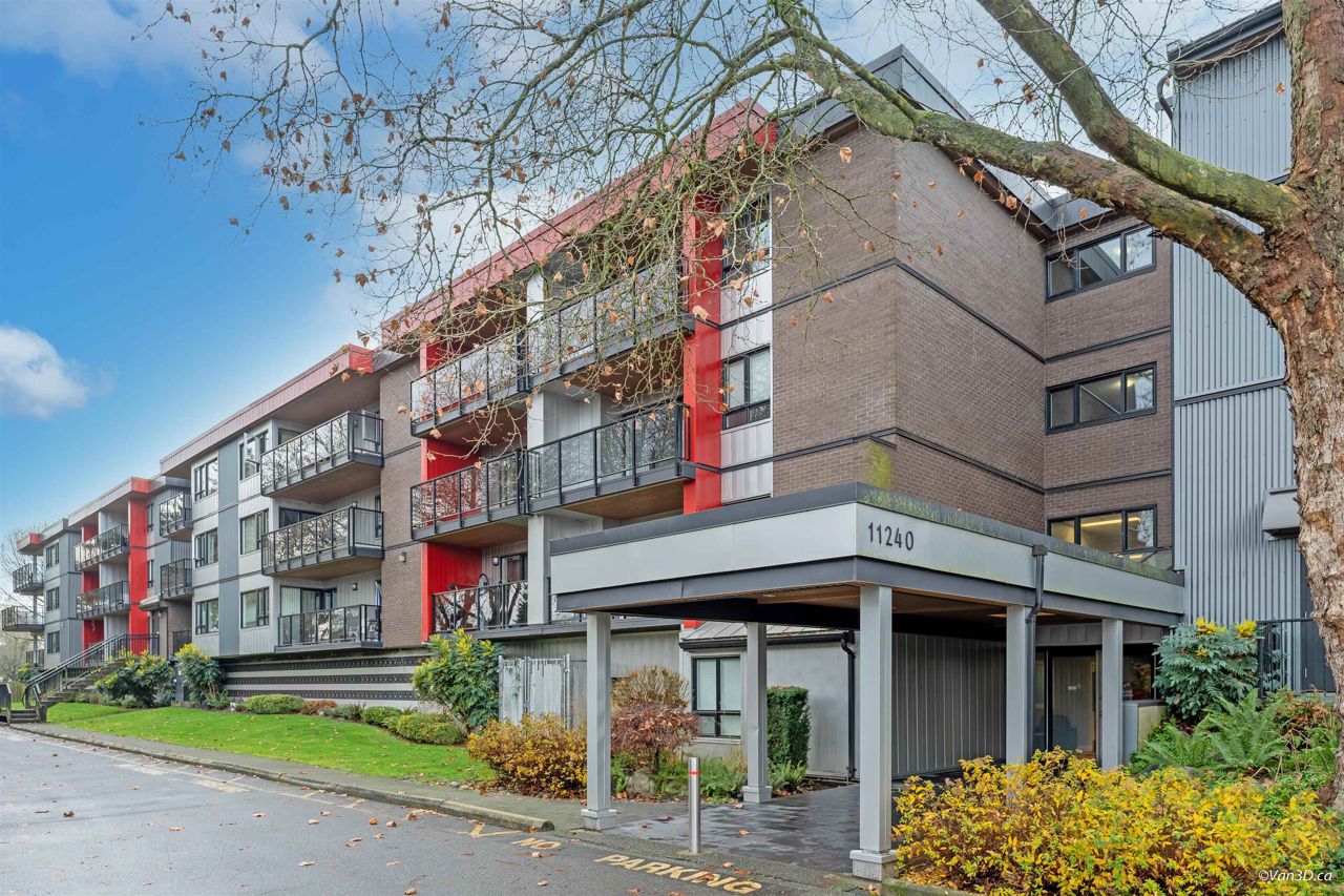 Rarely available Daniels Manor! Unique location in the middle of a safe residential neighborhood. Spacious One bedroom + Large In-suite storage. Serene suburban setting beside Albert Airey Park and playground. On the 100sqft balcony, enjoying both sunrise and sunset with a beautiful city view!! Complex upgrades include windows, roof, patio doors, balconies and building envelope. The elevator has been modernized and the lobby has been upgraded. Maintenance fee includes Heat and Hot Water. Steps to bus transportation, restaurants, shopping and minutes from Oak & Knight street Bridges! Great investment opportunity or a suitable choice for first time home buyers. School Catchment: Mitchell Elementary/H. J. Cambie Secondary. *Some photos virtually staged*