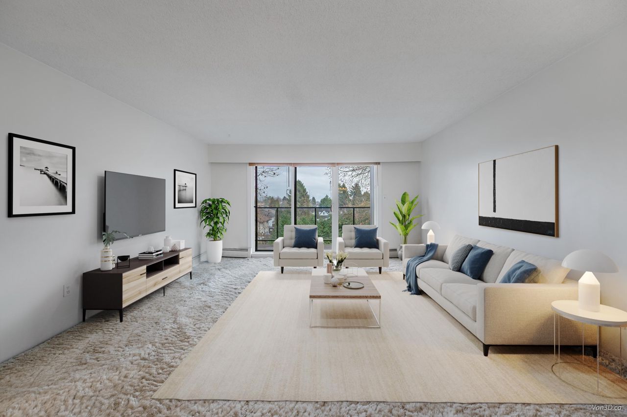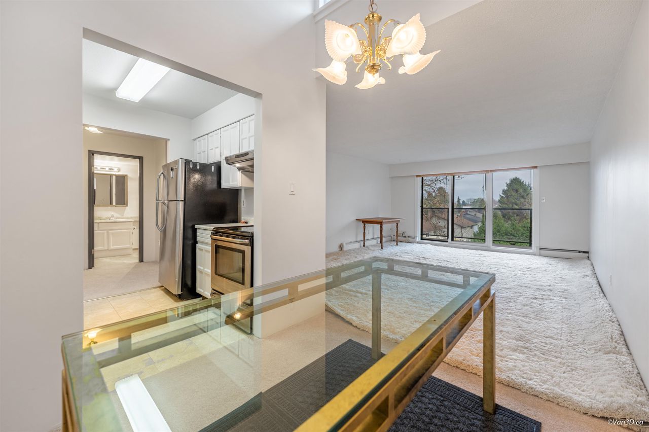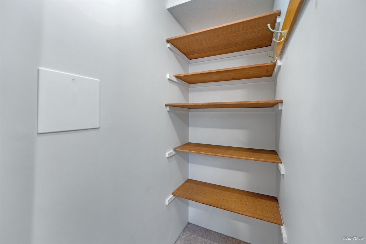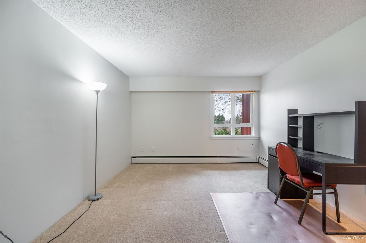 Rarely available Daniels Manor! Unique location in the middle of a safe residential neighborhood. Spacious One bedroom + Large In-suite storage. Serene suburban setting beside Albert Airey Park and playground. On the 100sqft balcony, enjoying both sunrise and sunset with a beautiful city view!! Complex upgrades include windows, roof, patio doors, balconies and building envelope. The elevator has been modernized and the lobby has been upgraded. Maintenance fee includes Heat and Hot Water. Steps to bus transportation, restaurants, shopping and minutes from Oak & Knight street Bridges! Great investment opportunity or a suitable choice for first time home buyers. School Catchment: Mitchell Elementary/H. J. Cambie Secondary. *Some photos virtually staged*