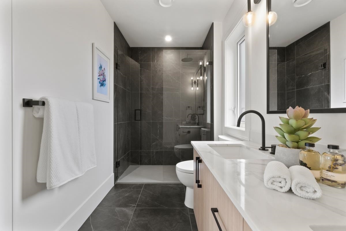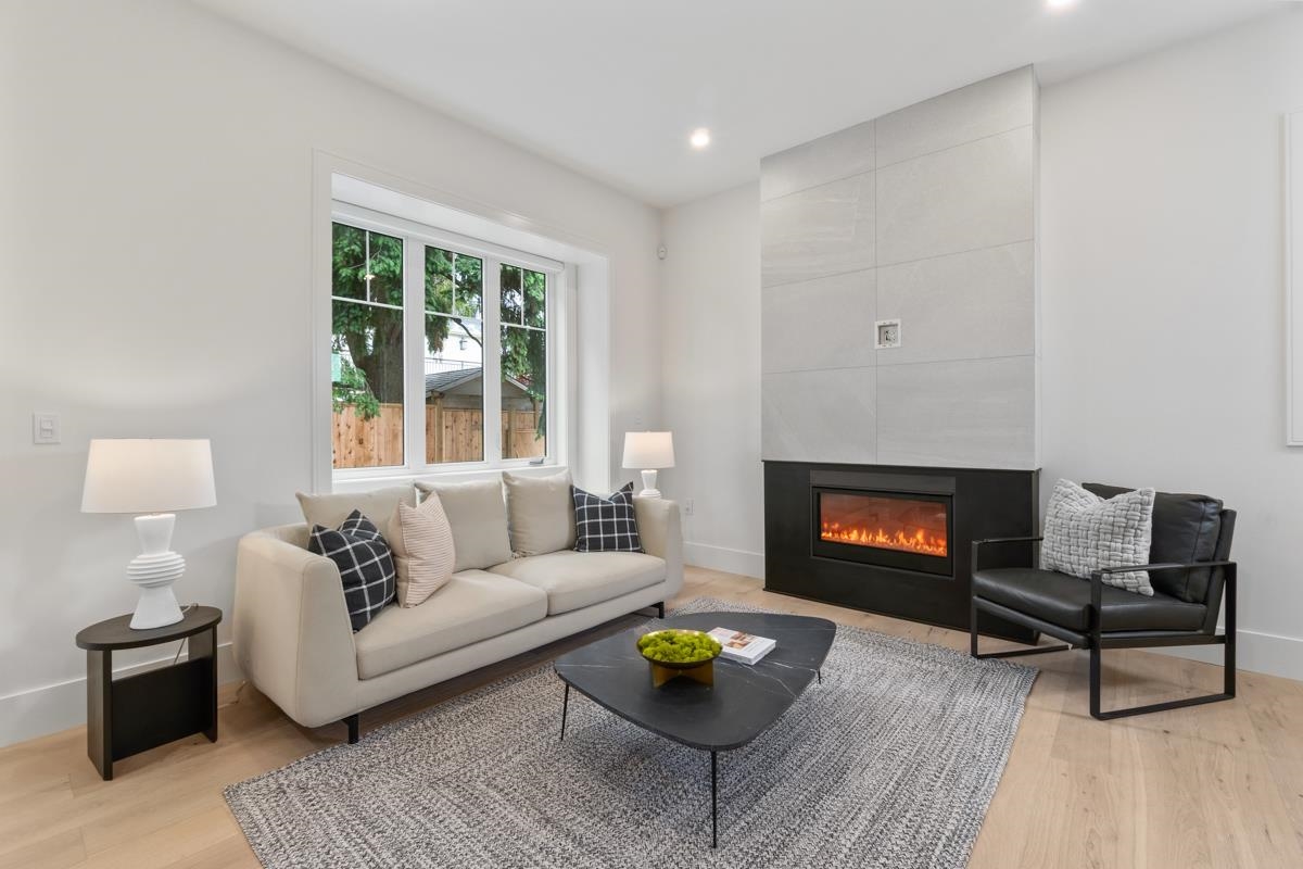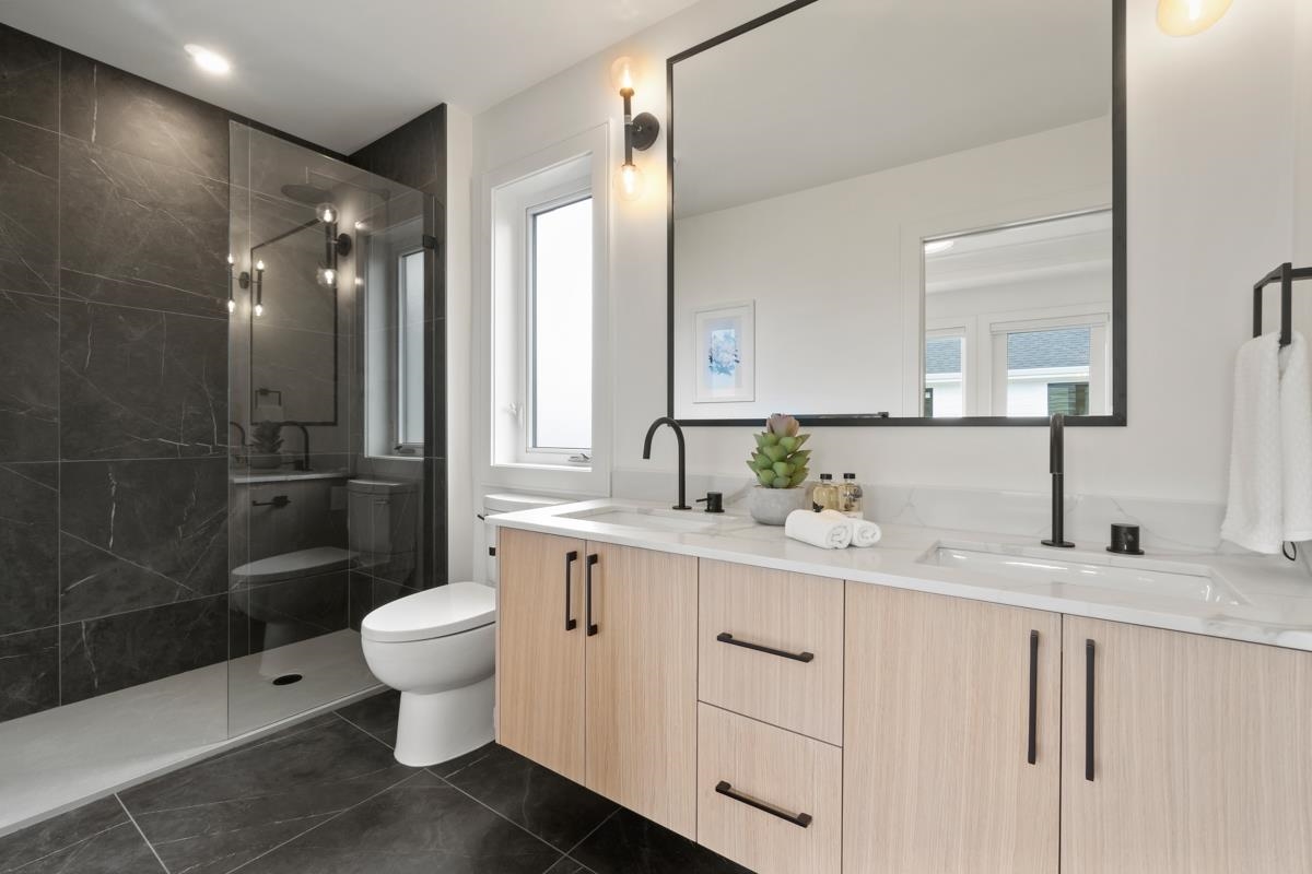 This stunning, upscale, move-in ready 3-bedroom 2.5-bath, half duplex Tudor styled family home by award-winning BRICKLANE Developments awaits in coveted Westwind. An OPEN CONCEPT layout offers a MODERN and CONTEMPORARY design and features SOPHISTICATED BESPOKE INTERIORS. A CHEF'S KITCHEN boasting CUSTOM CABINETRY with QUARTZ COUNTER TOPS and FISHER/PAKYEL appliances. This 2-LEVEL home offers 3 SPACIOUS BEDROOMS and a SPA-INSPIRED MASTER ENSUITE. Other features include DESIGNER PLUMBING fixtures, RADIANT IN-FLOOR heat, HIGH CEILINGS, an ATTACHED DOUBLE-CAR GARAGE with FLEX SPACE, a FULL 2-5-10 WARRANTY, and a PRIVATE outdoor space. Just a stroll to Steveston Village or hop on your bike for a ride along the Railway Greenway.