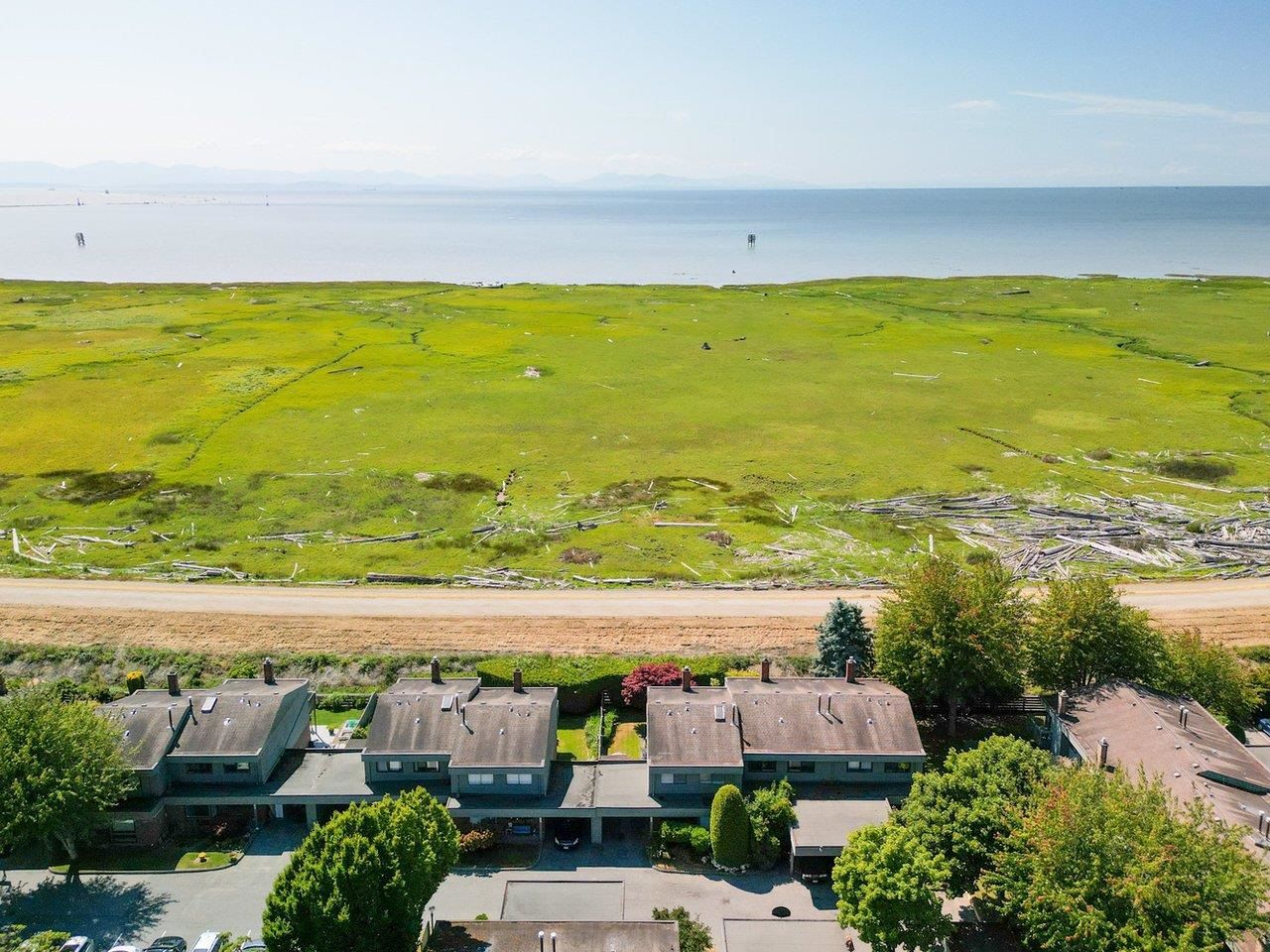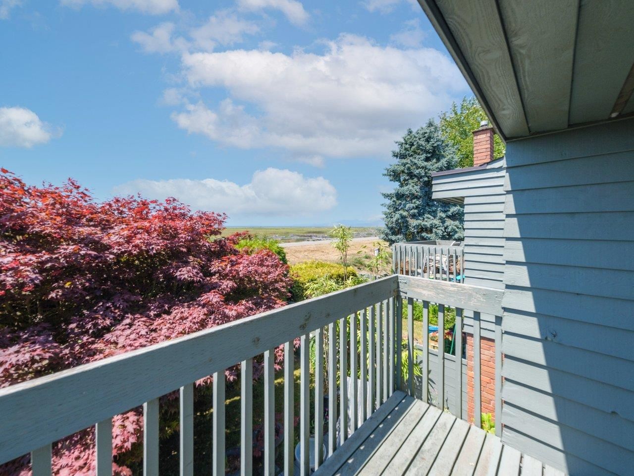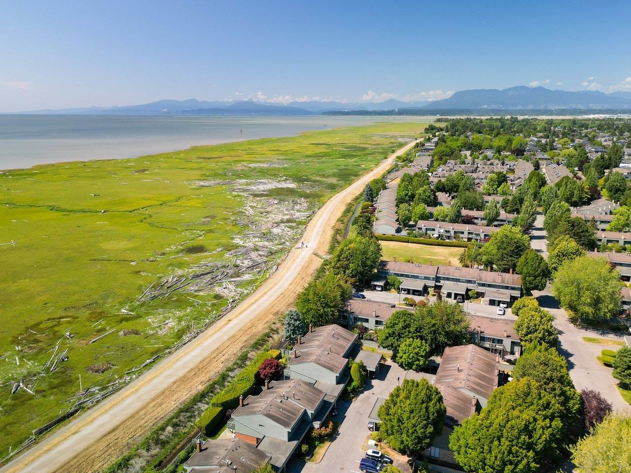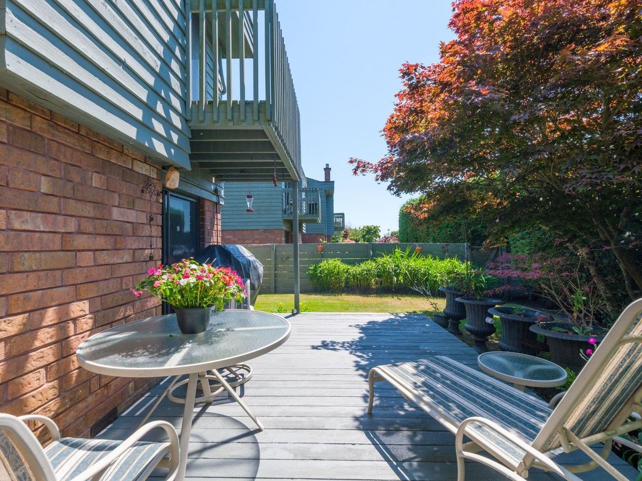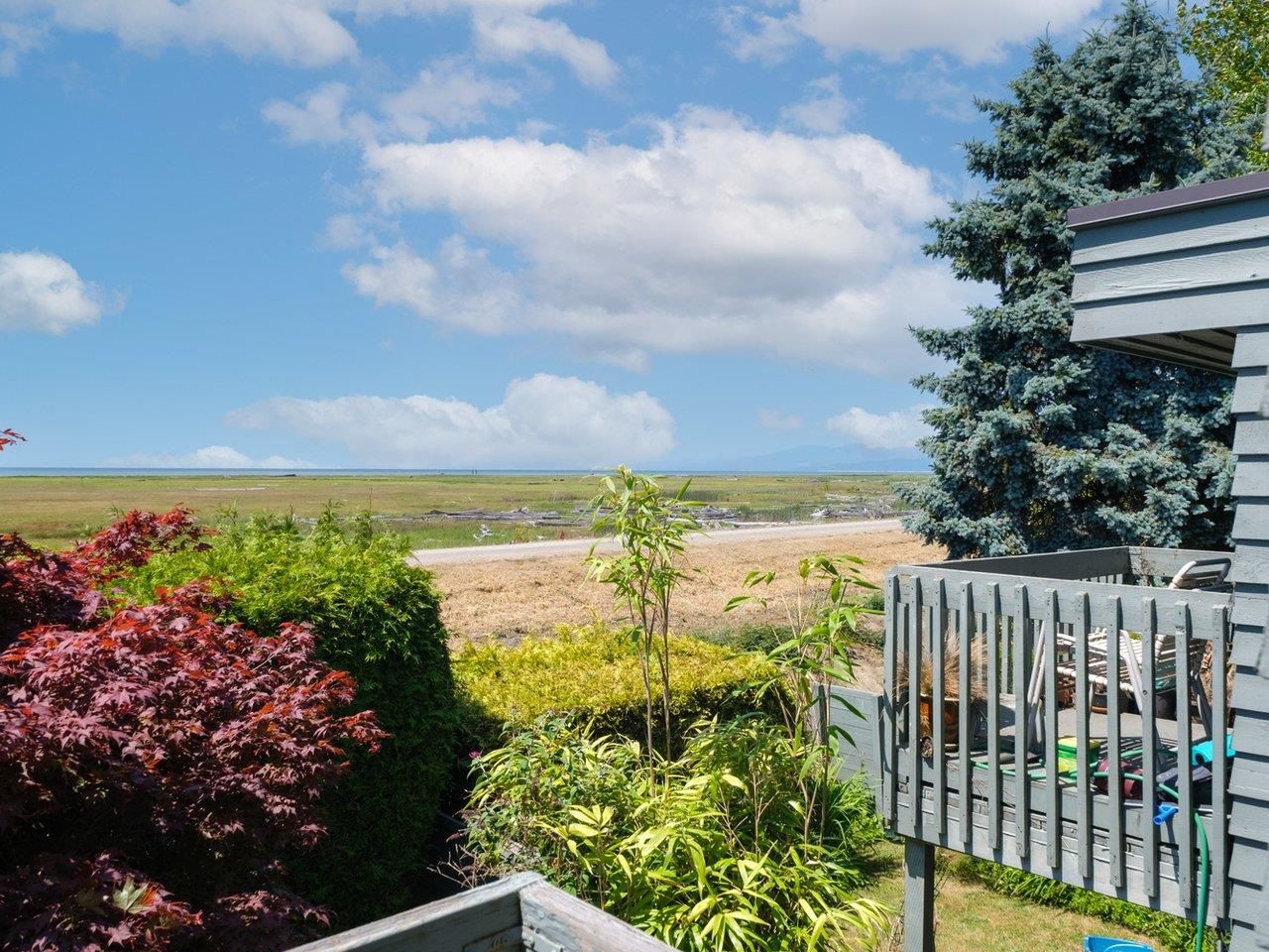 Wow! Relax at home and take in the peaceful, unobstructed, water & island views- clear across the straight of Georgia to Gabriola island. This duplex style, end unit has extra room and sliding glass door at the side yard, 4 bdrms (or 3+den) 1.5 bathrooms, updated flooring and lighting, paint & powder room and is located along the West dyke with beautiful sunsets. Enjoy evening sun and some shady privacy under a lovely Japanese maple tree. This is a hard act to follow!