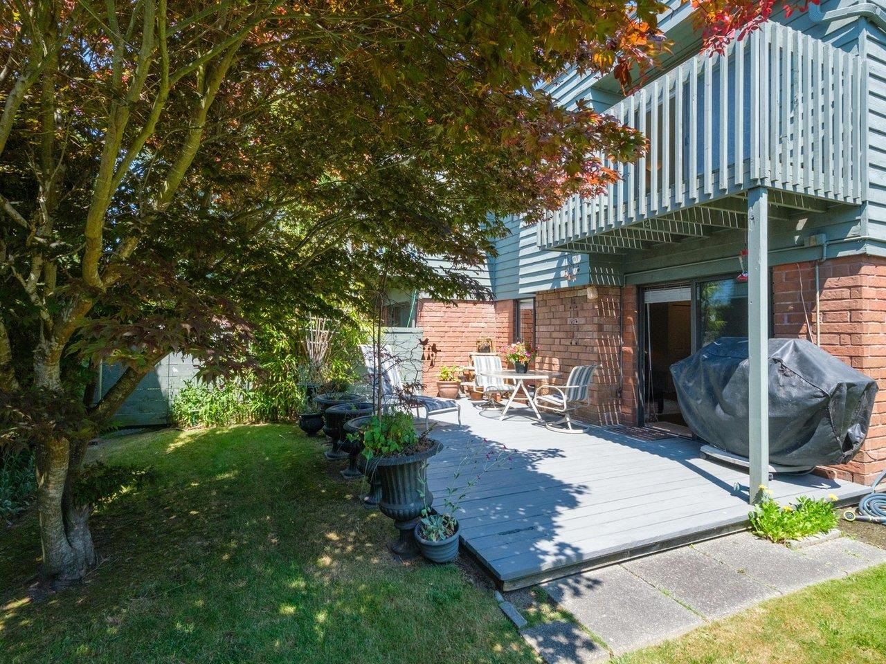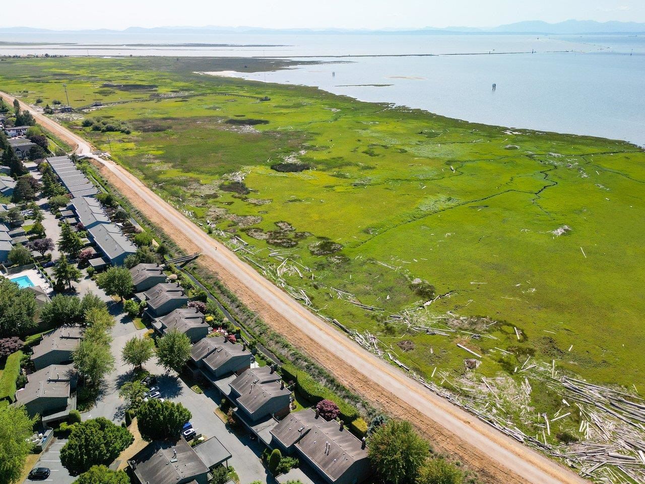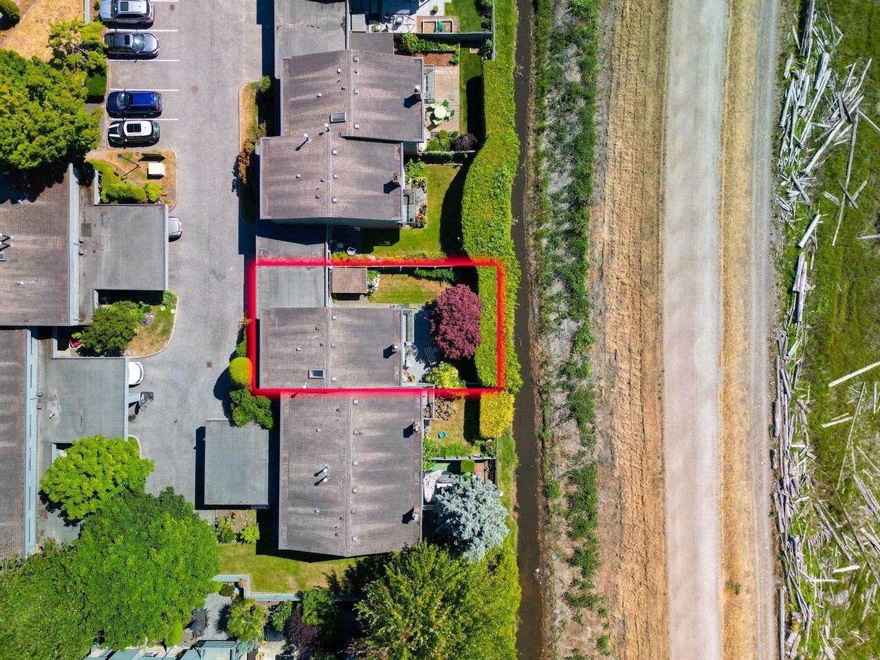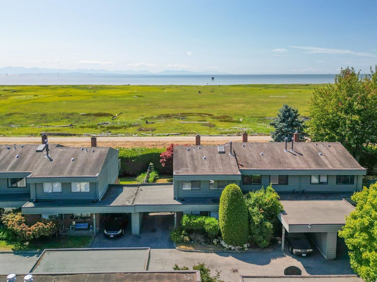 Wow! Relax at home and take in the peaceful, unobstructed, water & island views- clear across the straight of Georgia to Gabriola island. This duplex style, end unit has extra room and sliding glass door at the side yard, 4 bdrms (or 3+den) 1.5 bathrooms, updated flooring and lighting, paint & powder room and is located along the West dyke with beautiful sunsets. Enjoy evening sun and some shady privacy under a lovely Japanese maple tree. This is a hard act to follow!