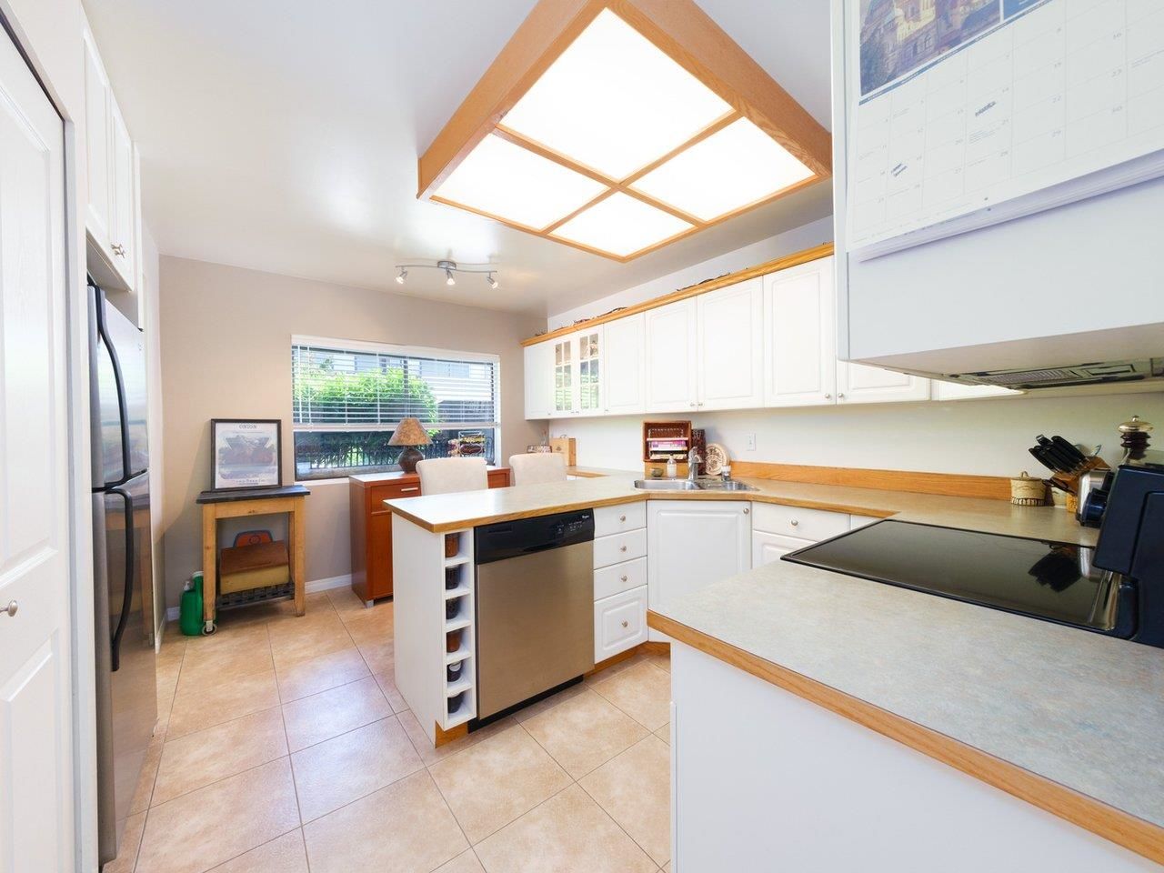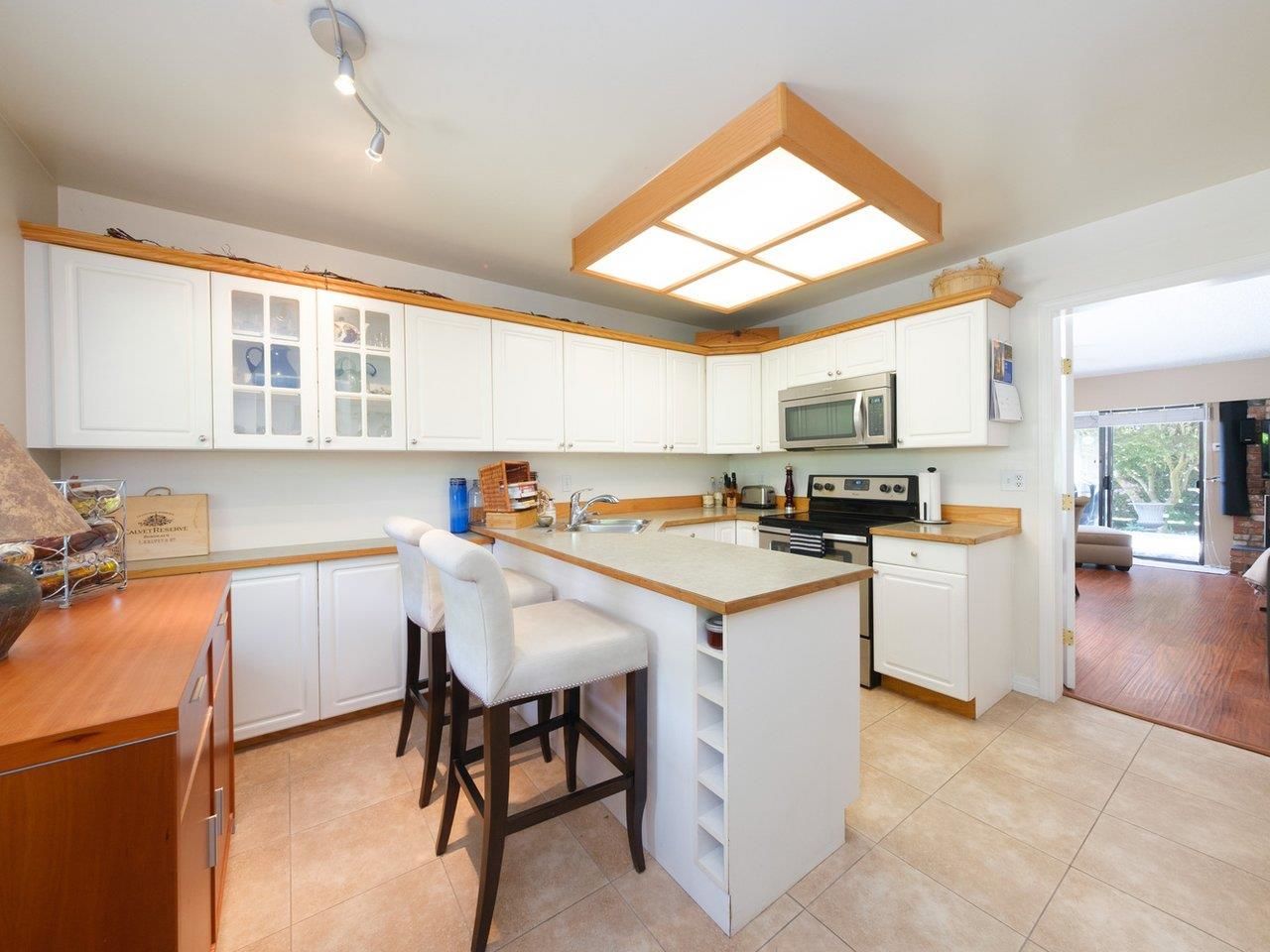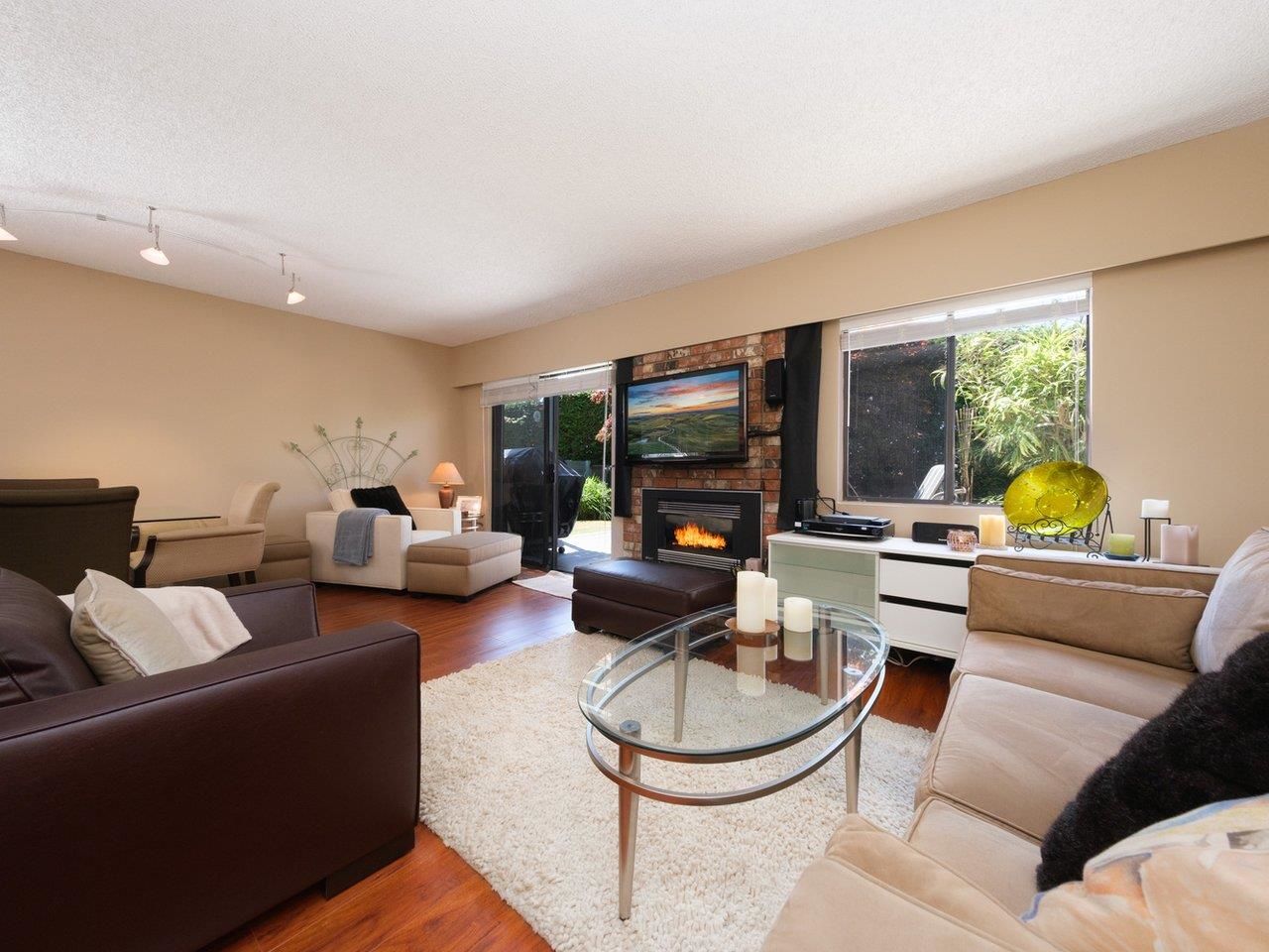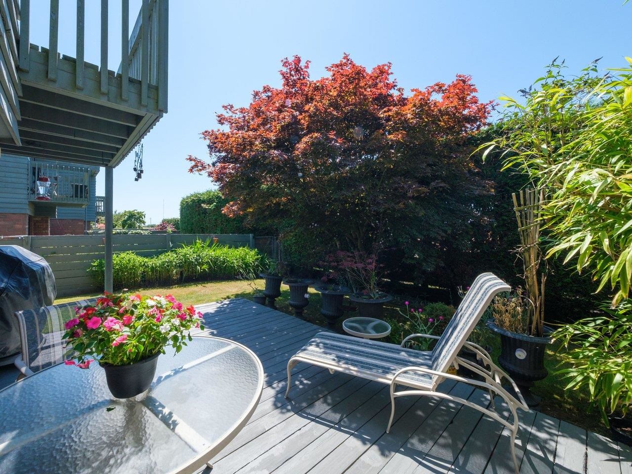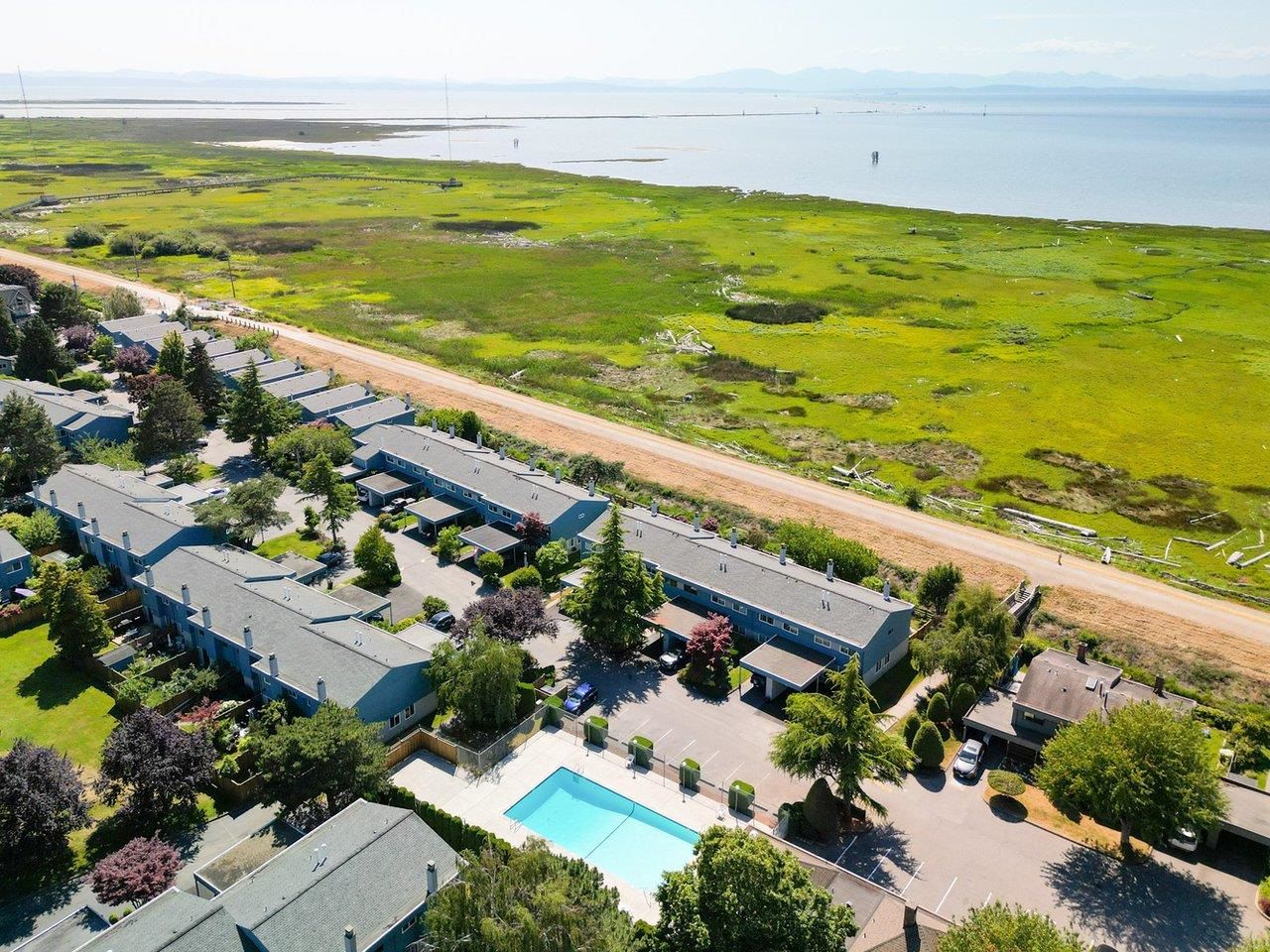 Wow! Relax at home and take in the peaceful, unobstructed, water & island views- clear across the straight of Georgia to Gabriola island. This duplex style, end unit has extra room and sliding glass door at the side yard, 4 bdrms (or 3+den) 1.5 bathrooms, updated flooring and lighting, paint & powder room and is located along the West dyke with beautiful sunsets. Enjoy evening sun and some shady privacy under a lovely Japanese maple tree. This is a hard act to follow!