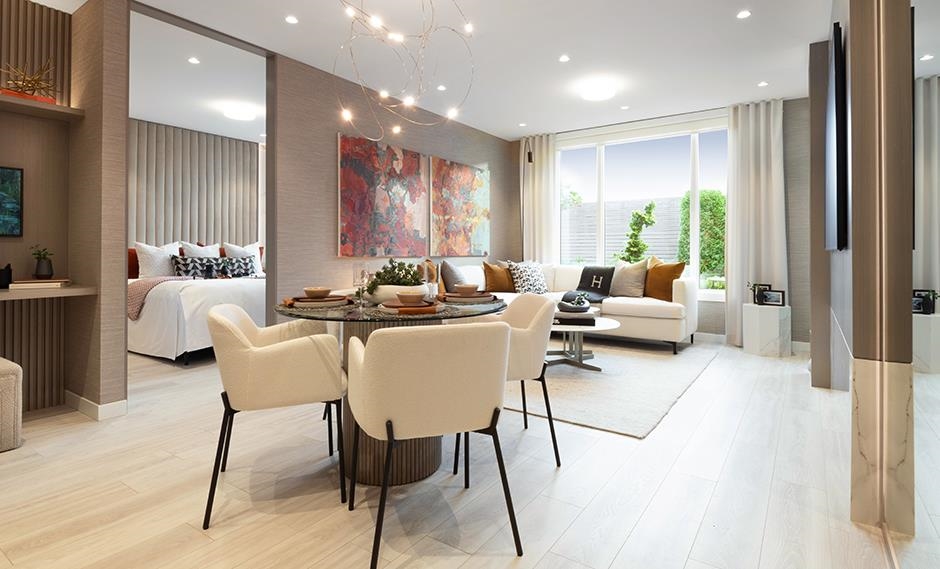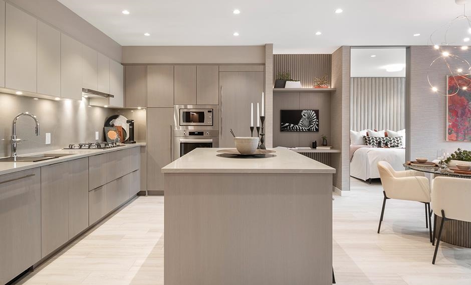 The contemporary architecture of Talistar by Polygon is distinguished by its slender vertical fins, which add sophistication to the skyline by day and glow as a beacon of soft light by night. The homes are thoughtfully designed to enrich everyday living. This North-facing corner home features a generous covered balcony for outdoor living and many designer details. The kitchen showcases Bertazzoni appliances to inspire you to spend quality time cooking and entertaining. As Polygon's first Telus Residential Smart building in Richmond, future-friendly features such as a keyless entry door lock, a digital security system and more are also included. Visit our sales office at 3600 Sexsmith Rd., Richmond, open daily 12-Spm except Fridays.