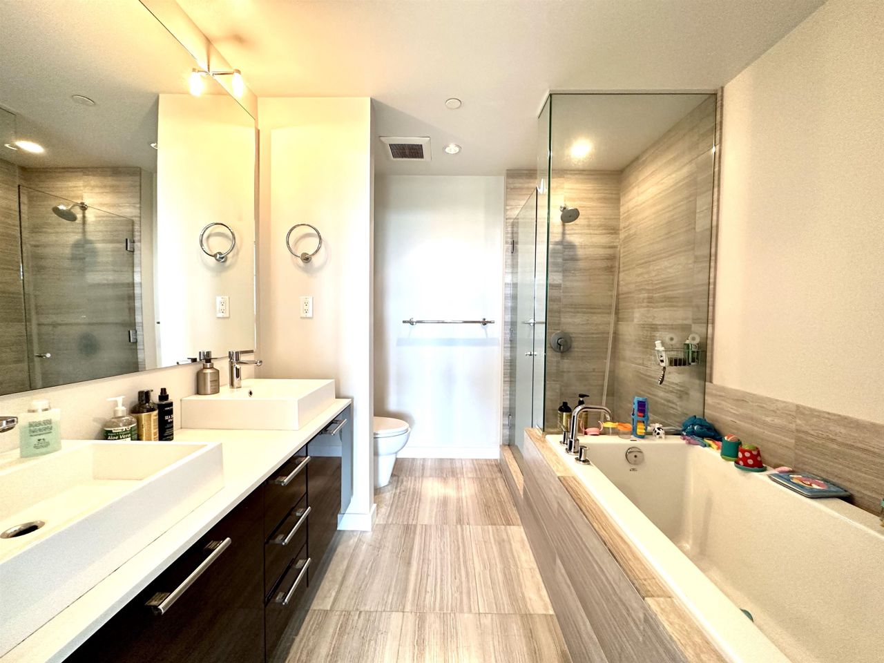 River Green by the Oval, the most luxurious and prestigious waterfront community in Richmond. This stunning 2 bedroom and den, 2.5 bath unit, 180 sq ft full size balcony with mountain and river view, functional layout with high ceiling, top of the line appliances,5 stars Resort like living, 25m lap pool, sauna, whirlpool, gym, theater, virtual golf, music room with piano, pool tables party room and playground. 24/7 concierge. 1 block to Oval, shops and restaurants, super market. Private shuttle bus to Canada Line-Aberdeen station to YVR Richmond Center and Van Downtown. Steps away to the trails. Good school catchment-Brighouse Elementary, Richmond Secondary- offers IB Program. Include 2 parking and 1 locker.