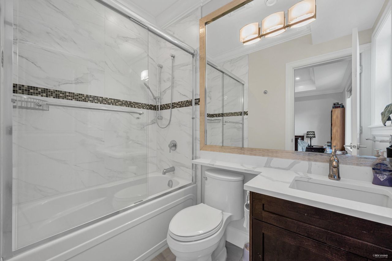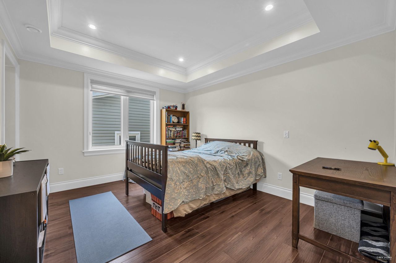 This luxurious custom built home sitting in desirable Woodwards neighourhood! This exquisite contemporary 3-storey home has Concept floor plan with over 4100 sq. ft. of living space, 5 bedrooms & 6 washrooms. Open functional layout for living, dining & family rooms. High End stainless appliances, radiant heat, A/C/HRV system, central vacuum, 5 ensuite bathroom and a large sundeck to enjoy life. Steveston London Secondary & McKinney Elem. catchment. Must See!