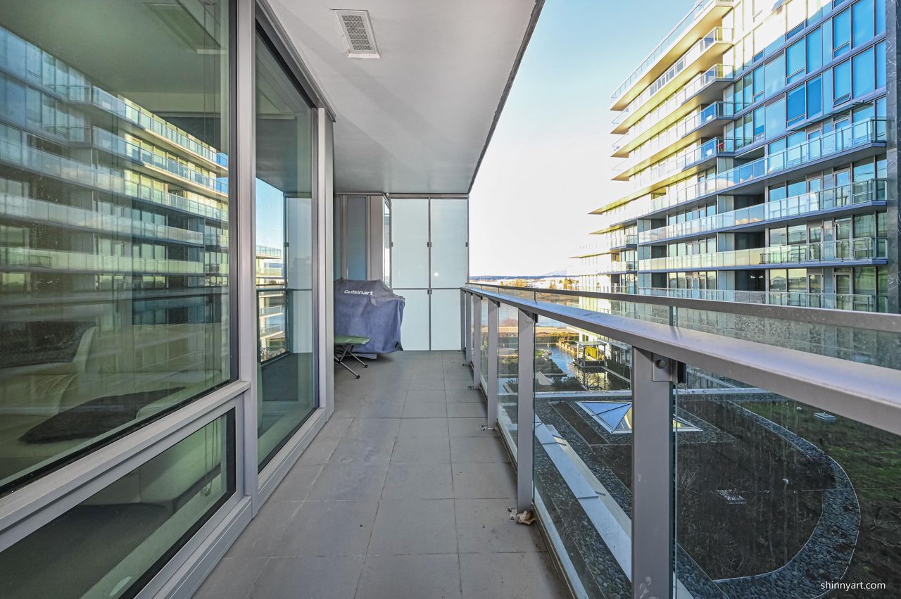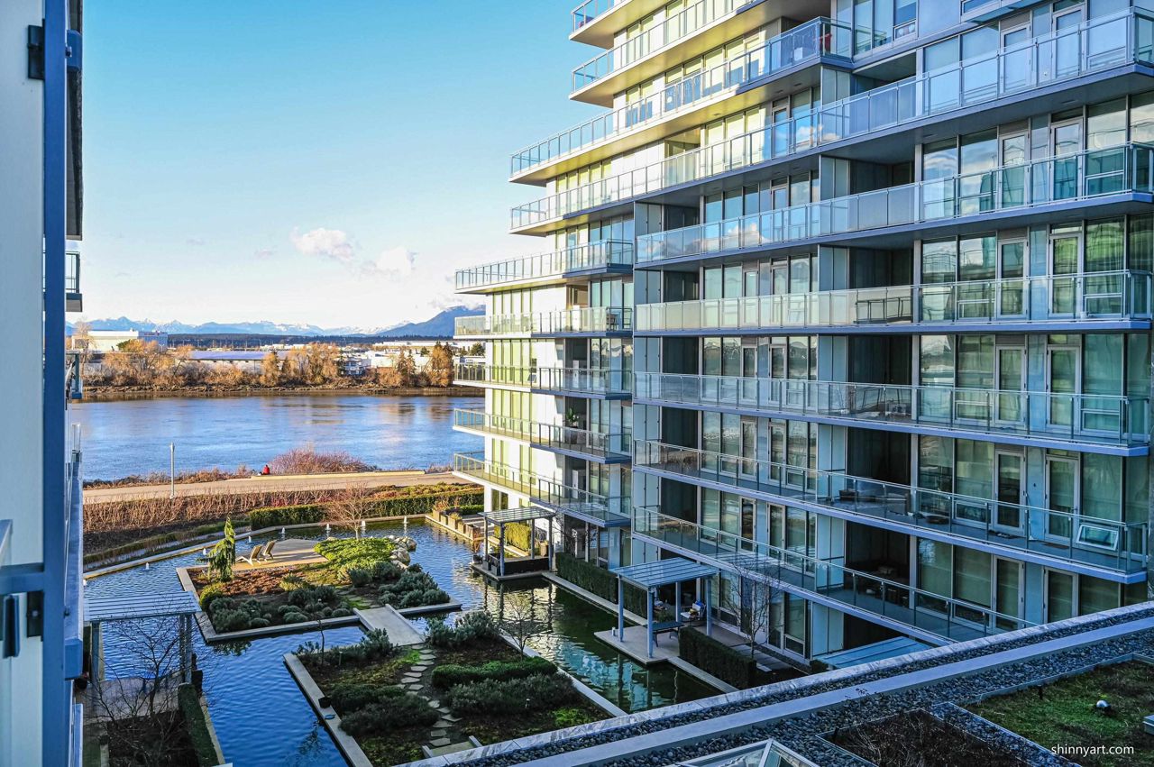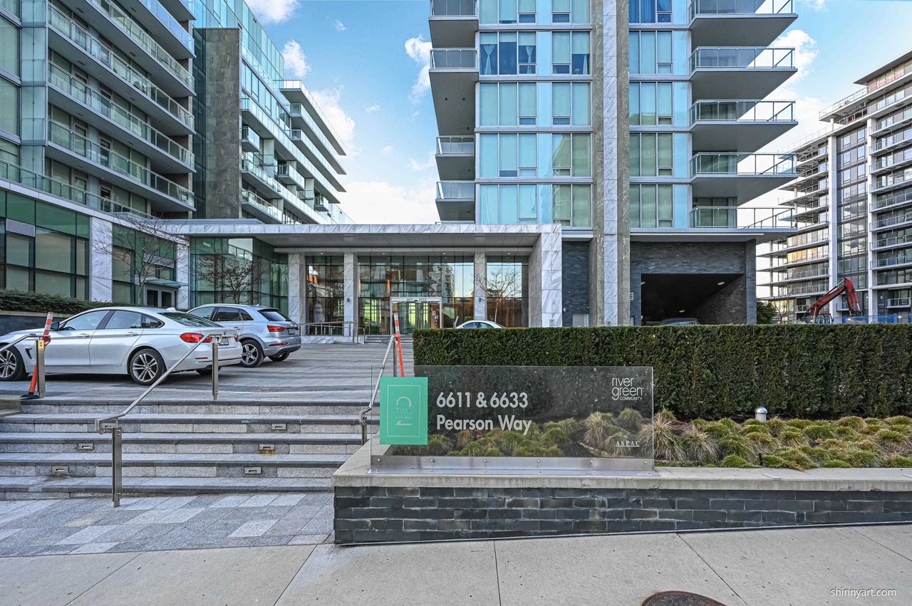 2 RIVER GREEN by ASPAC, the most luxurious & prestigious waterfront community in Richmond. The 1 bedroom plus 1 den features Italian cabinets, Miele appliances and Sub-Zero refrigerator, floor to ceiling windows, 9 feet ceiling. The Den is flexible to use as an office or a mini bedroom with a sofa bed. Central heating and air conditioning system, comfortable Nuheat floor in the bathroom. Large open balcony with river and mountain view while catching the beautiful Sunset. 5 stars resort style amenities including indoor swimming pool, sauna, steam room, hot tub, exercise room and recreation center. 24 hours concierge, shuttle-bus to Richmond center and Canada Line, minutes to Olympic Oval, T&T Supermarket & restaurants. Easy access to Vancouver and airport.