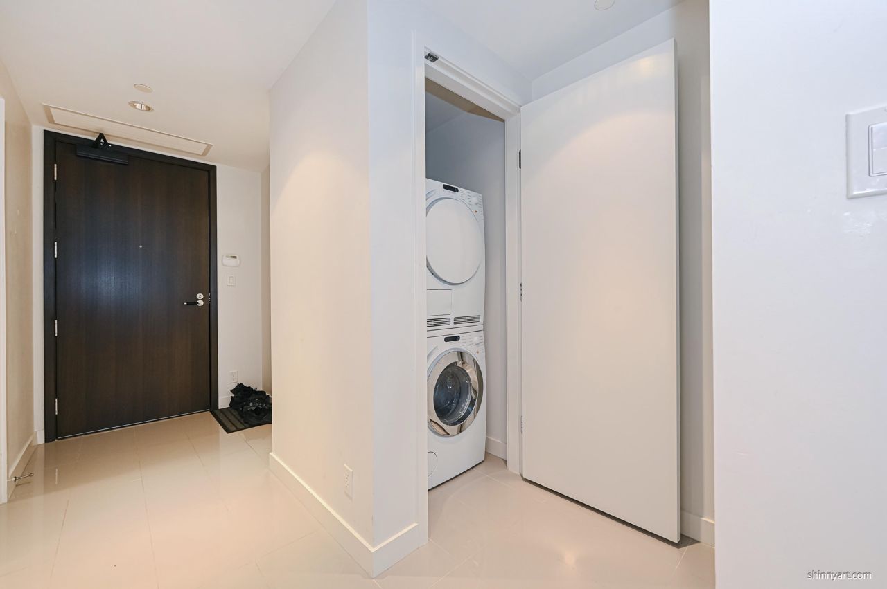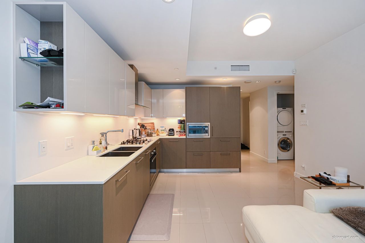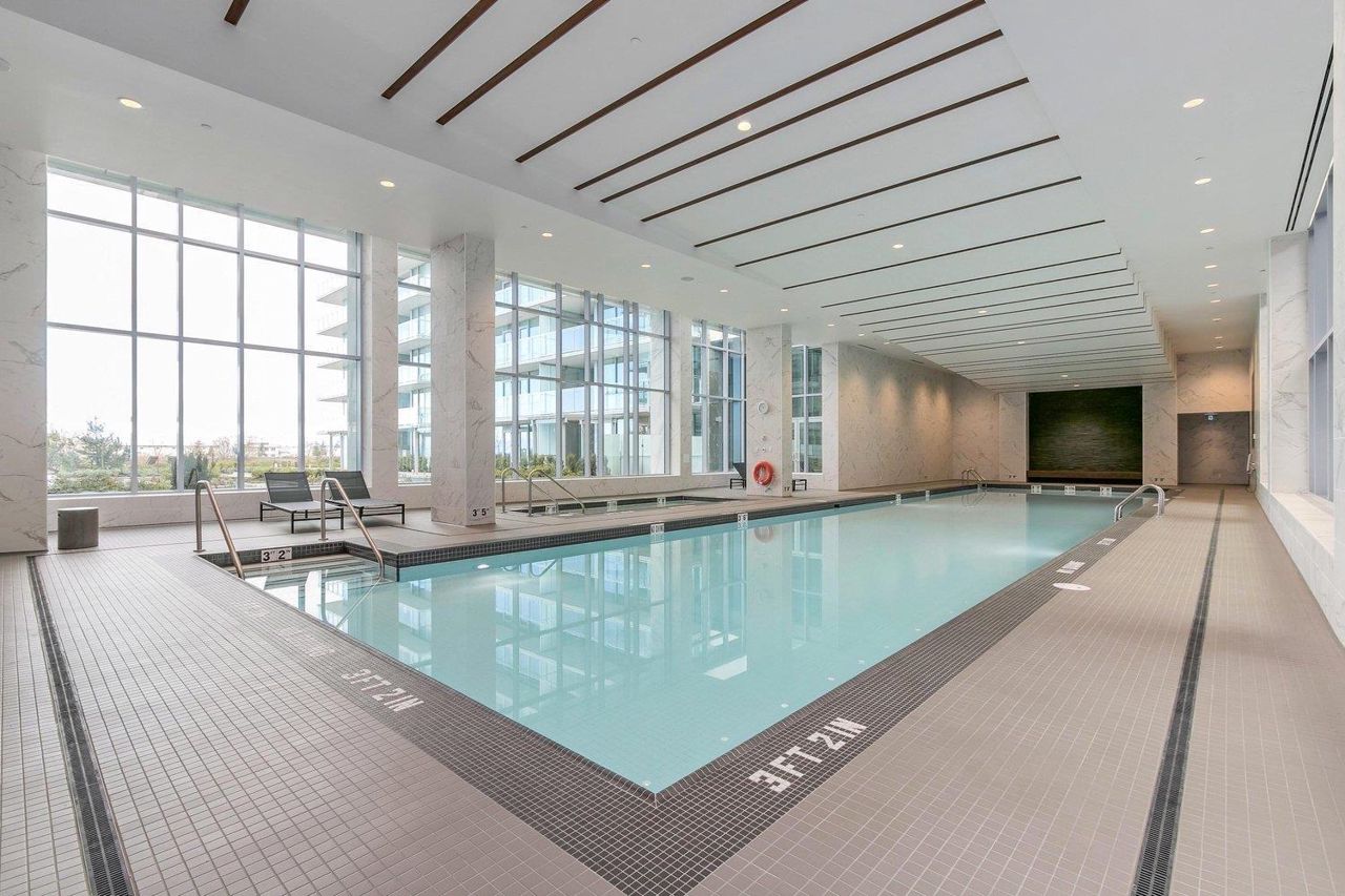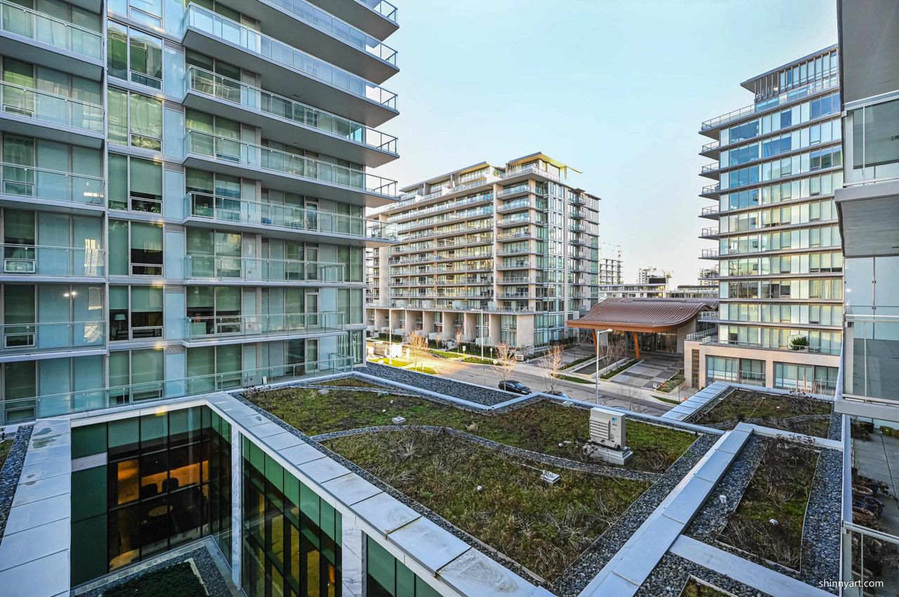 2 RIVER GREEN by ASPAC, the most luxurious & prestigious waterfront community in Richmond. The 1 bedroom plus 1 den features Italian cabinets, Miele appliances and Sub-Zero refrigerator, floor to ceiling windows, 9 feet ceiling. The Den is flexible to use as an office or a mini bedroom with a sofa bed. Central heating and air conditioning system, comfortable Nuheat floor in the bathroom. Large open balcony with river and mountain view while catching the beautiful Sunset. 5 stars resort style amenities including indoor swimming pool, sauna, steam room, hot tub, exercise room and recreation center. 24 hours concierge, shuttle-bus to Richmond center and Canada Line, minutes to Olympic Oval, T&T Supermarket & restaurants. Easy access to Vancouver and airport.