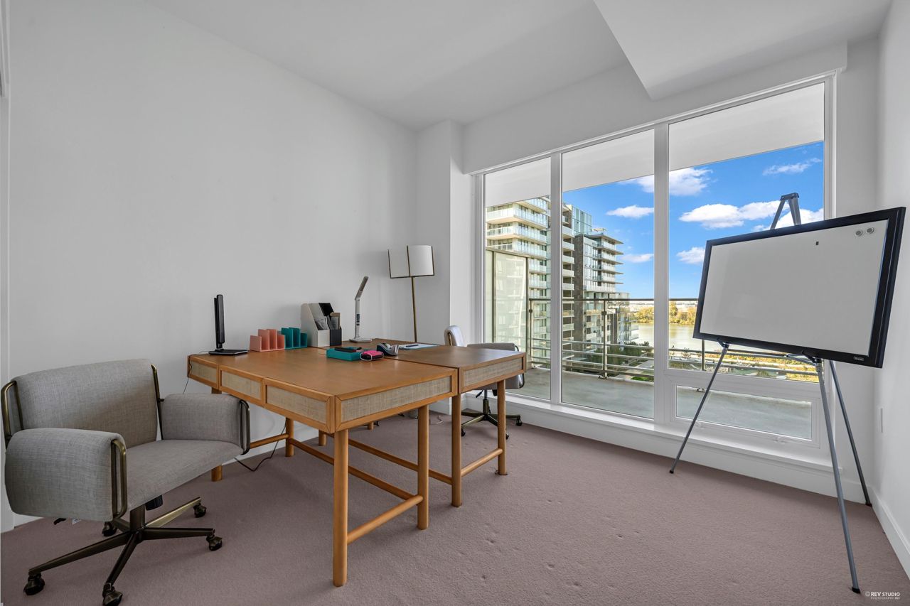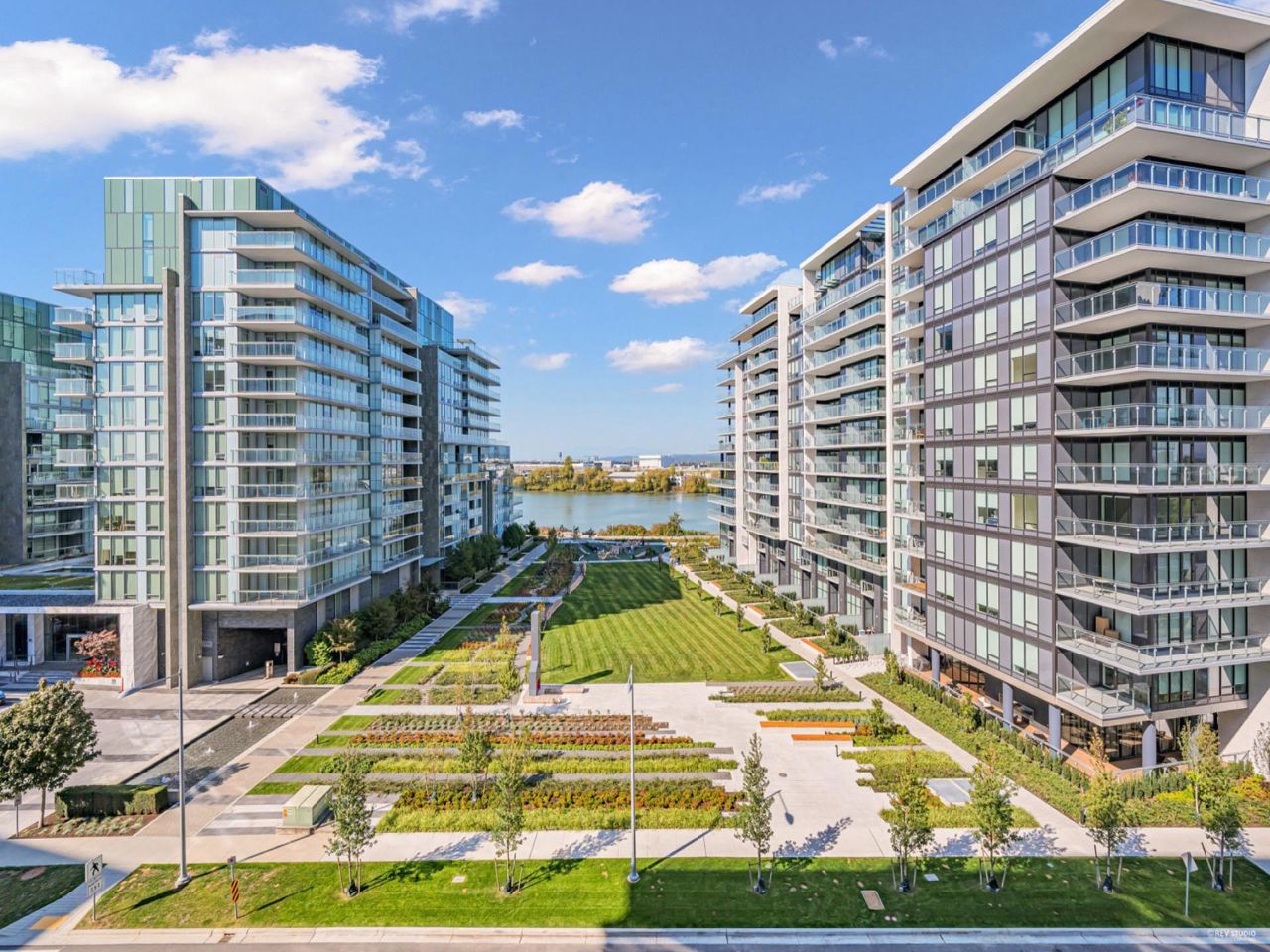 Welcome to the rarely available TWO BEDROOM plus DEN of 2 RIVER GREEN complex with spectacular Water and Mountain Views in the prestigious community of Richmond. The Den with built in closet could also be the third Bedroom of the unit. Proudly developed by ASPAC Developments, this A/C 1280 sq.ft unit features 3 Bathrooms, Miele Appliances, Snaidero Design Cabinetry, Award-Winning Italian Cesar kitchen with Caesarstone Countertops, and Plank Wood Hardwood floor. This unit of the waterfront properties with the open modern design living spaces overlooking the views of the Water, Mountains, Airports, and parklike courtyard areas. Resort style premium amenities include 24/7 Concierge services, club house, indoor swimming pool, hot tub, steam/sauna, gym, piano room and theatre room.