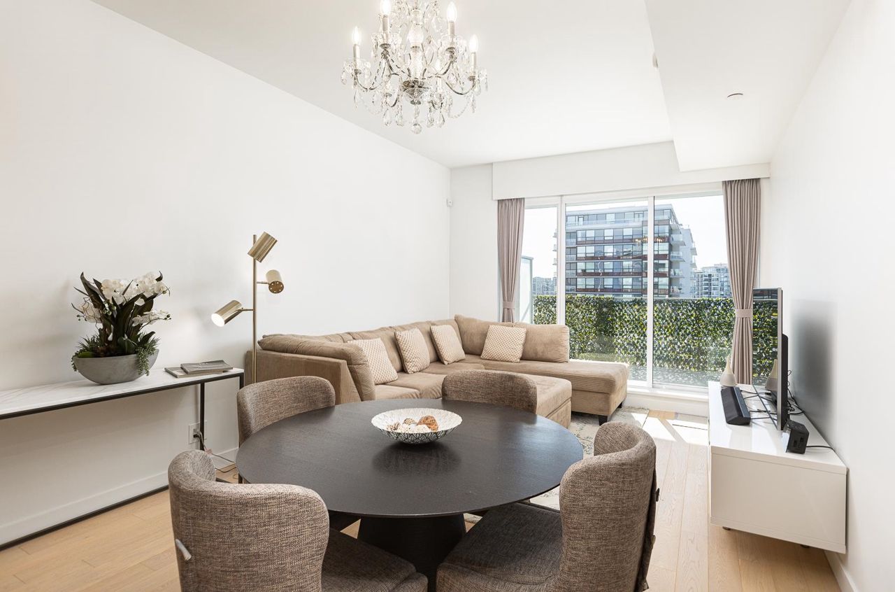 SOUTH FACING Waterfront luxurious condominium built by award winning ASPAC (2 RIVER GREEN),This 2 bedroom 2 full bath unit like NEW, offering south natural light in every rooms. Huge patio (300 sqft) overlooking City & Garden view . Highly functional open layout with plenty of storage. Featuring Central Heating/Air Conditioning, Miele appliances, smart home system, and music from Bang & Olufsen entertainment system. 24 hour Concierge with the best club house.The 5 stars luxury resort style amenities - Over 34,000 Sqft Green Space and Water garden, indoor swimming pool, sauna/steam room, fitness center, Yoga dance room, Club Room, Music Room, Study room. Private shuttle bus to City Center. Steps to river dyke, Oval, T&T and restaurants. A must see!!