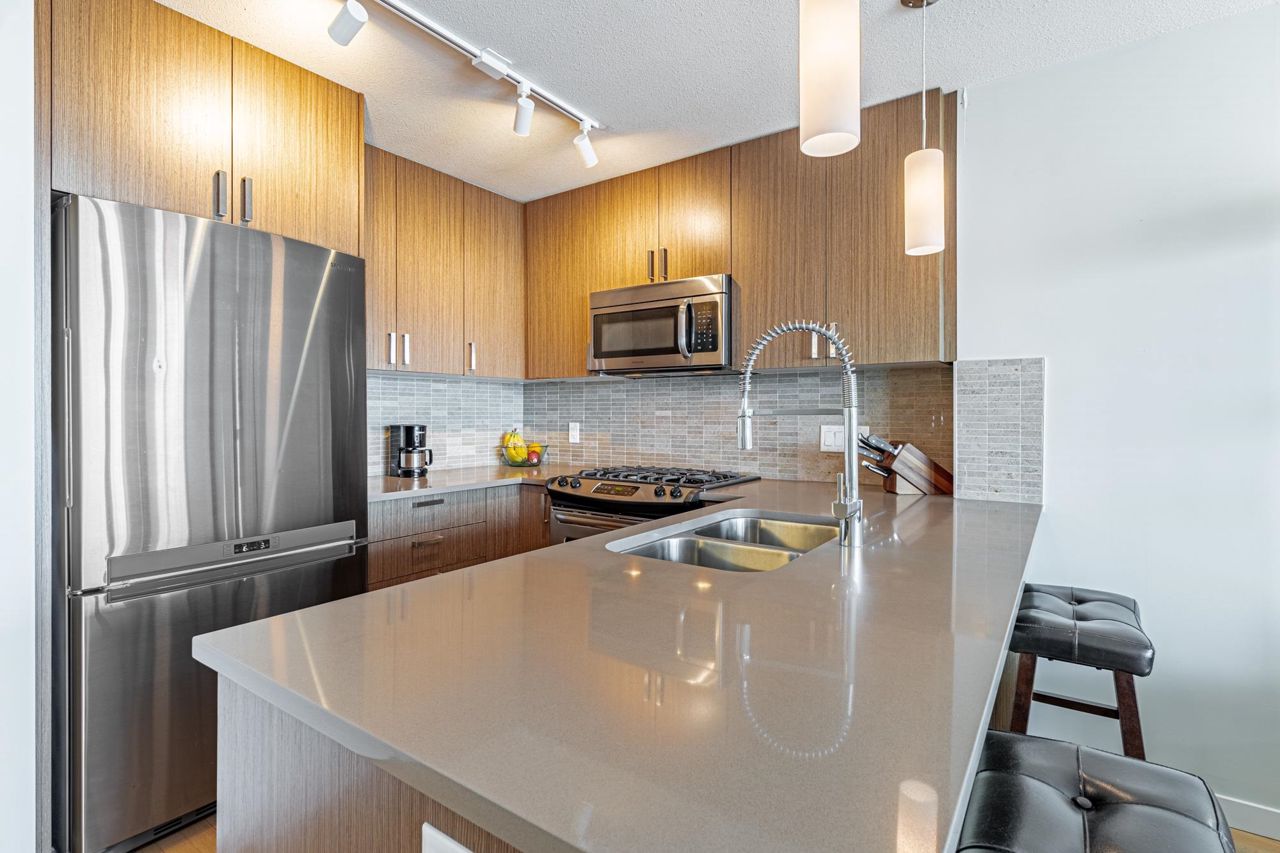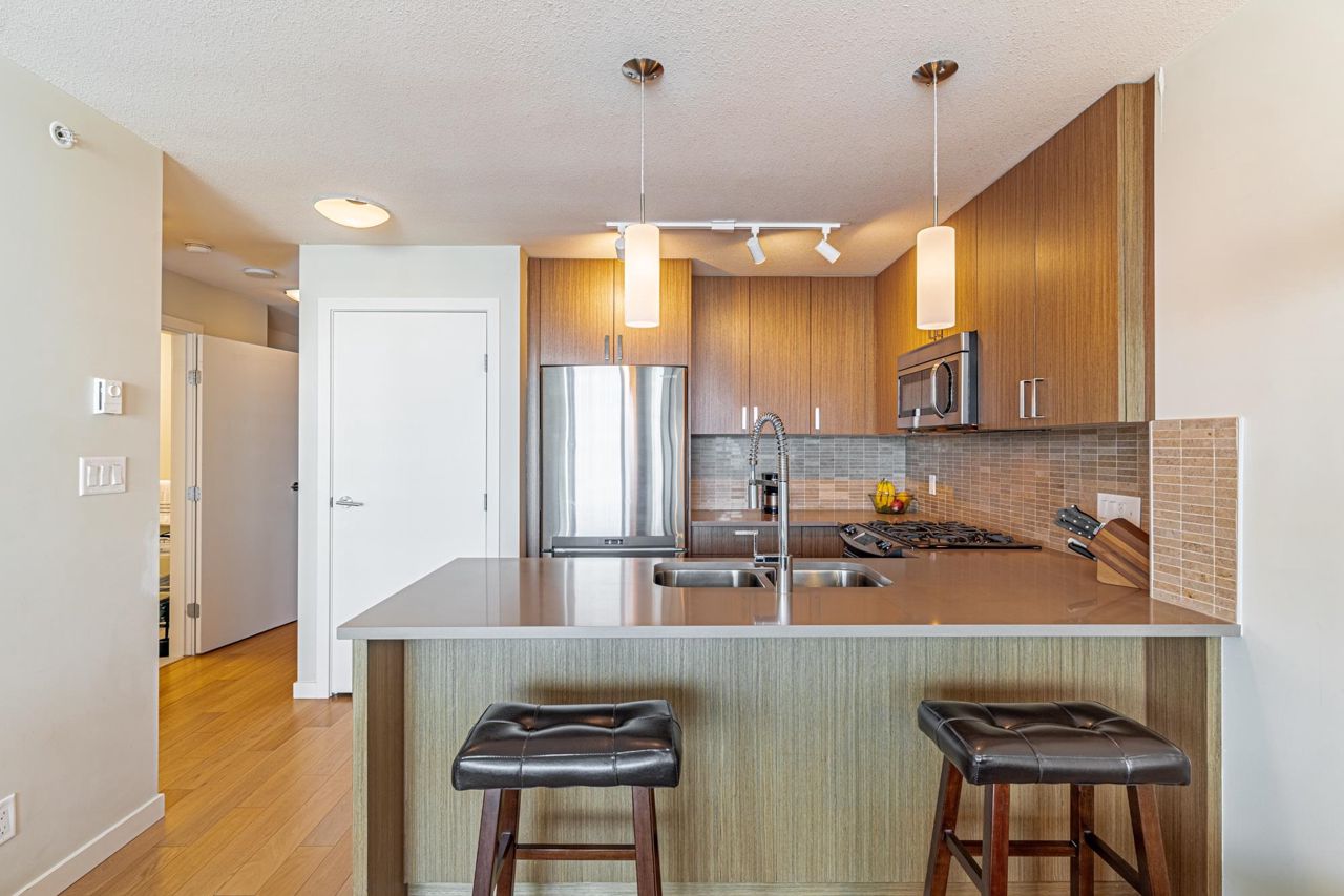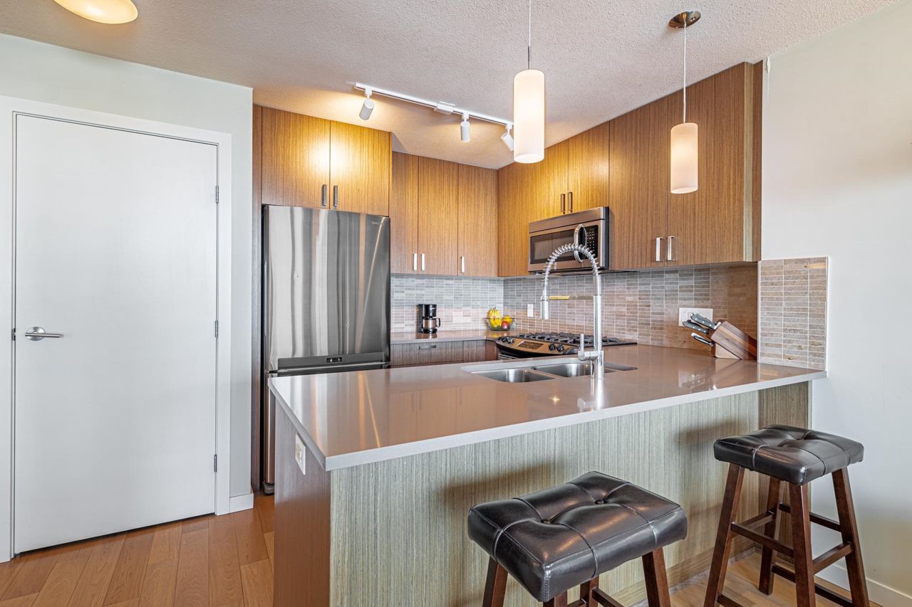 Welcome to Camber. CONCRETE mid-rise building located in vibrant Richmond neigborhood. Extremely well cared for unit situated in one of the most superior locations within the building. Enjoy high up southwest facing city views from your oversized balcony. Large windows letting in tons of natural light. Great use of space with functional one bedroom layout. Kitchen equipped with stainless steel appliances and plenty of counter space.Lovely garden mezzanine, gym and amenities room. Convenient central location. Steps to Skytrain, transit, shopping, Landsdowne mall and popular Richmond dyke. Book viewing today!