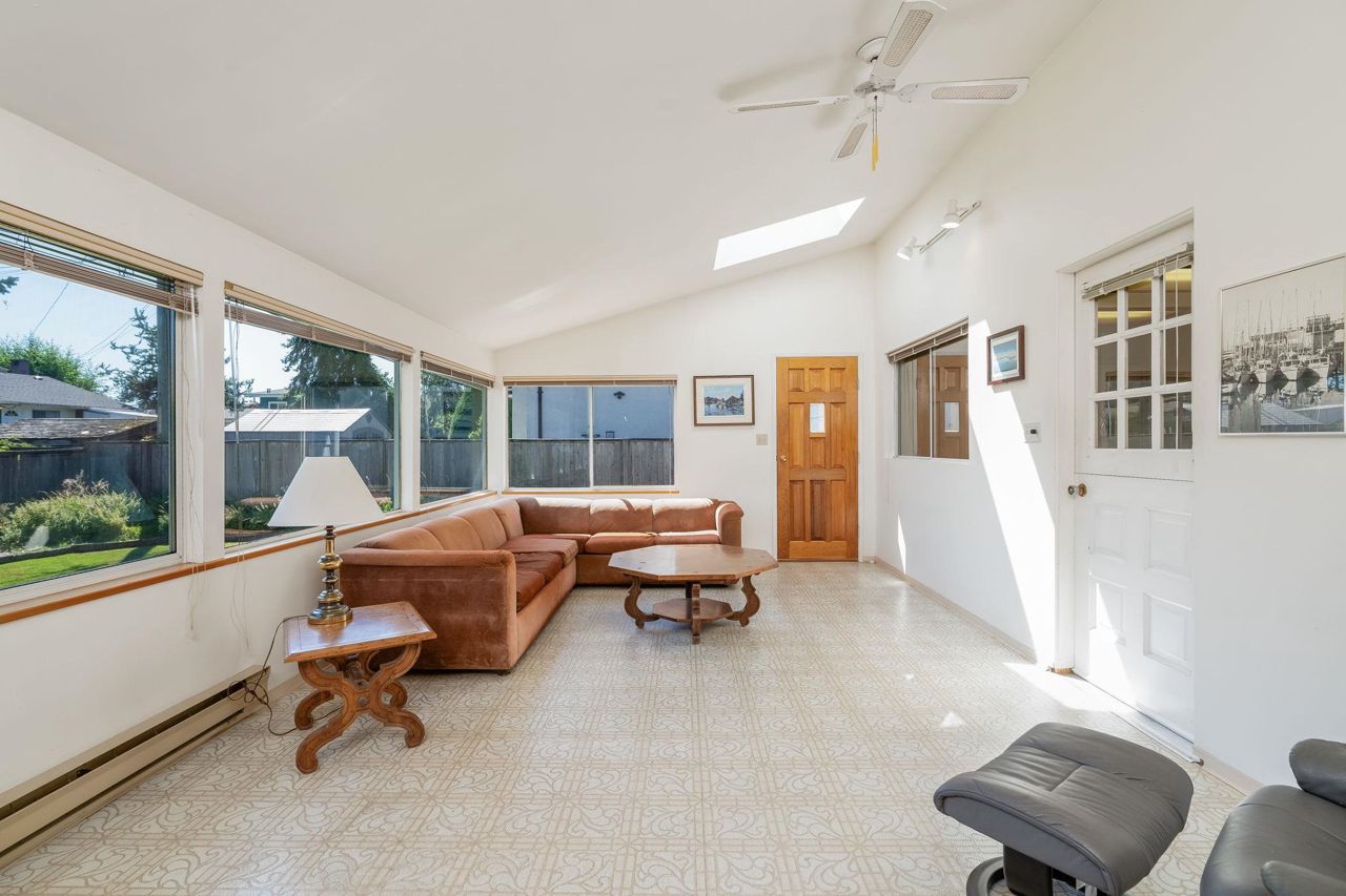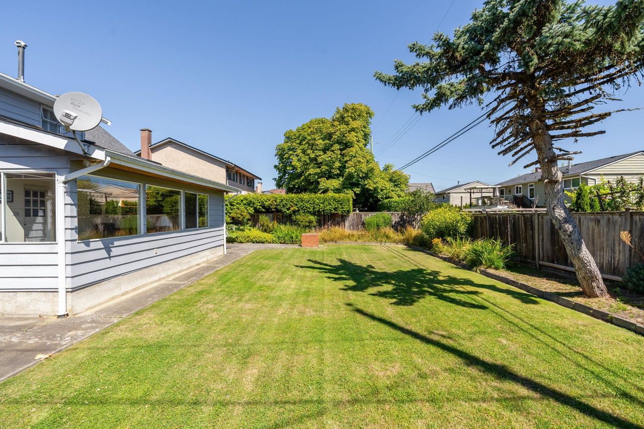 Nostalgic 1962-built gem! This delightful detached single-family home offers 4 bedrooms and 2 full bathrooms, perfect for growing families and those seeking a cozy, traditional home on a 7030sf lot. Unwind in the spacious sunroom! Imagine yourself sipping coffee or reading a book in this inviting space flooded with natural light with 2 skylights and overlooking the spacious backyard. Perfect for outdoor living, gardening, or entertaining. Endless possibilities await you! This mostly original home offers a blank canvas for your personal touch and creative vision. Enjoy the benefits of a peaceful neighborhood with sidewalks and curbs and close to Gilmore Elementary (F.I), Boyd Secondary or McMath Secondary (F.I), Seafair Shopping Centre, transit and the dyke.