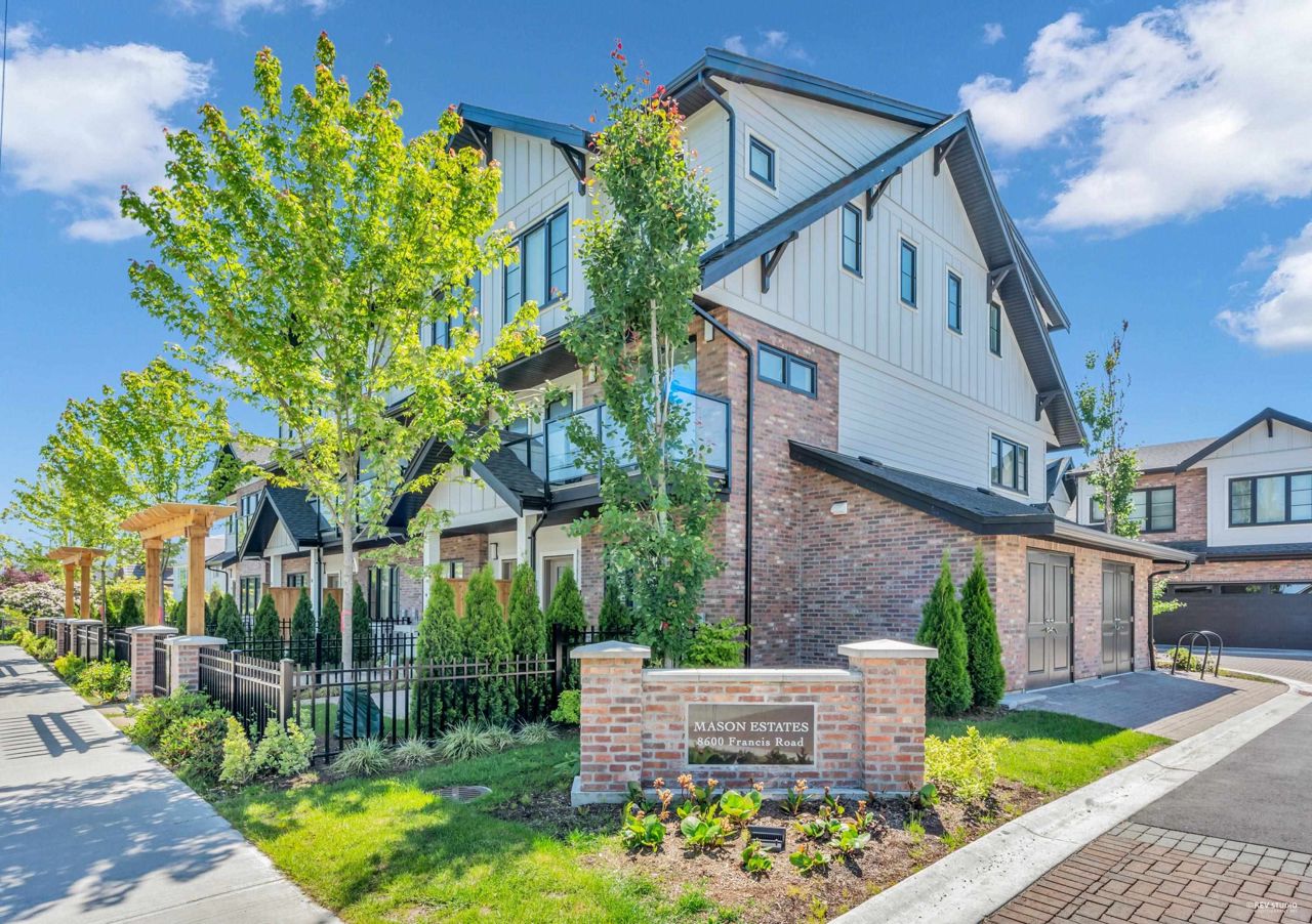 This spacious 3 bedroom and 3 Bathroom with thoughtfully designed space and detail-oriented finishing. Featured with contemporary interior design, A/C. A complete German Bosch appliances is engineered to perform in your home. Mason Estates is a perfect single-family home alternative, with private individual entrances, front and back yards, and all of the benefits of a strata maintenance service. Room dimensions from draft architectural plans. With walking distance to Garden City Shopping Centre, daycares, community centers, parks, etc. Top Richmond Schools-Garden City Elementary and Hugh McRoberts Secondary Within walking distance. Located at the quiet side of Francis Rd. EV Ready Parking! MUST SEE!