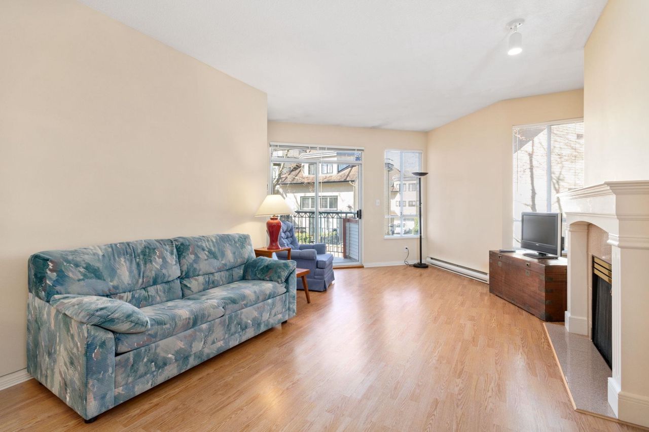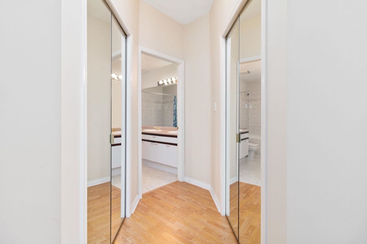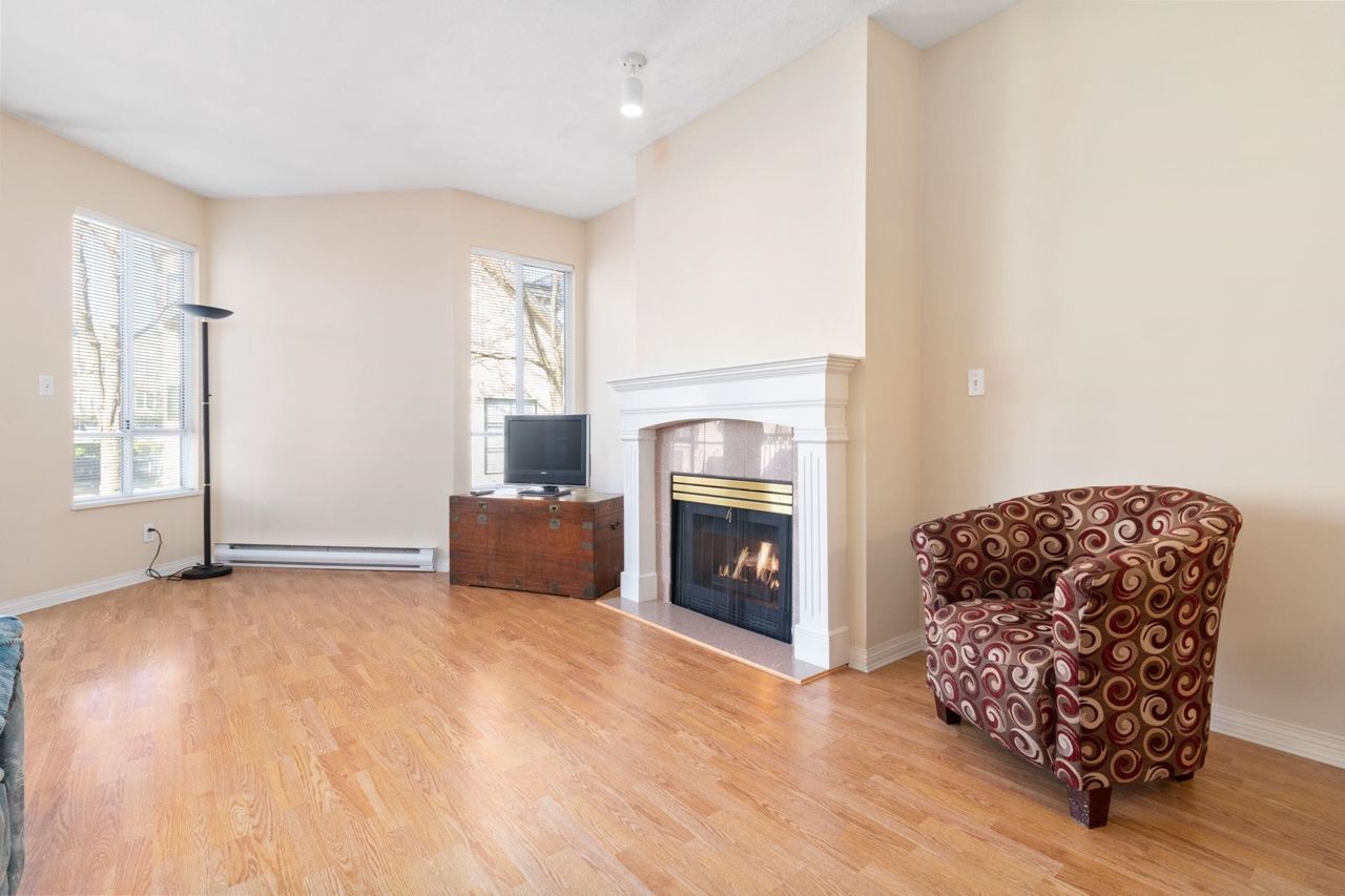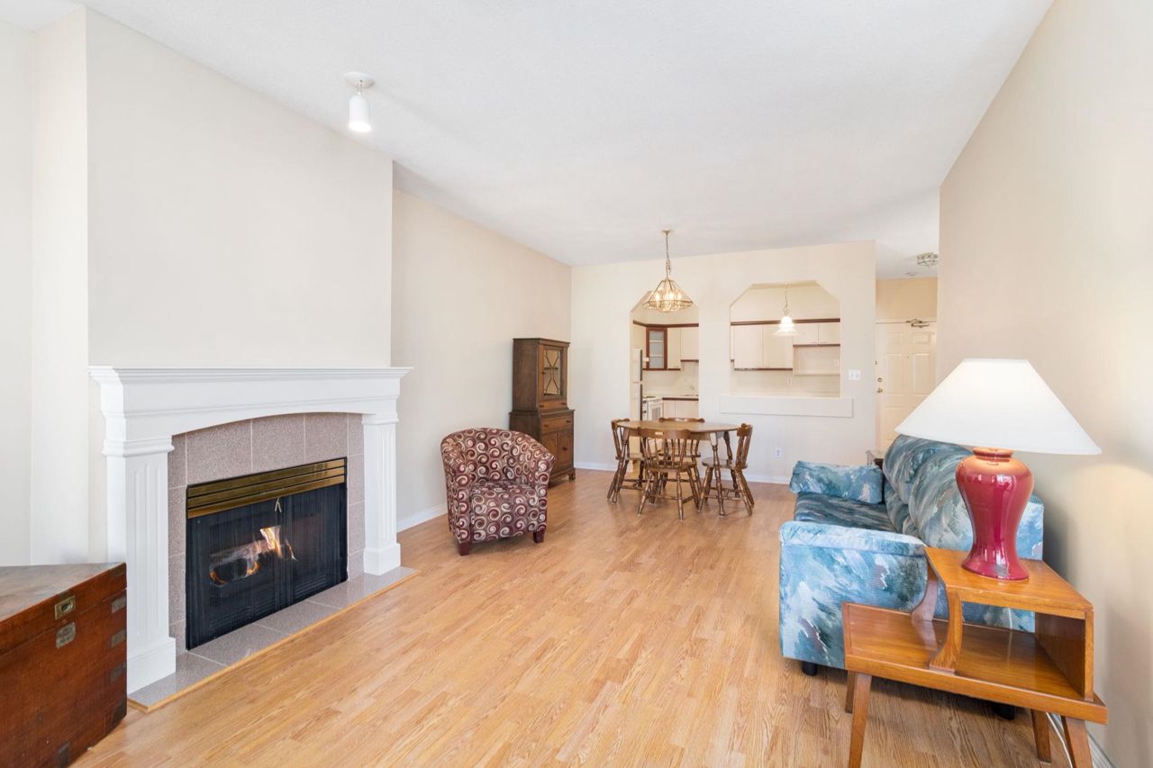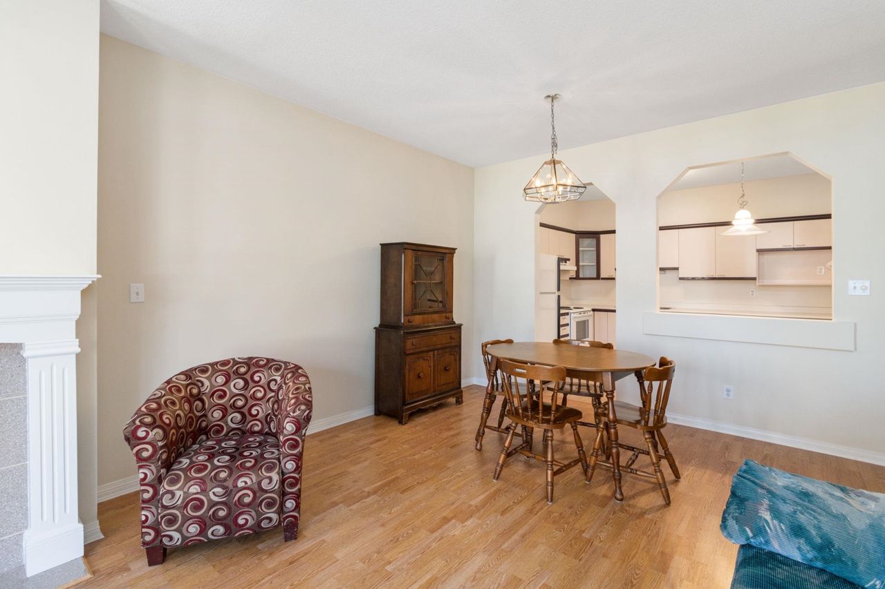 Beautiful home in WINDGATE ROYAL! two bedrooms/two baths (above the ground!), offering approx. 1180 sq. ft. of bright and spacious living area, huge windows with lots of natural light, 9 foot ceilings throughout. Both living room and master bedroom doors lead to a private and serene west facing balcony facing mature trees. Spacious kitchen with its own eating area and ample kitchen cabinets. Beautifully updated with laminate flooring throughout, warm neutral paint, blinds, newer flooring in kitchen, bathrooms and hallway. It comes with gas fireplace, in-suite laundry, 1 secured parking and a locker. Only steps to shops, all levels of schools and transit. Choice building in prime location! Come and visit Open House on Sat, 2-4 pm.