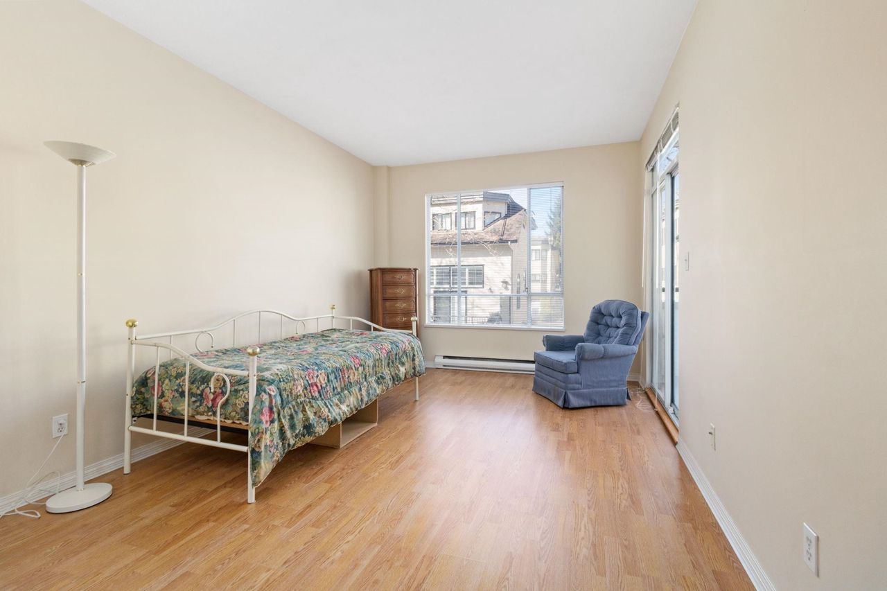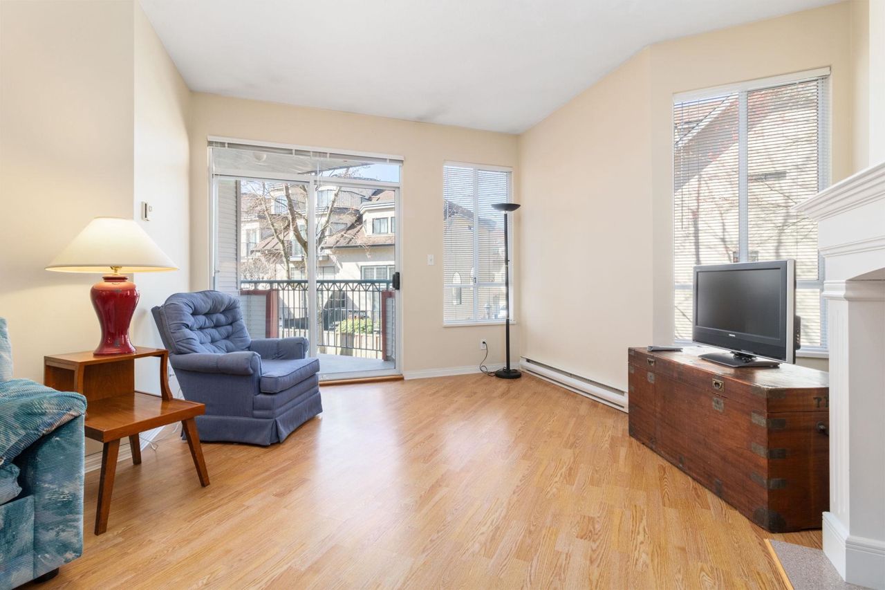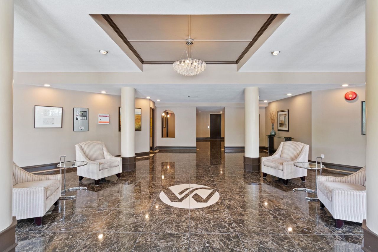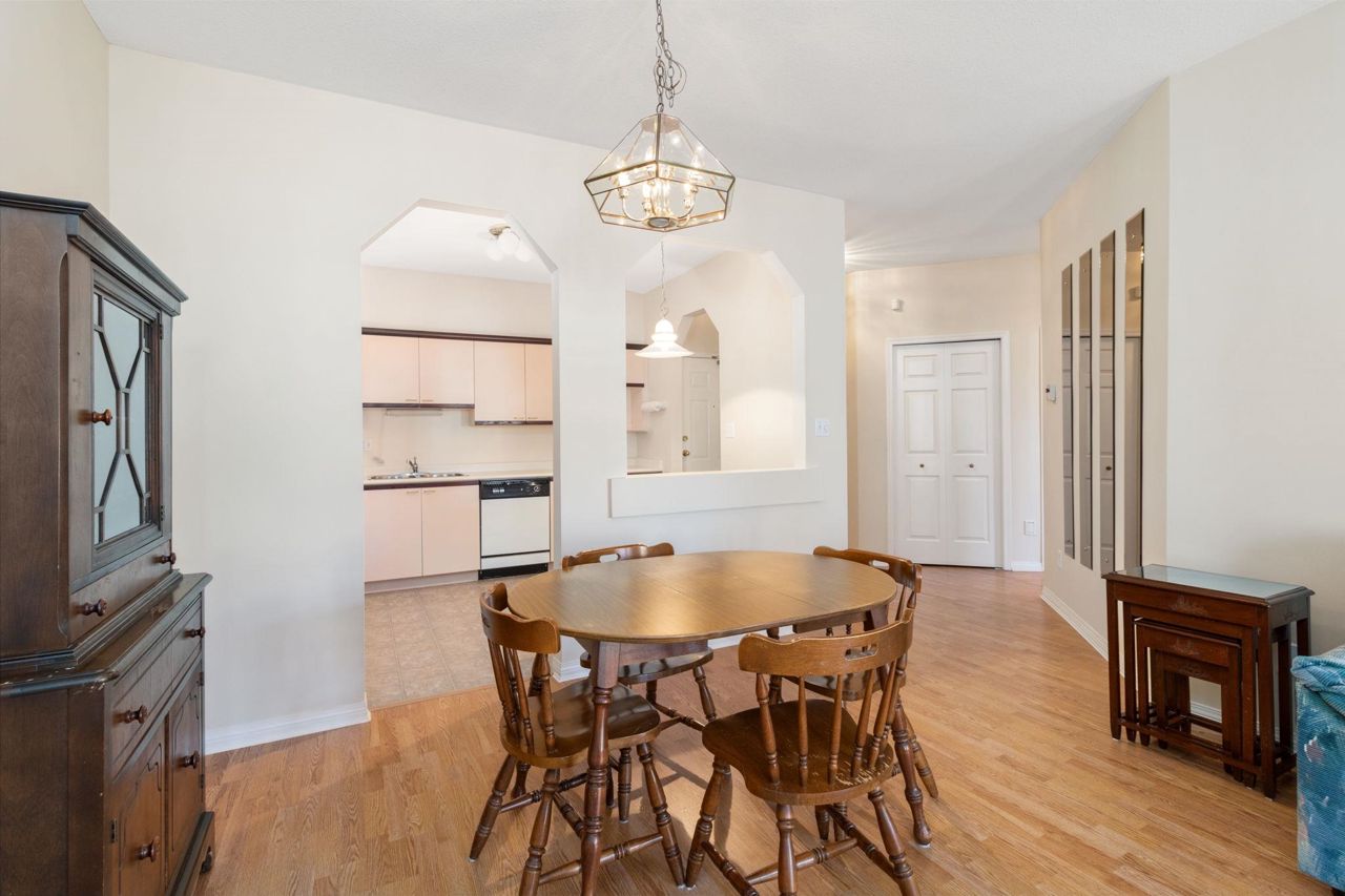 Beautiful home in WINDGATE ROYAL! two bedrooms/two baths (above the ground!), offering approx. 1180 sq. ft. of bright and spacious living area, huge windows with lots of natural light, 9 foot ceilings throughout. Both living room and master bedroom doors lead to a private and serene west facing balcony facing mature trees. Spacious kitchen with its own eating area and ample kitchen cabinets. Beautifully updated with laminate flooring throughout, warm neutral paint, blinds, newer flooring in kitchen, bathrooms and hallway. It comes with gas fireplace, in-suite laundry, 1 secured parking and a locker. Only steps to shops, all levels of schools and transit. Choice building in prime location! Come and visit Open House on Sat, 2-4 pm.