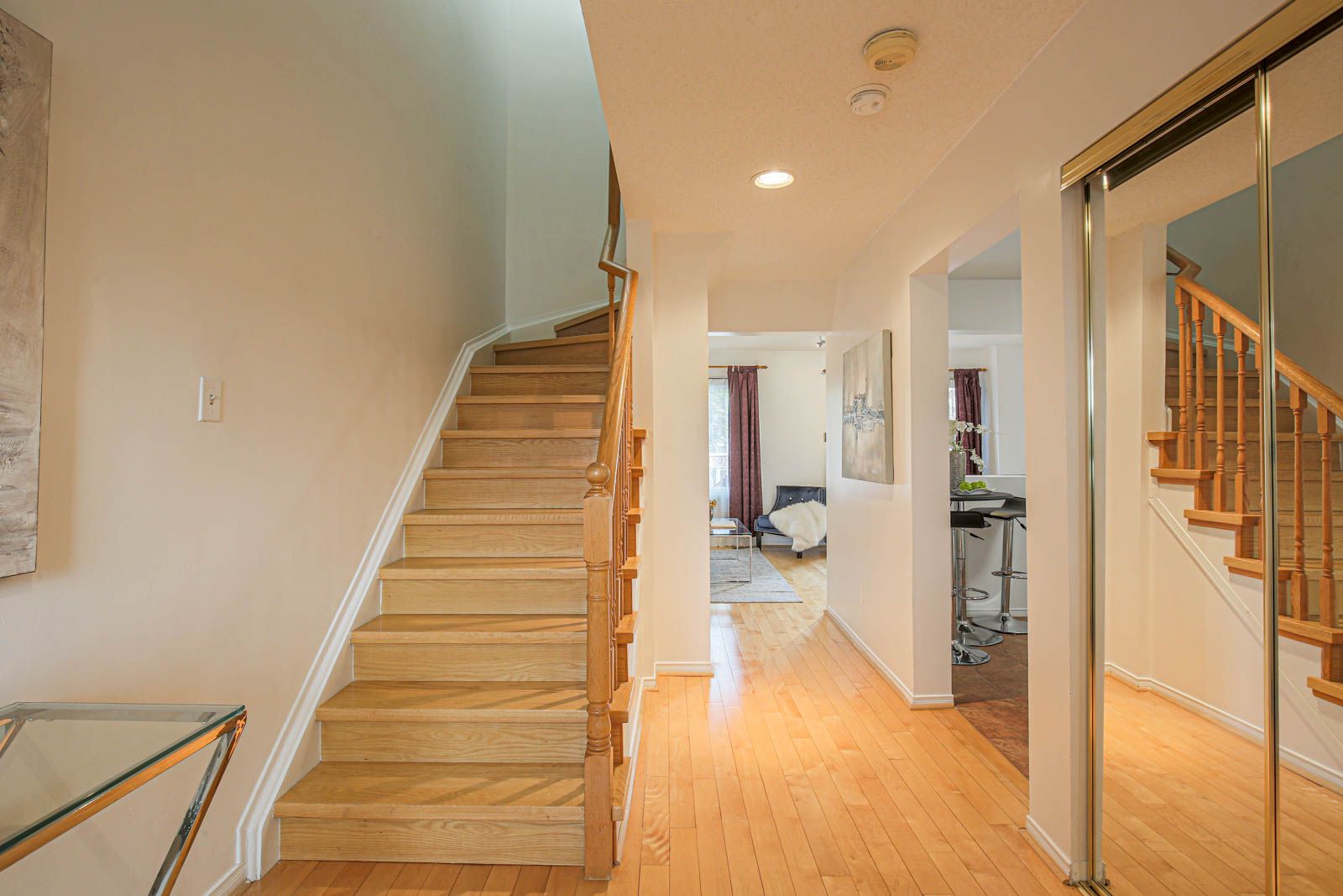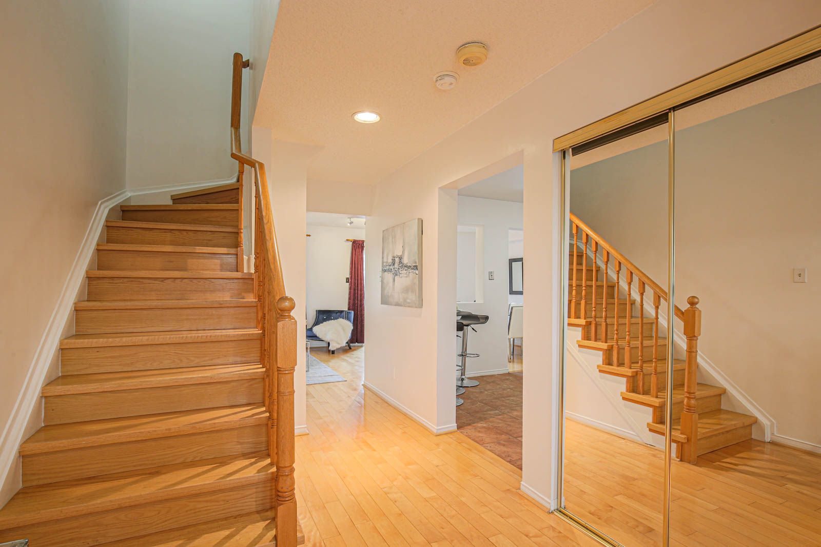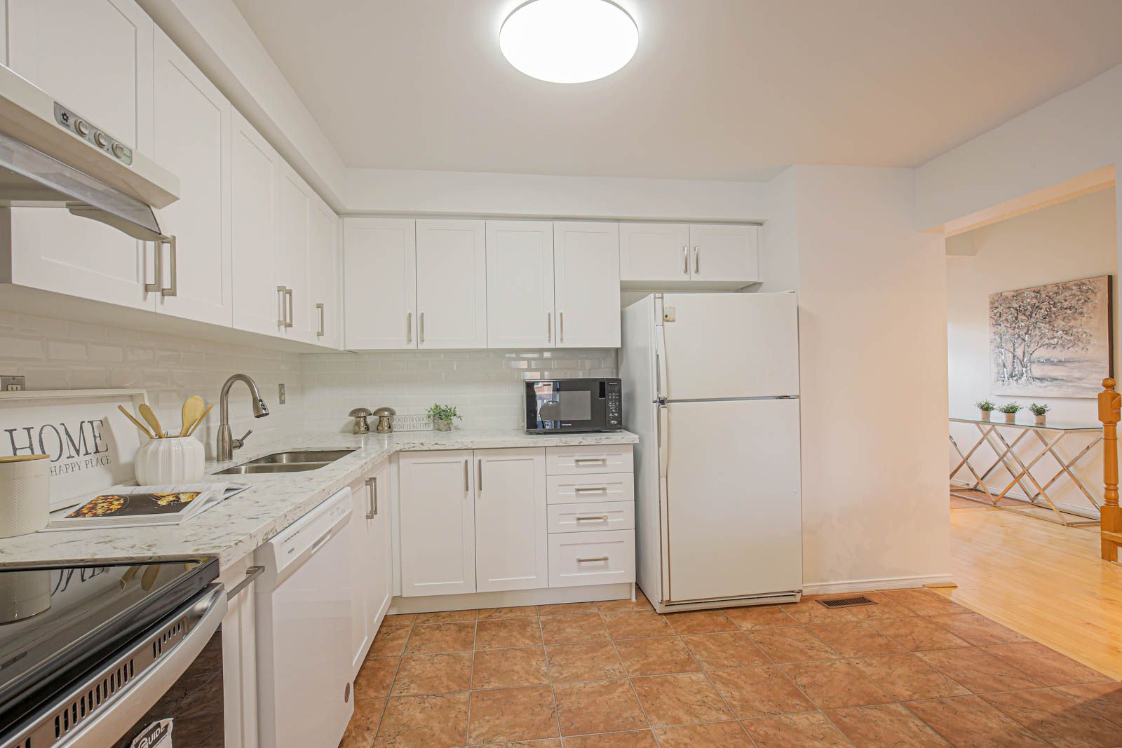 Lovely freehold townhouse overlooking ravine and trail in sought after neighborhood. New kitchen. Hardwood floor throughout. Bright and practical layout. South facing backyard. Steps to park and trail. Close to Hwy 404, Costco and Go Train station.Recent upgrades: second floor hardwood floor (2015), driveway (2019), A/C (2021), Kitchen (2023).