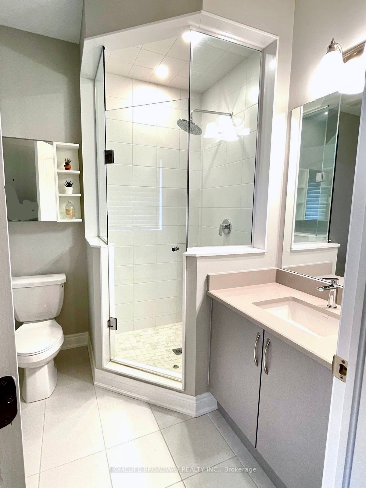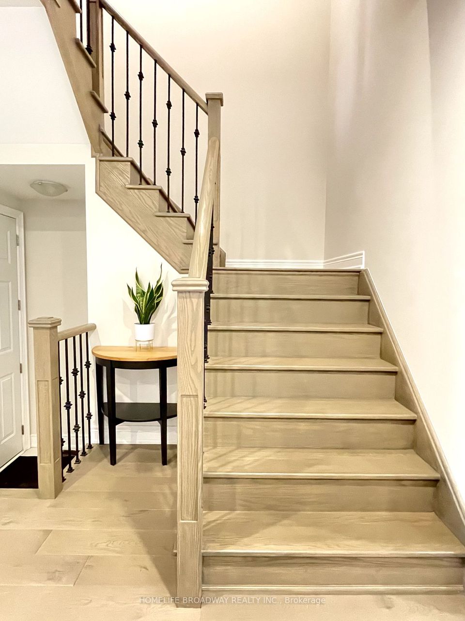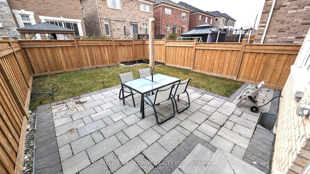 4 years new semi-detached, No carpet throughout. 1851 sq ft per building's plan. Double door main door w/glass insert, interlock front and backyard, 9'smooth ceiling main & 2nd floor, pot lights dining & great room, 4 spacious bedrooms, 2/f laundry room. Master bedroom with w/i closet and raised tray ceiling, direct access from garage, basement w/3 pcs rough-in and cold room.Stone counter in kitchen and master bedroom washroom. Main door glass insert. 9' smooth ceiling main & 2nd floor. Basement w/3 pcs rough-in.