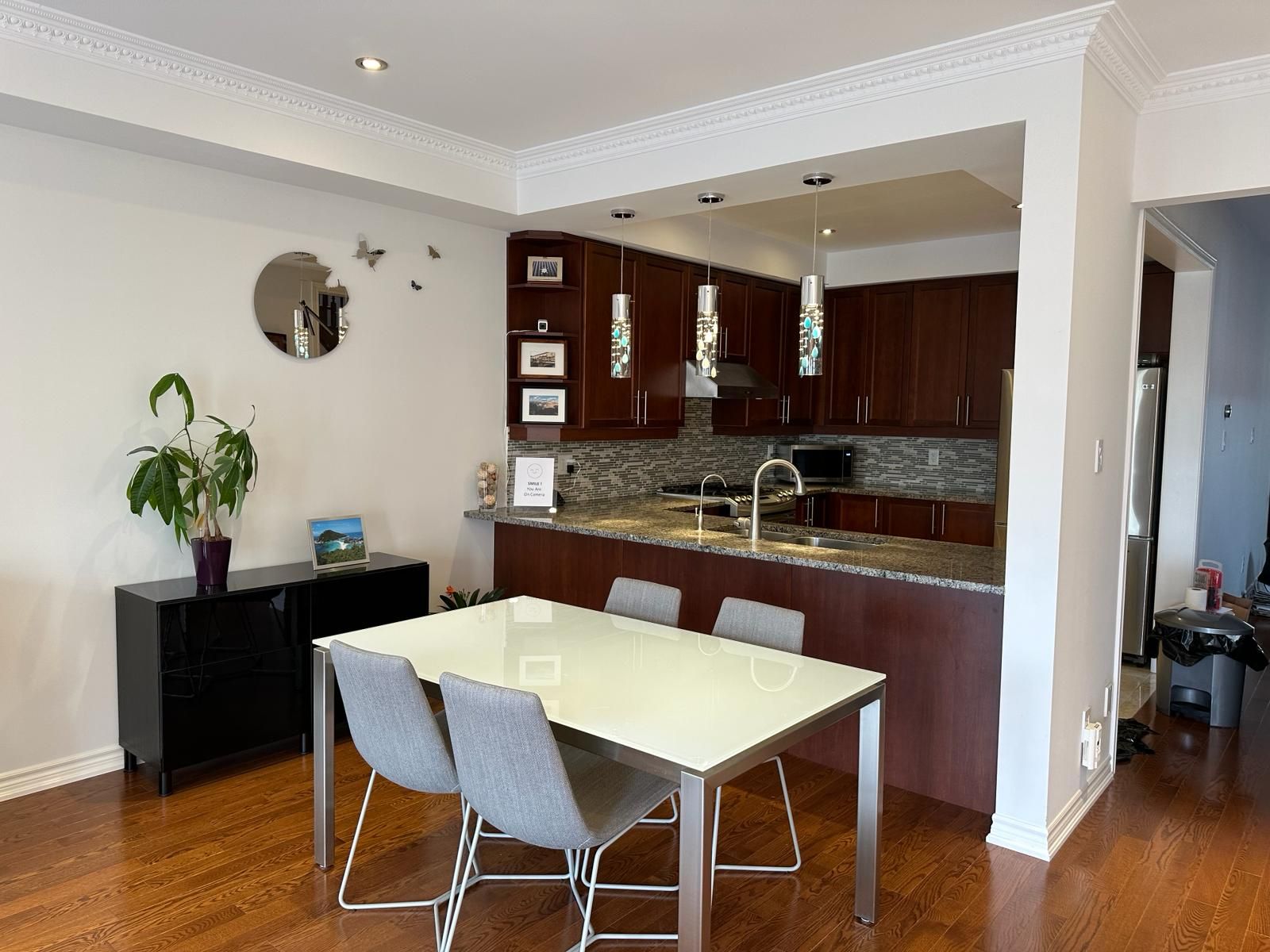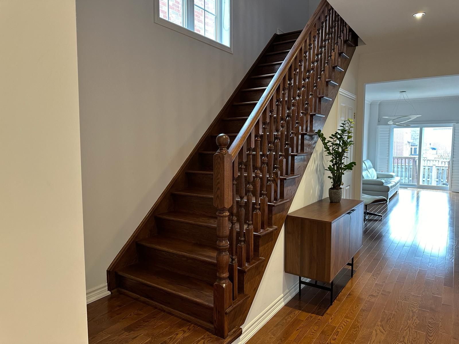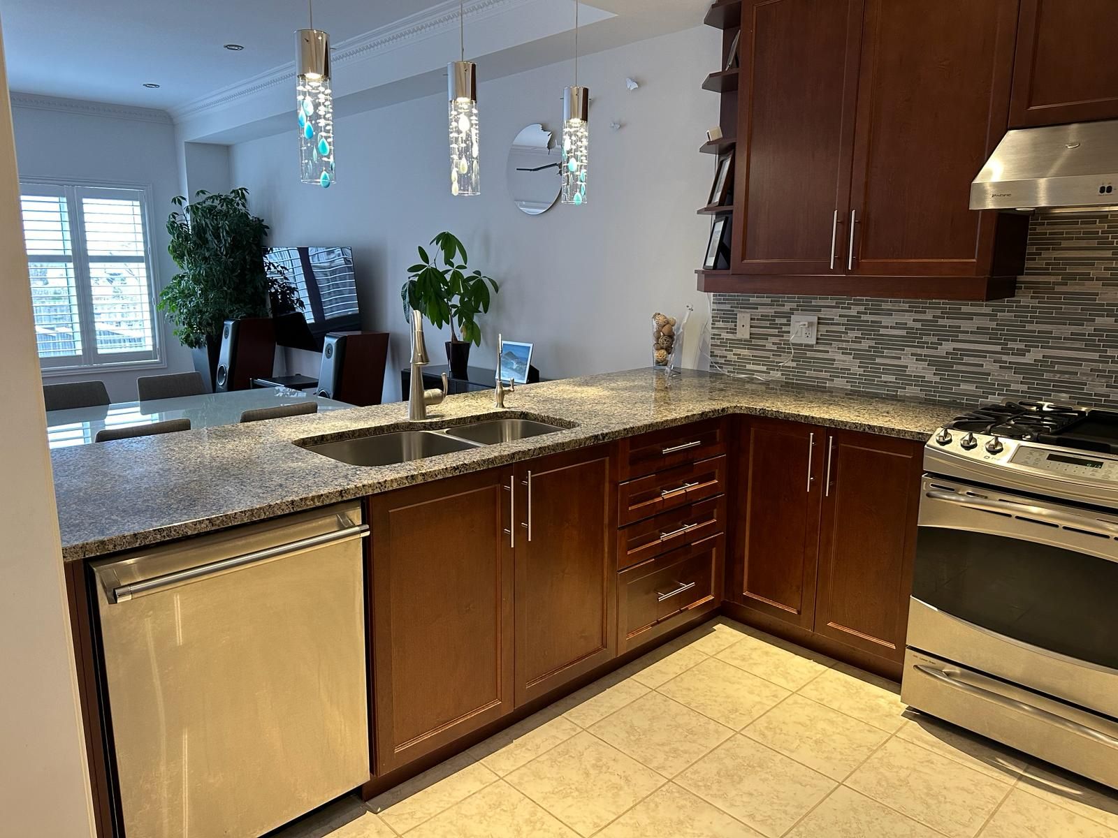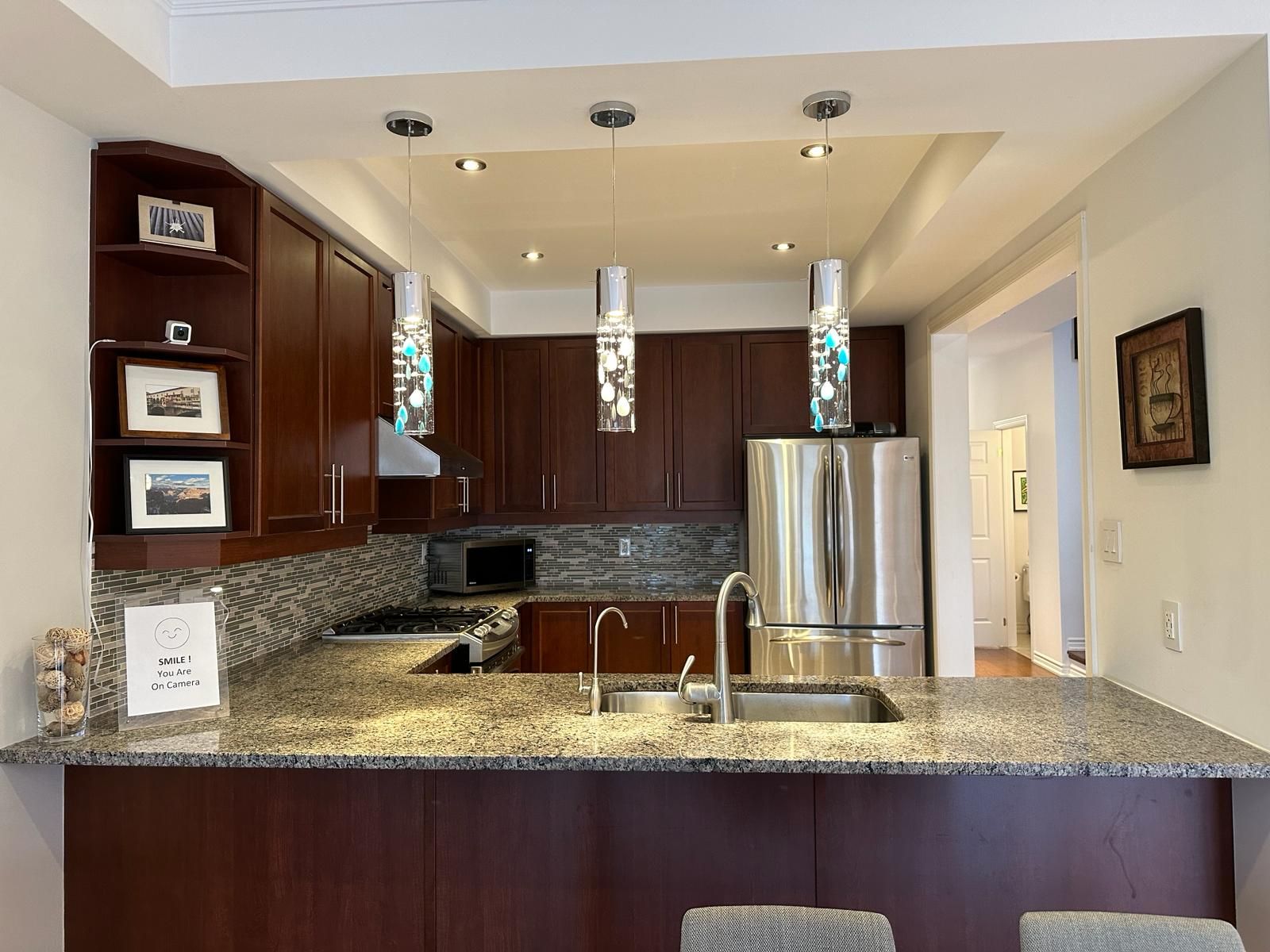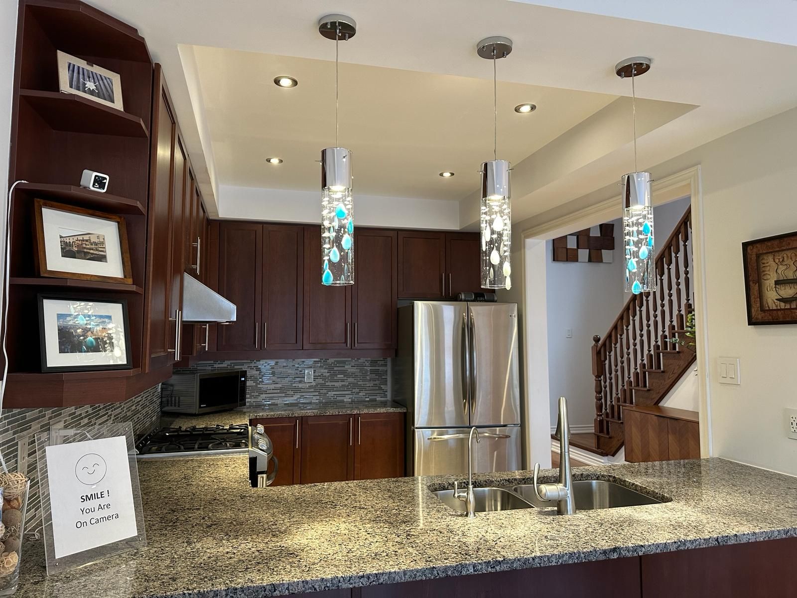 Nestled in a serene neighborhood, this end unit townhouse offers an extraordinary blend of comfort, convenience, and captivating views, setting for relaxation and entertainment. The separate walk-up basement entrance opens up exciting income opportunity, whether you choose to rent it out, create an in-law suite, or use it as a home office, this additional space adds value & flexibility, park two cars in the interlock driveway, and with interlock paving stones, gain space for an extra two cars. 5 mins from Hwy 404 ensures a seamless commute, nearby Costco, Home Depot & Healthy Planet meet your shopping needs. Luxurious granite countertops adorn the kitchen and second-floor bathrooms, while smooth ceilings throughout add modern elegance. The master bedroom boasts an upgraded double vanity, Solid wood kitchen cabinets offer both functionality and sophistication, strategically placed pot lights throughout, a newer garage door (2020), and shingles (2017) complete the package.Upgraded Hardwood flooring on main & 2nd fl, 9' smooth ceiling with cornice mouldings on main fl, smooth ceiling on 2/F, double vanity in Prim Bdr, Kitchen cabinet lightings, California window Shutters, upgraded Toto Toilets, CAC.
