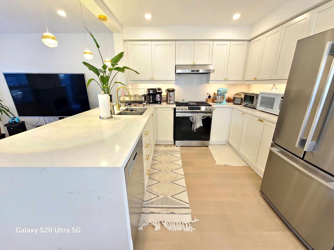 Rare find Freehold Townhouse nested on quiet "COURT" overlooks maple leaf and beautiful view. Everything is in new conditions - Seller spend over 100K high quality materials for renovation. New Floor 4mm top engineer hardwood floors 2. Open concept. Smooth Ceiling not a popcorn styled. Newly painted wall. Newly renovated basement and carpet. Newly SS appliances. Pot lights all throughout the house.