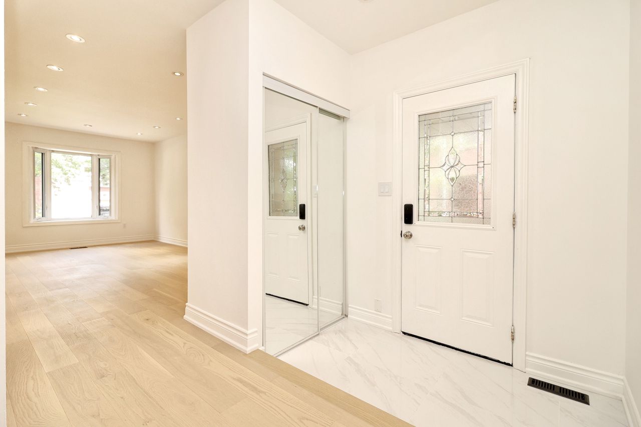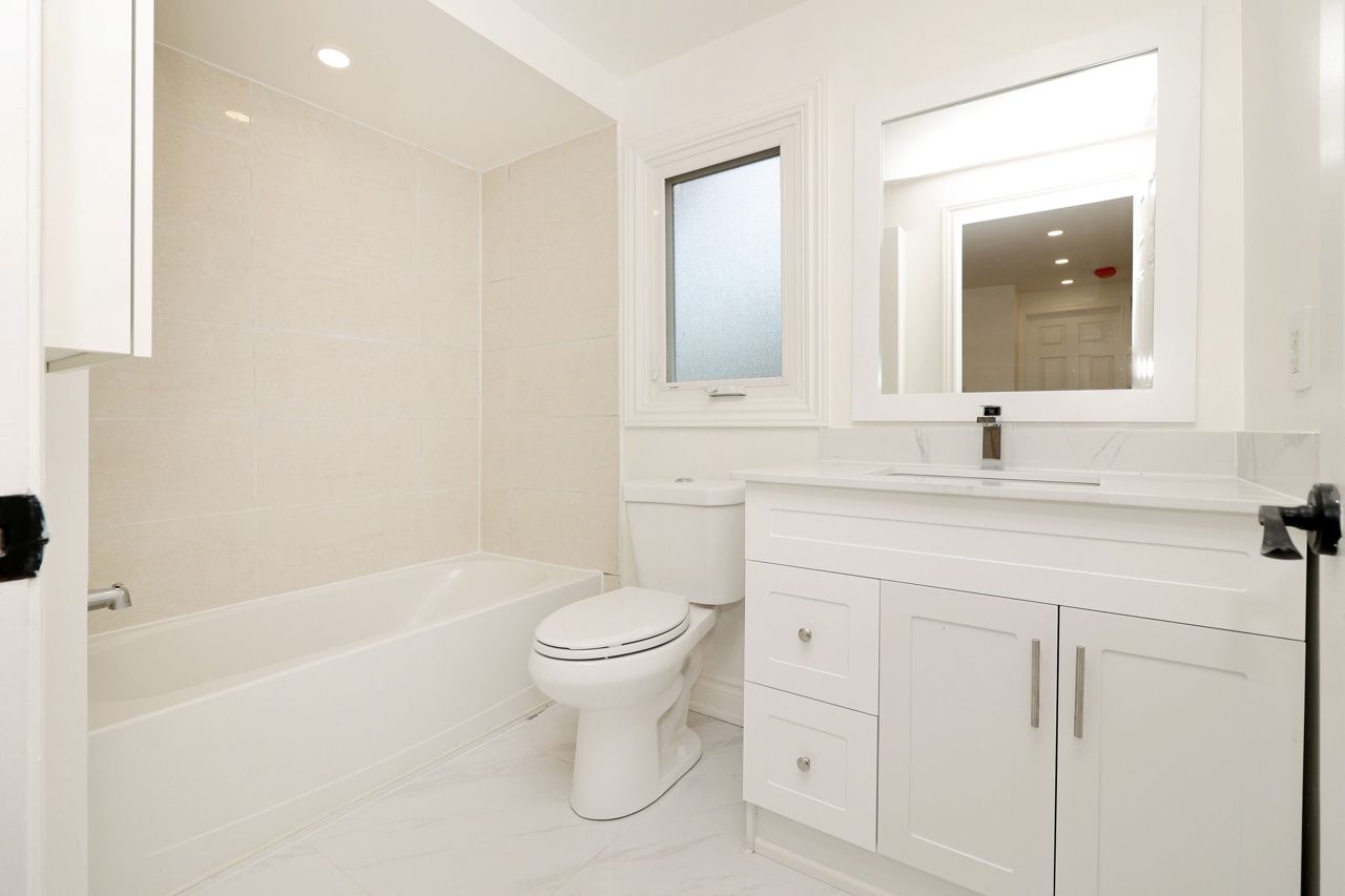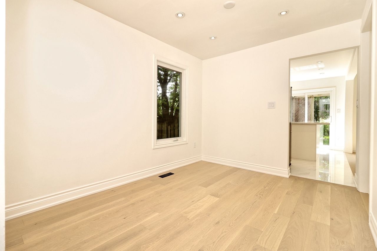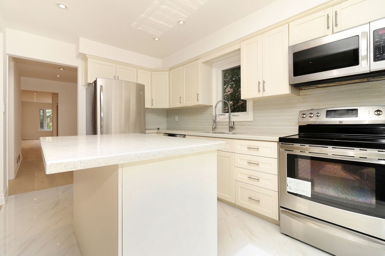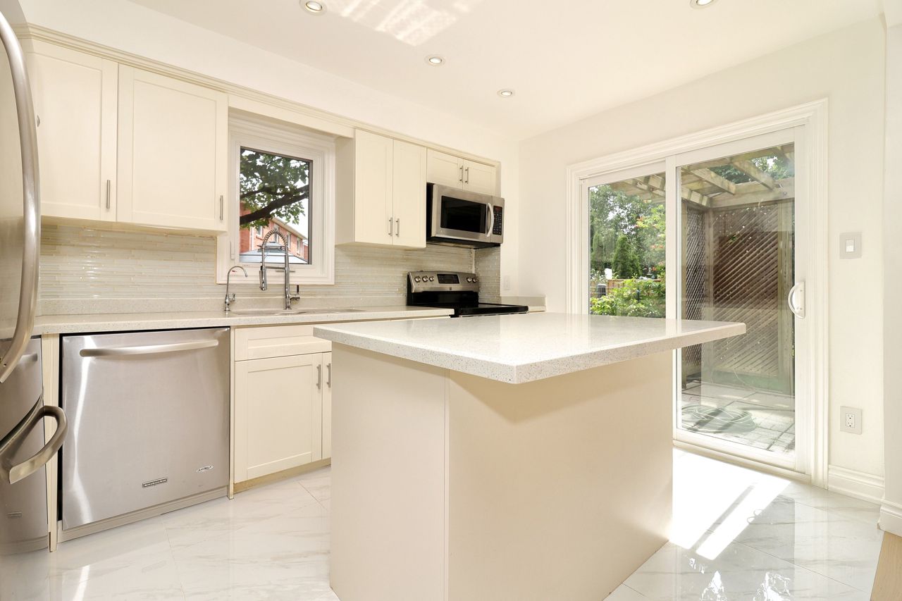 Freehold End Unit Townhouse, Recently Renovated Top To Bottom, New Flooring Throughout All 3 Levels. Engineered Hardwood On First And Second Floors. Open Concept Eat-In Kitchen W/Quartz Countertop. All 4 Washrooms Updated. Generous Sized Rooms w/ Skylight. Private Backyard With Deck And New Grass. Newer Windows(2014). Roof(2017). Walk to Transit, Parks and Shopping.