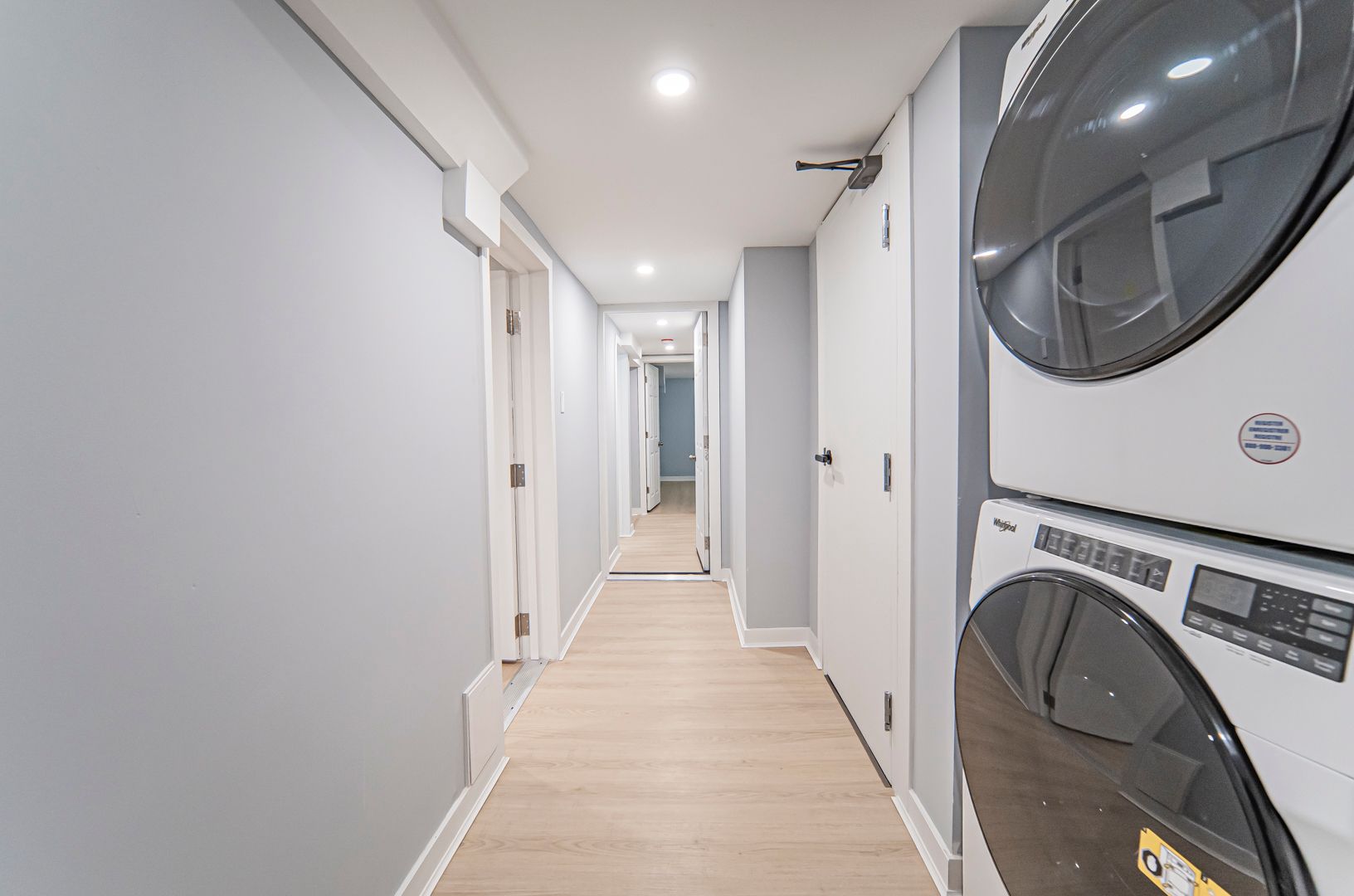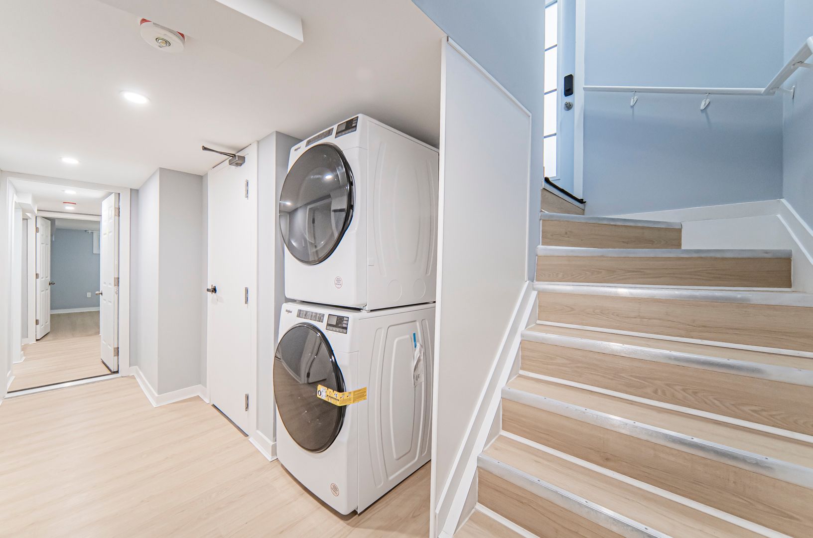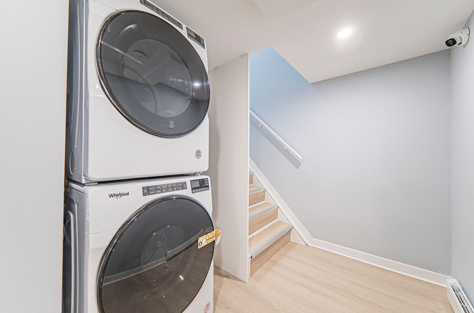 Fully newly renovated 2 bedroom unit. New Flooring And New Washroom, new Kitchen Has new Cabinetry, new windows, door, new water pipeline, Fire rating Type x drywall on ceiling and between units. Stainless Steel Appliances And Stack Washer And Dryer. Great Family Neighbourhood With Schools And Shops Nearby. Tenant Responsible $260 utilities, and over use will be paid accordingly 2nd parking with extra fee subject to availabilityS/S Fridge, S/S Stove,