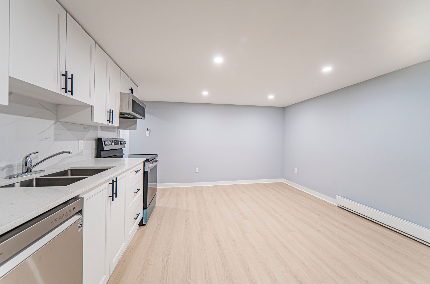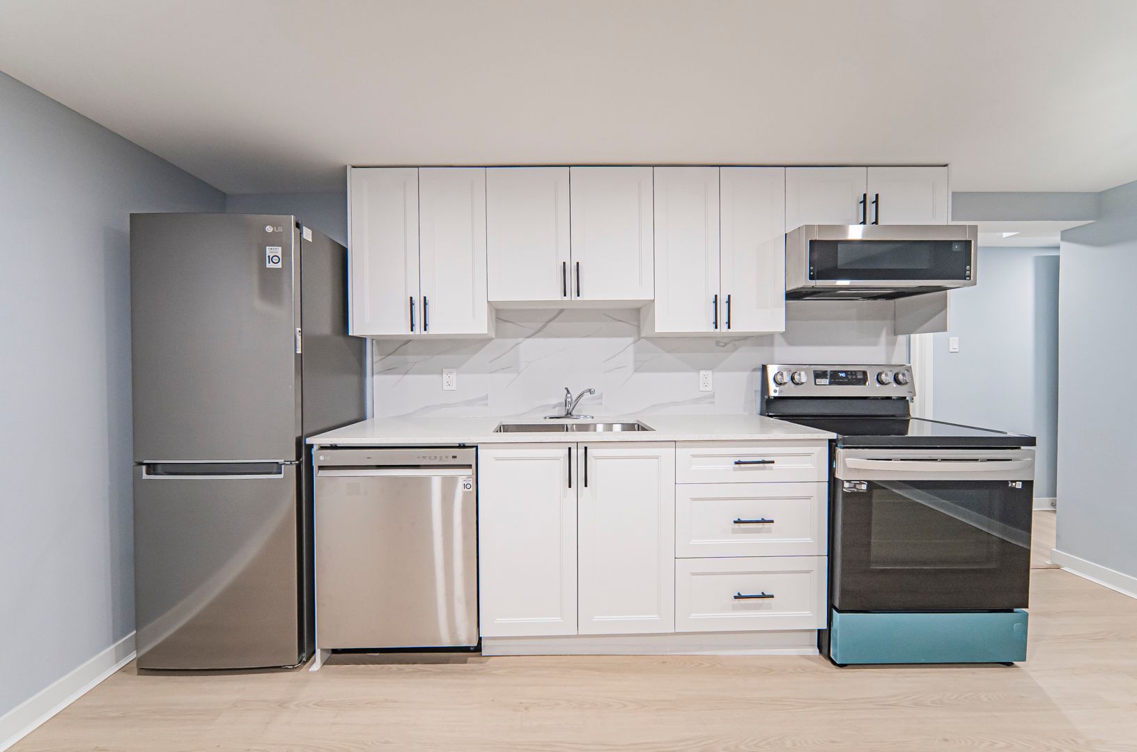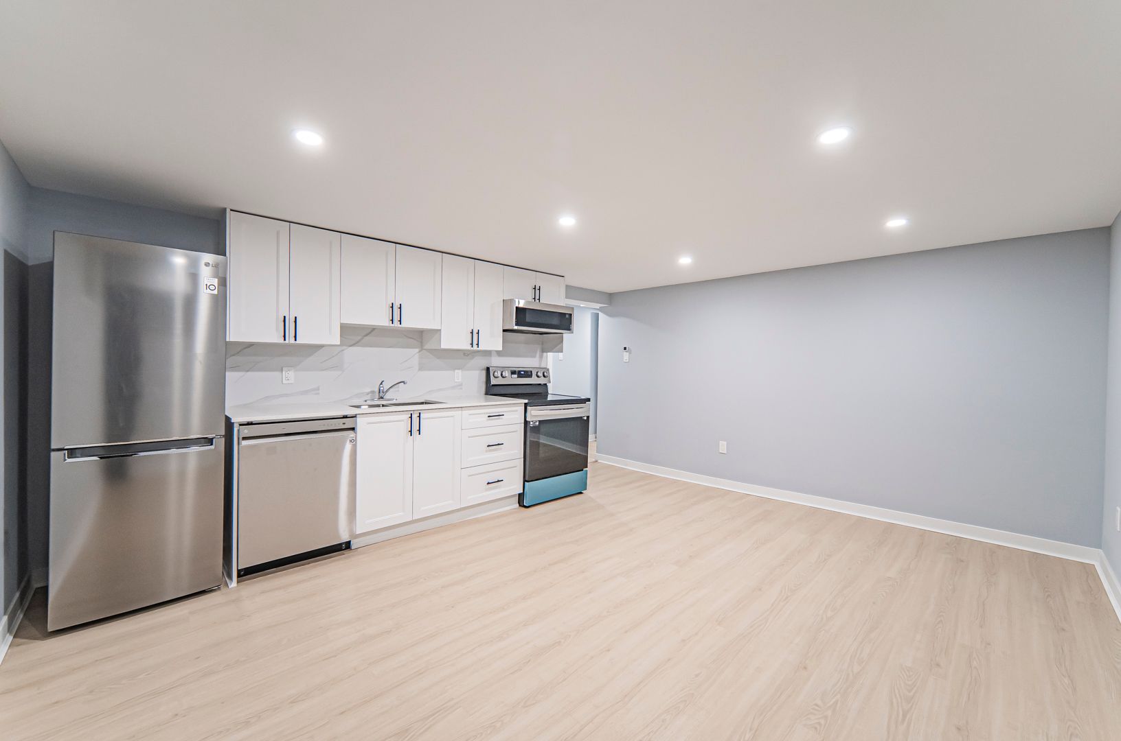 Fully newly renovated 2 bedroom unit. New Flooring And New Washroom, new Kitchen Has new Cabinetry, new windows, door, new water pipeline, Fire rating Type x drywall on ceiling and between units. Stainless Steel Appliances And Stack Washer And Dryer. Great Family Neighbourhood With Schools And Shops Nearby. Tenant Responsible $260 utilities, and over use will be paid accordingly 2nd parking with extra fee subject to availabilityS/S Fridge, S/S Stove,