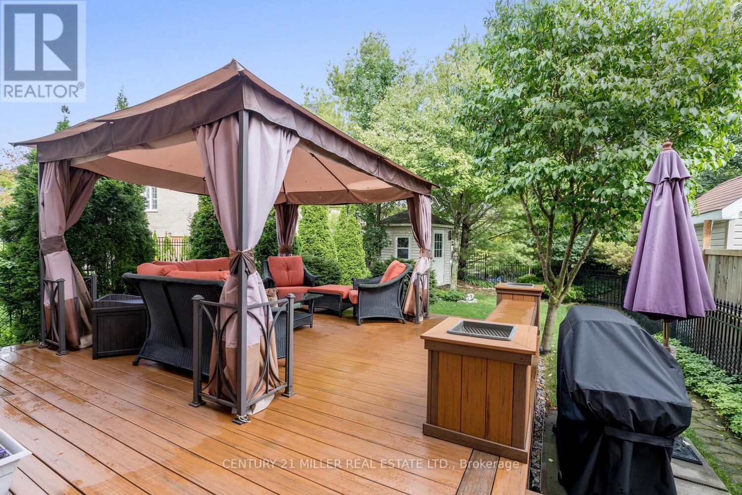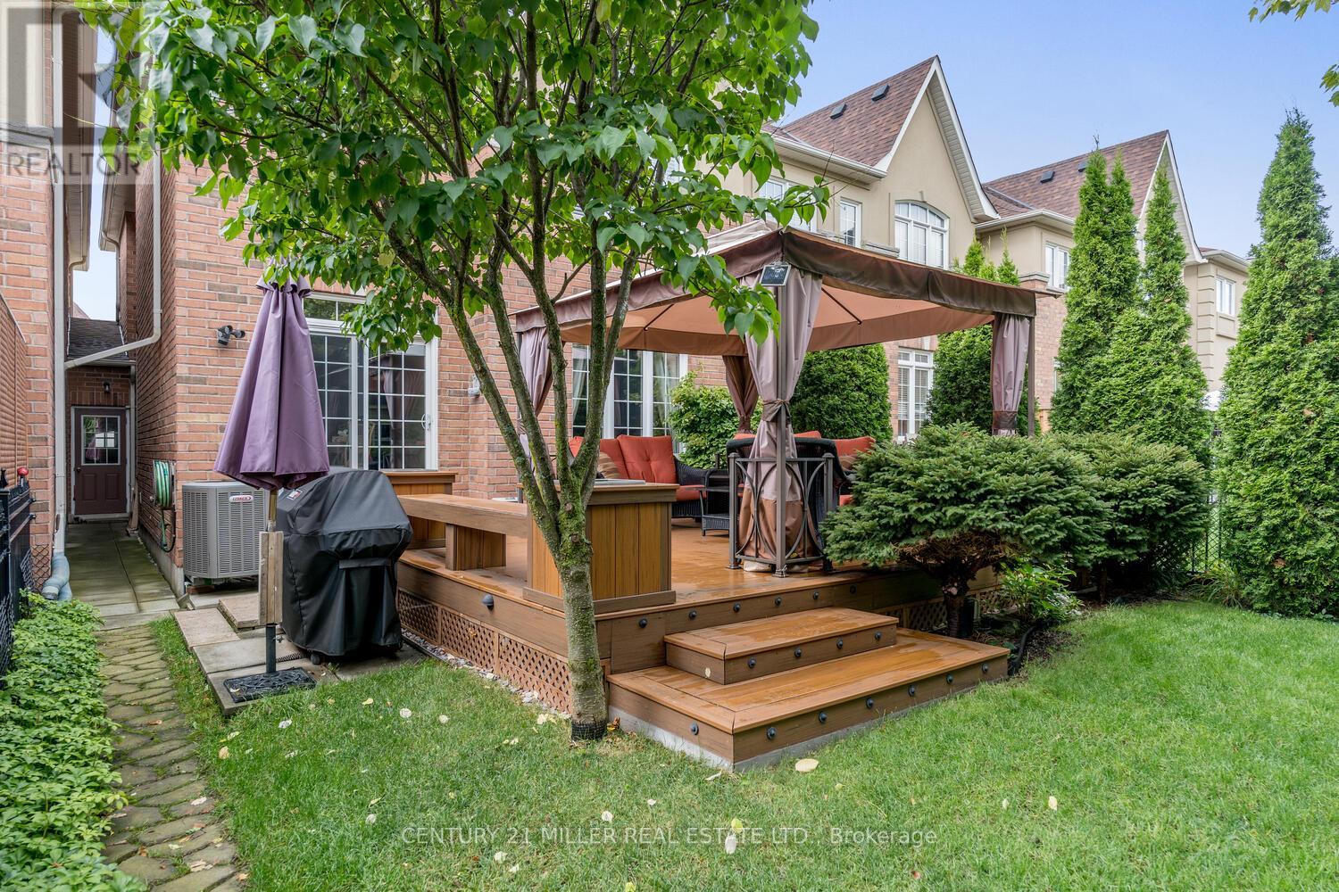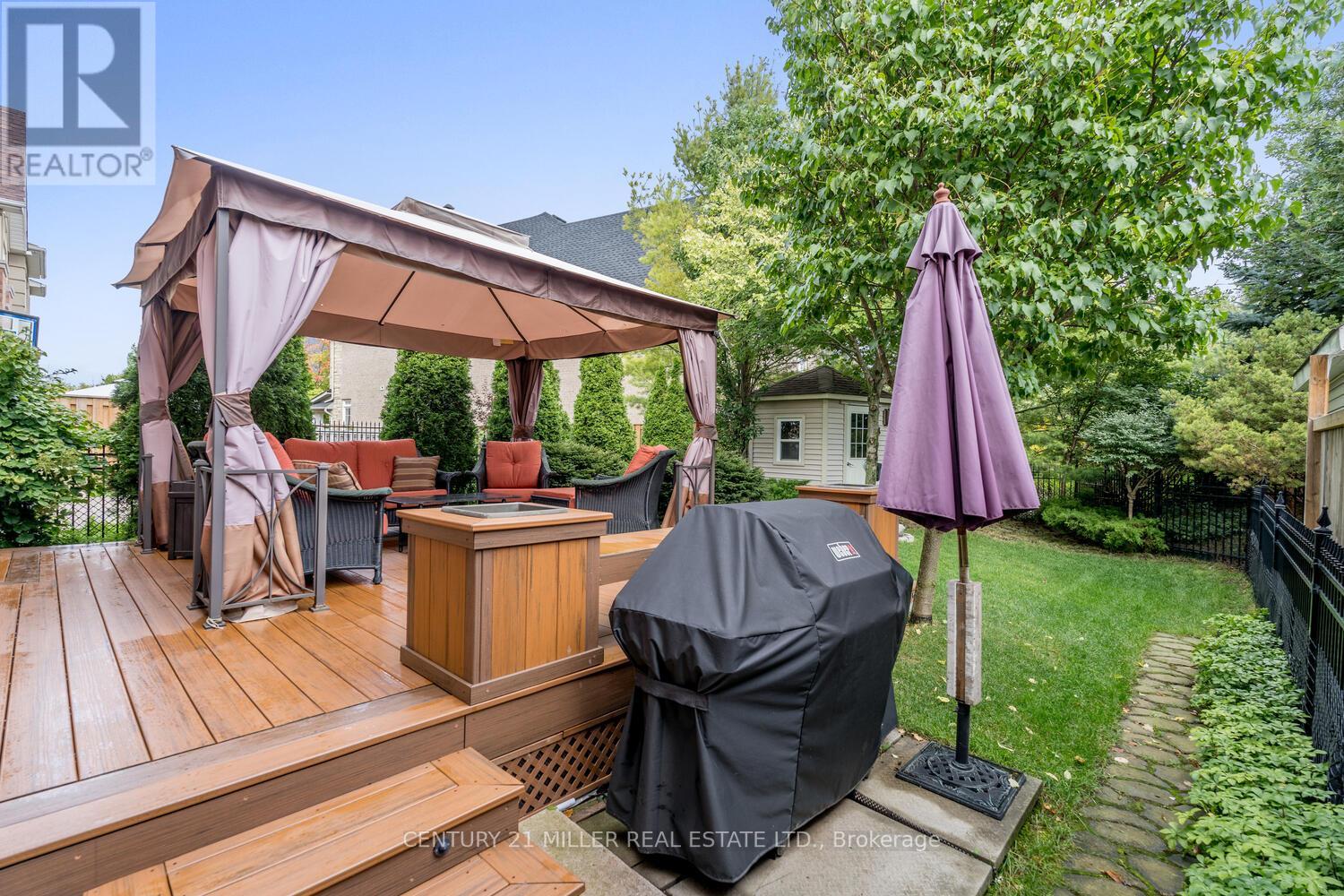 Welcome to Fountain bleu Estates! Beautiful 3-bdrm, 4.5-bath home with 3 full bathrooms on the second level, has been extremely well maintained by the original owners. Enter the double doors into the foyer w/ vaulted ceiling to main level with formal dining rm, family rm, powder rm and large eat-in kitchen w/ granite counters, & 9' ceilings. The meticulous backyard features large composite deck w/ Built-in seating, planters, lighting, gazebo, shed, perennial gardens with water feature and beautiful trees giving privacy. The upper level has 3 large bedrooms with the primary bedroom with a massive walk-in closet & 5-pc ensuite bathroom. The 2nd bedroom features hardwood floors, double closet and an ensuite bathroom, the third bedroom also with hardwood floors and double closet. The fully finished lower level starts with a landing area perfect for a home office. You'll also find a 3-pc bath with heated floor, walk-in closet, den & rec room that could double as an in-law suite.**** EXTRAS **** The double driveway & 2 car garage allow for up to 4 vehicles and has access to the backyard. Located 5 mins from Bloomington GO, Hwy 404, less than 15 min drive to 10 golf courses and close to Lake Wilcox trails & parks. (id:22211)