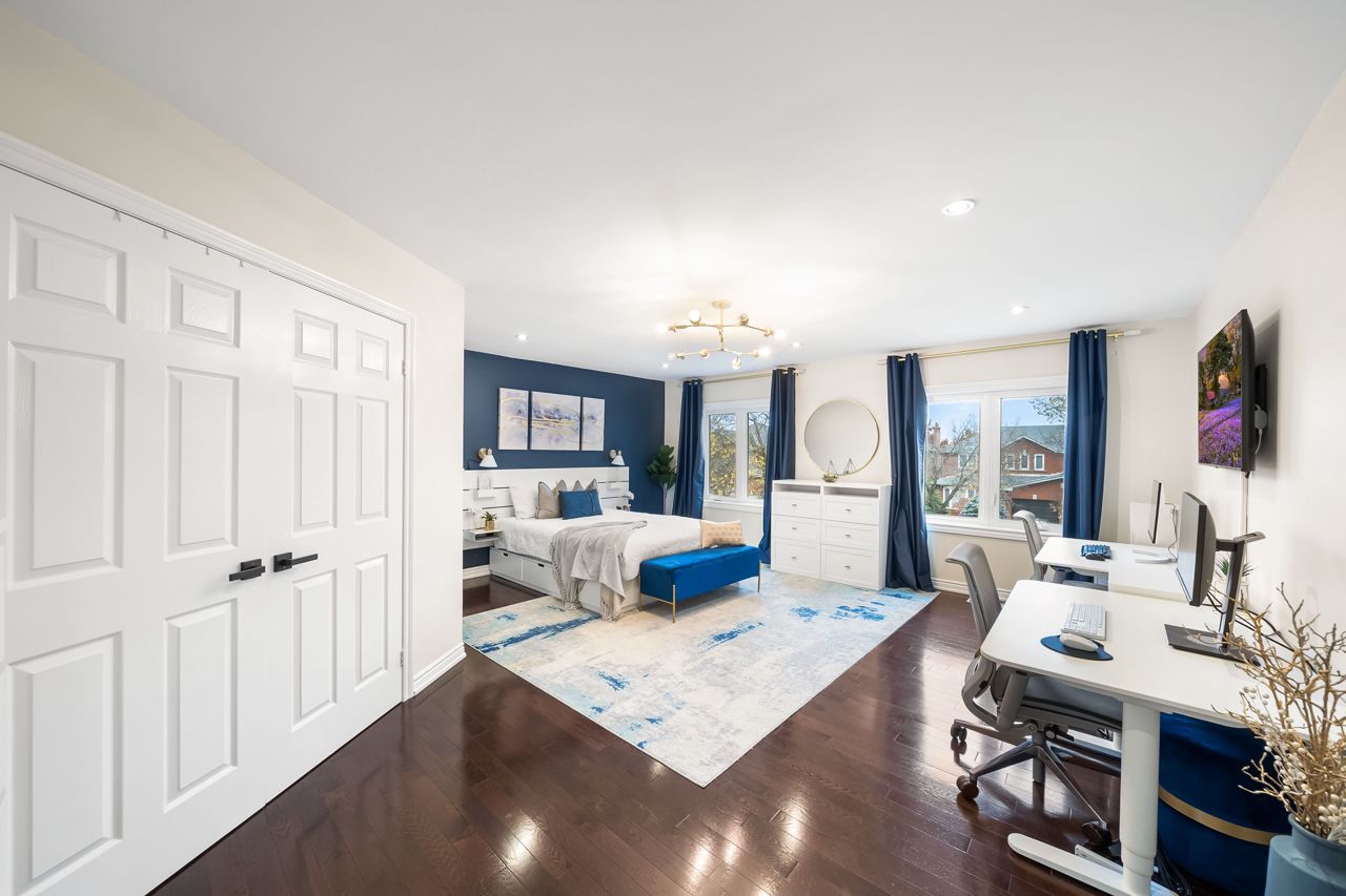 A True Definition of Elegance & Style. Welcome to a Stunningly Fully Renovated Home W Over 4500 SQFT ABOVE GROUND Plus a Pro Finished Basement on a Beautiful Tree-Lined Street. Step Tru Grand Entrance, you'll Immediately Notice Meticulous Attention to Details that Defines This Timeless Beauty. Its Contemporary Architectural Design is Enhanced by Sophisticated Choice of Materials & Finishes. The Centre of the House Features an Elegant Circular Staircase That Seamlessly Connects The Principal Rooms, Facilitating a Harmonious Flow Tru the Home. Every Principal Room Boasts a Grand Scale and an Abundance of Natural Light Streaming in Through Large Windows. Open Concept Living & Dining Room, Massive Chef Inspired Kit W an Island & Breakfast Area, Cozy Family Room Adored W Wet Bar & Fireplace.Large Office On Main Level (Can Be Served as 5th Br), 4 Over-Sized Br on 2nd Floor W Private Ensuite & Tons of Closets. Private Backyard Surrounded W Mature Trees *POOL SIZE LOT* **Top Ranked Schools**Professionally Landscaped, Tons of Pot Lights, Soffit Pot-lights, Large Size Tiles, Modern Kitchen W Granite Countertop, Backsplash, Lavish Powder Rm and En-suites, Newer Windows & Main Door (2020), Crown Mouldings, California Shutters