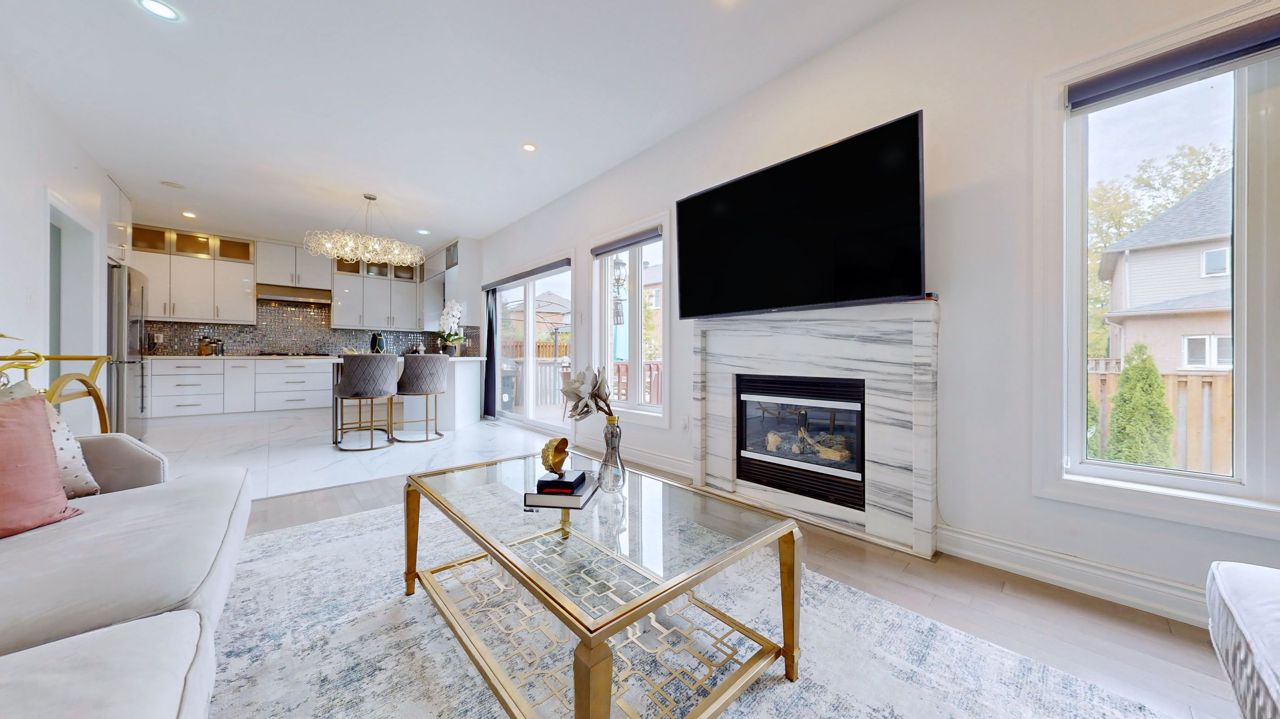 main floor, Led Lighting Through-Out, Quebec Made Hardwood Floors & Gas Fireplace. Finished Basement