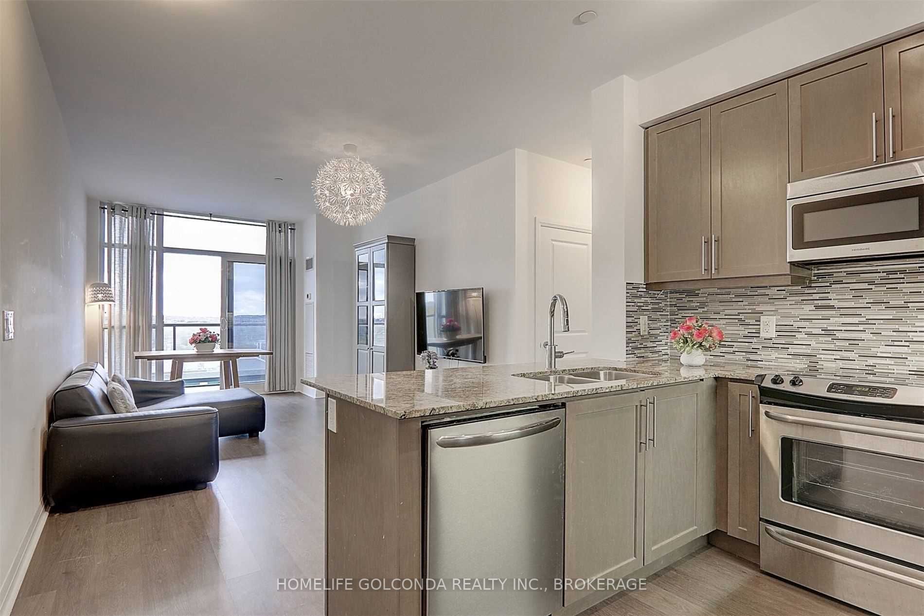 Skycity Condo Located In The Heart Of Richmond Hill. Open Concept 2 Bdrm + Den, 2 Washrooms, Den With Window, 9' Ceilings. 960 Sq.Ft + Balcony. Laminate Floors Thru-Out. Kitchen With Quartz Countertop, S/S Appliances, Backsplash, Walking Distance To Public Transit (Viva, Yrt, Go), Shopping, Schools, Government Offices, Restaurants And Movie Theatre, 24 Hr Concierge, Visitors Parking, Indoor Pool, Exercise Room, Roof Top Deck/Garden & Much MoreStainless Steel Fridge, Stove, B/I Dishwasher, B/I Microwave, Stacked Washer & Dryer, All Light Fixtures, All Window Coverings, One Parking & One Locker