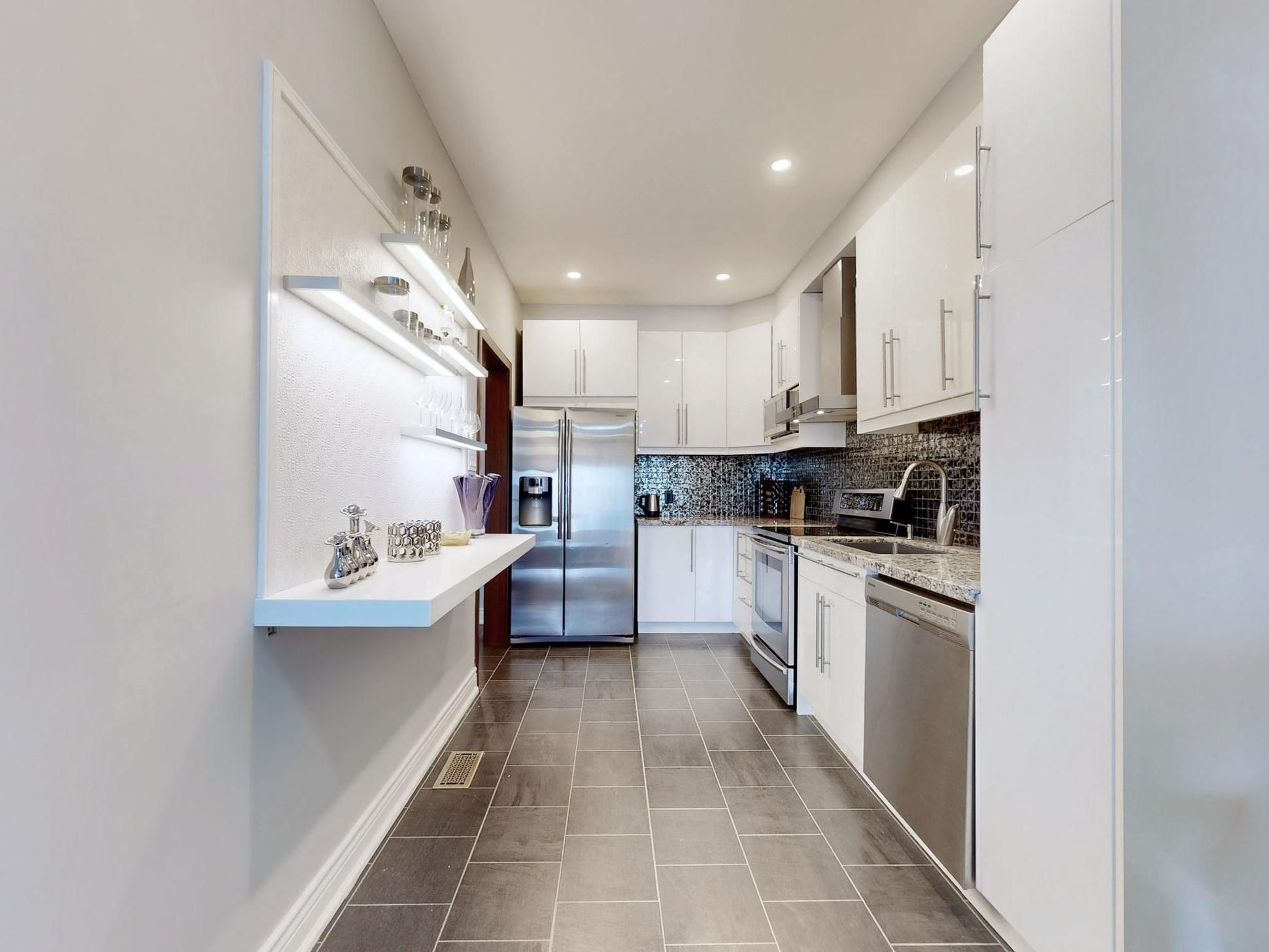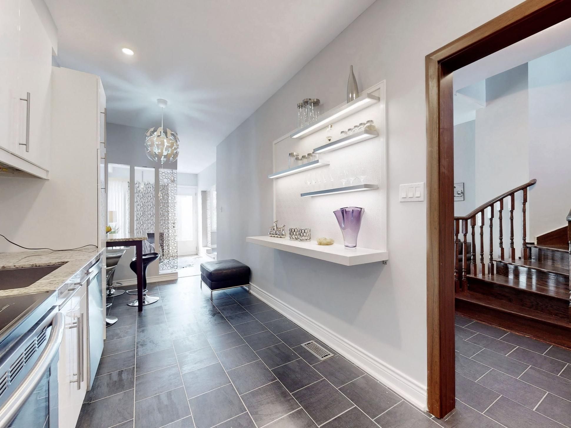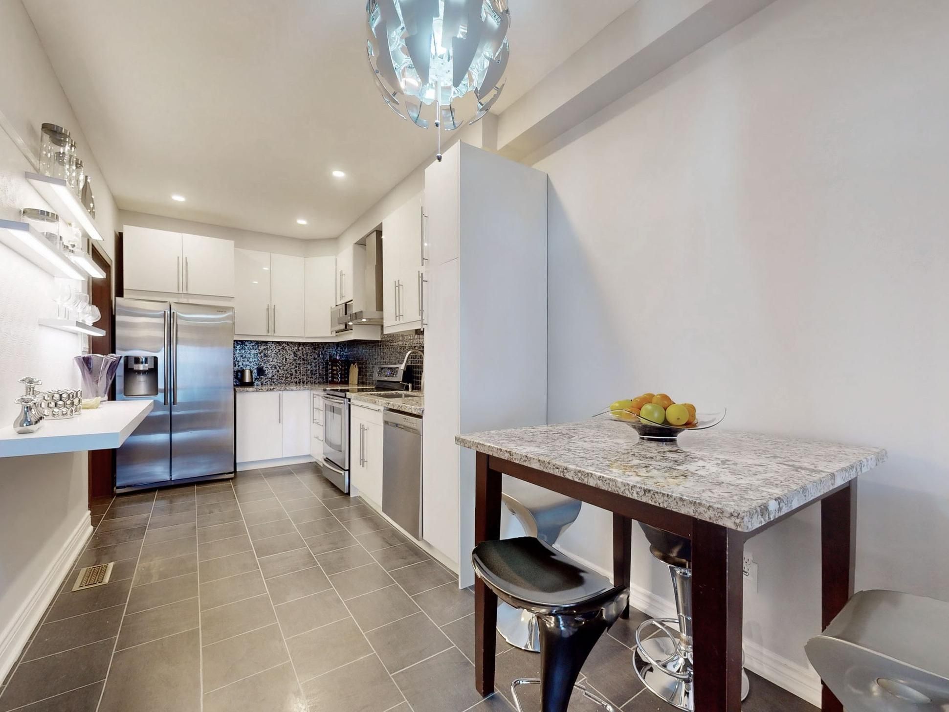 Rare find gem. One Of Best Layouts and One of the biggest sizes , Freehold Unit In one of the most desirable The Neighborhoods. 3 Bed + finished basement. Fully Renovated !!! Designer lead Project !, Unique touches all over !Pot Lights and Hardwood throughout , Oak Staircase, Smooth Ceiling . Modern kitchen with flat Cabinets, granite Countertops, s/s Appliances.