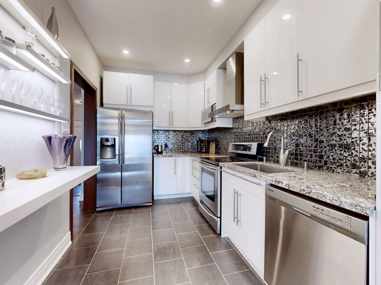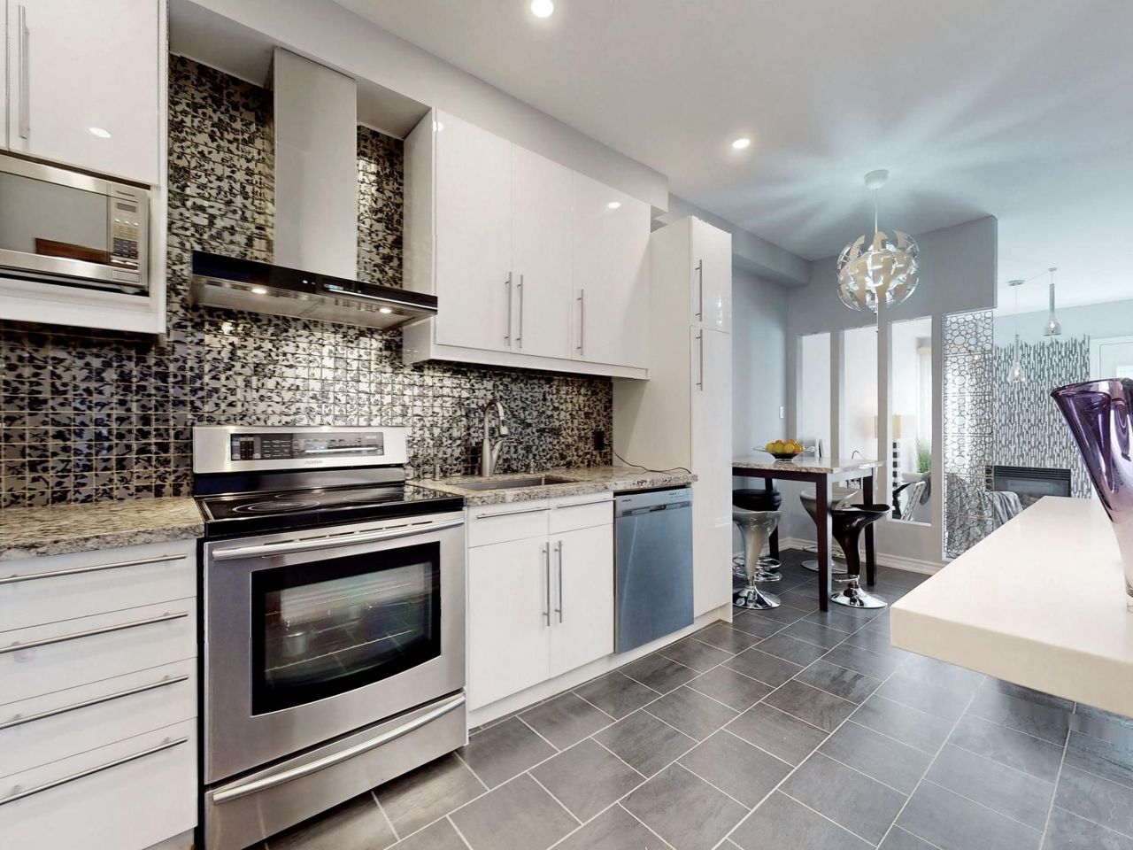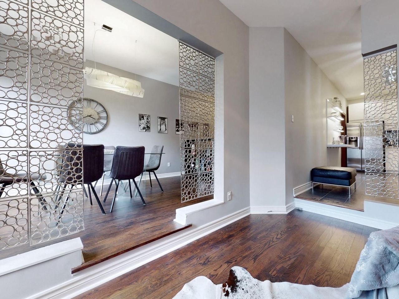 Rare find gem. One Of Best Layouts and One of the biggest sizes , Freehold Unit In one of the most desirable The Neighborhoods. 3 Bed + finished basement. Fully Renovated !!! Designer lead Project !, Unique touches all over !Pot Lights and Hardwood throughout , Oak Staircase, Smooth Ceiling . Modern kitchen with flat Cabinets, granite Countertops, s/s Appliances.