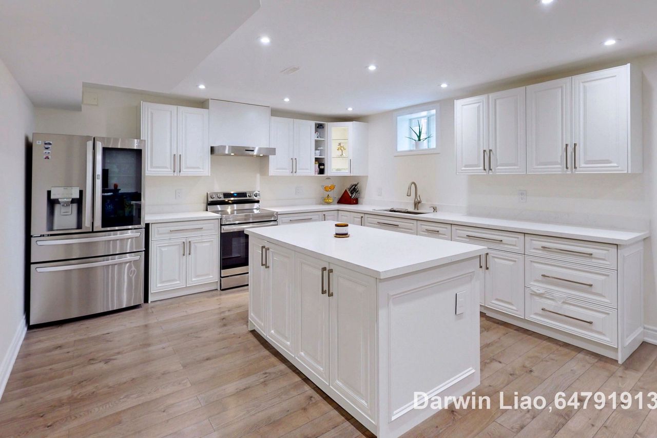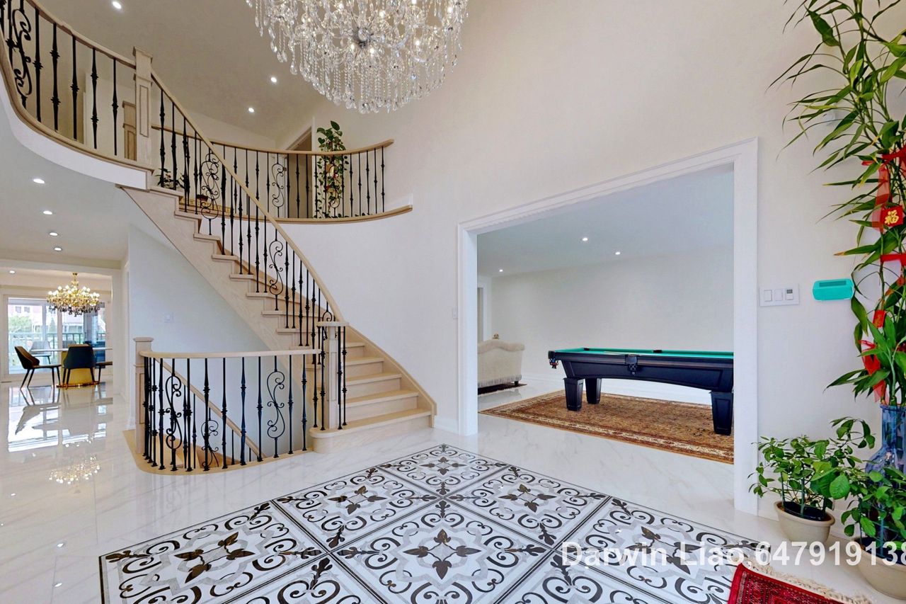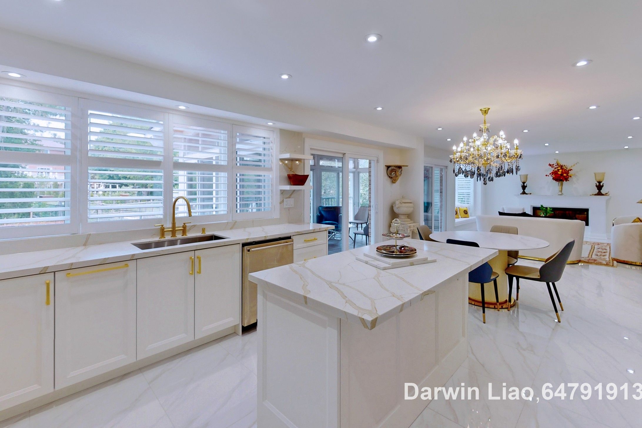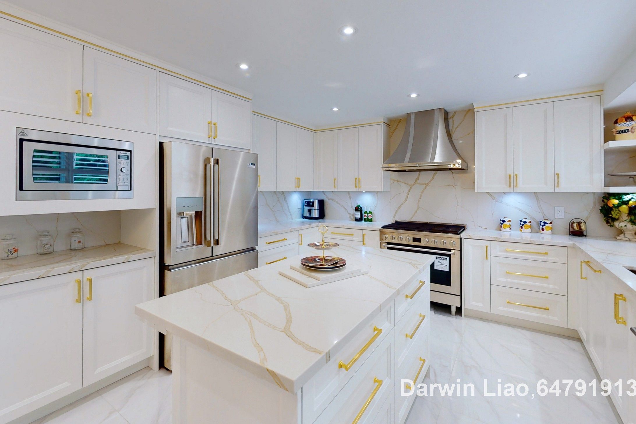 Exquisite 5-bedroom home at prime location, a magnificent living area of 6000 sq ft (incl. basement), a vast front yard with 20 parking spaces, and a gorgeous epoxy finished 3-car garage, newly renovated and ready to move in. Greeted by a magnificent crystal chandelier when entering. All new re-design kitchen features modern luxury cabinets, marble countertops, and brand new high-end appliances. Beautiful hardwood and marble flooring, iron picket stairs, and new triple-pane energy-efficient windows with California shutter. The basement offers a delightful recreational area with one bedroom and bathroom. Newly renovated sunroom with a 200sq ft garden view, providing both energy savings and ample storage space. Conveniently located near a plaza, park, and bus stop. Falls within the boundary of the prestigious St. Theresa of Lisieux and RH High schools. A prime location with excellent potential for future development.All Elfs, All Exist Wdw Covers, All Crystal Lights, New S.S Apls(Cooktop, Fridge, Oven) Dw, & Mw. Cac'16, Hef'18, Hwt'16', Humidifier, Elec Air Cleaner, Roof'21.
