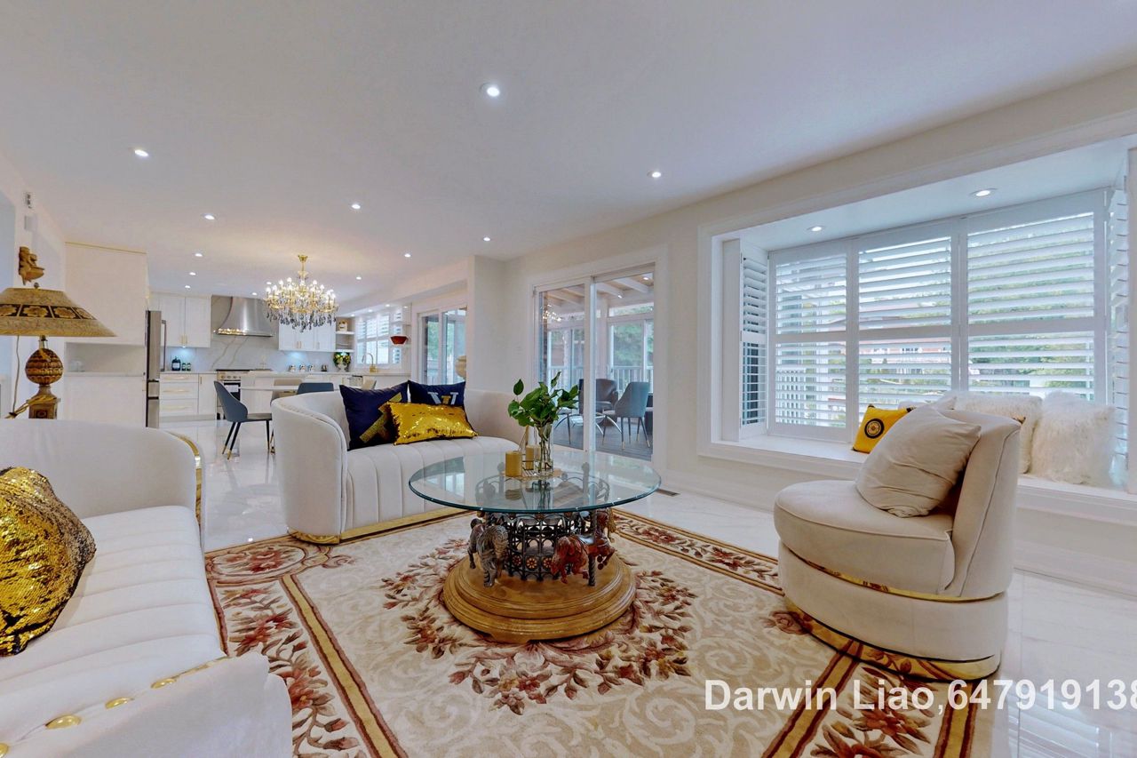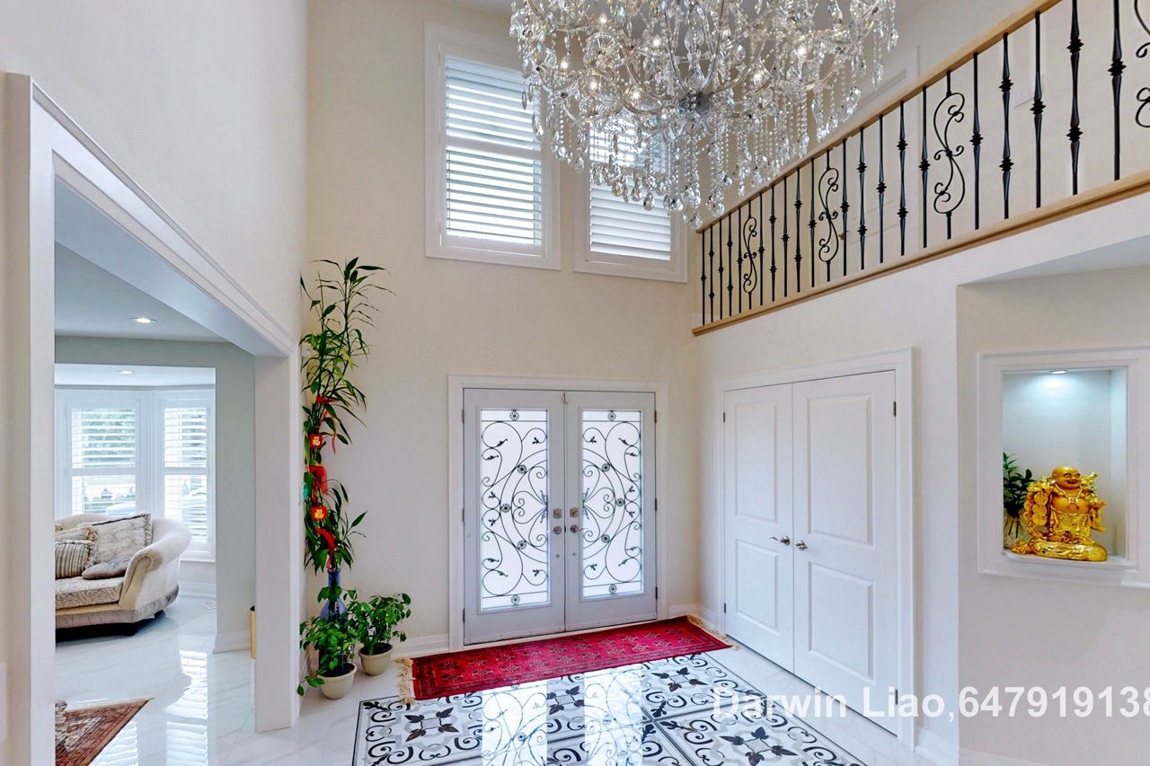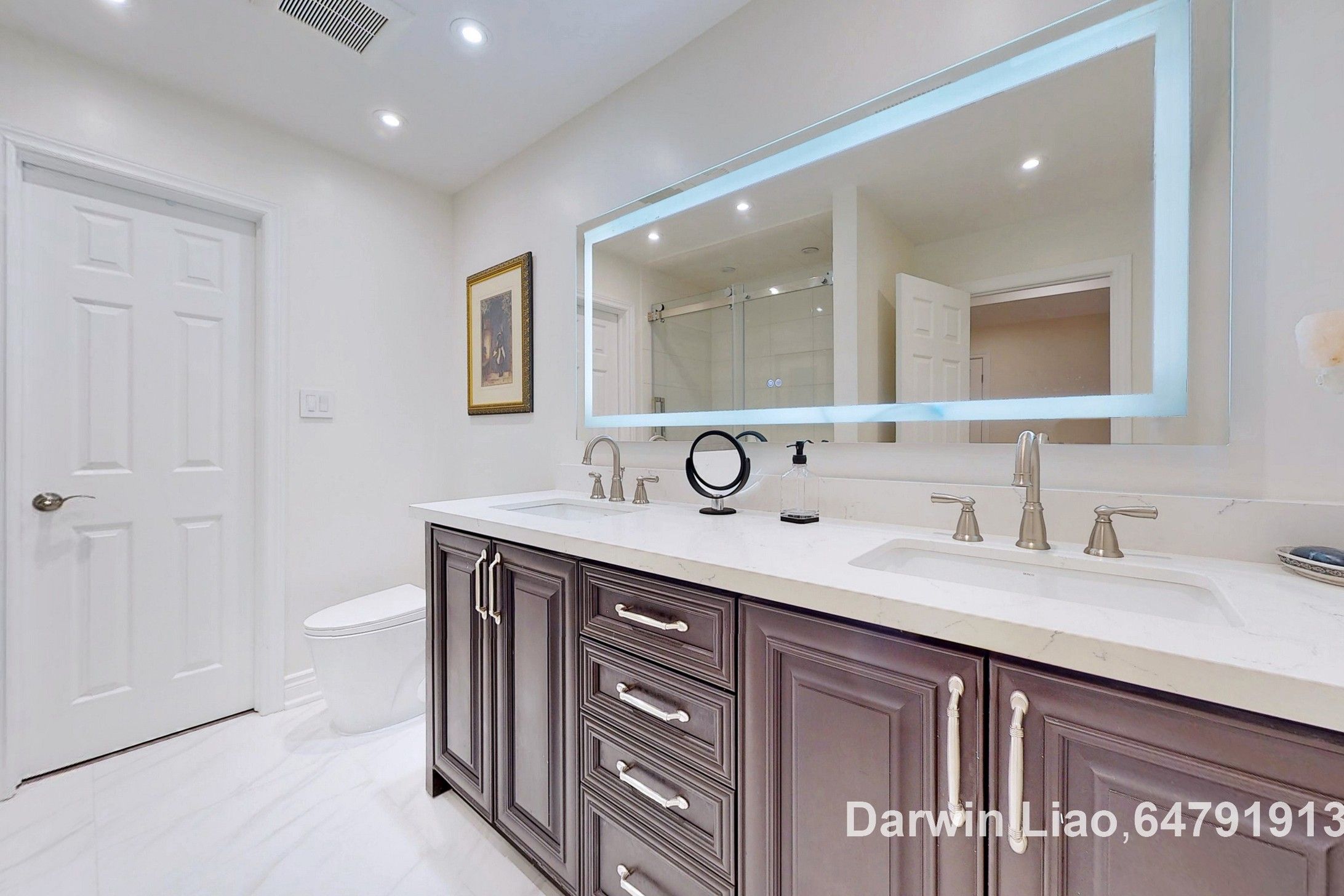 Exquisite 5-bedroom home at prime location, a magnificent living area of 6000 sq ft (incl. basement), a vast front yard with 20 parking spaces, and a gorgeous epoxy finished 3-car garage, newly renovated and ready to move in. Greeted by a magnificent crystal chandelier when entering. All new re-design kitchen features modern luxury cabinets, marble countertops, and brand new high-end appliances. Beautiful hardwood and marble flooring, iron picket stairs, and new triple-pane energy-efficient windows with California shutter. The basement offers a delightful recreational area with one bedroom and bathroom. Newly renovated sunroom with a 200sq ft garden view, providing both energy savings and ample storage space. Conveniently located near a plaza, park, and bus stop. Falls within the boundary of the prestigious St. Theresa of Lisieux and RH High schools. A prime location with excellent potential for future development.All Elfs, All Exist Wdw Covers, All Crystal Lights, New S.S Apls(Cooktop, Fridge, Oven) Dw, & Mw. Cac'16, Hef'18, Hwt'16', Humidifier, Elec Air Cleaner, Roof'21.