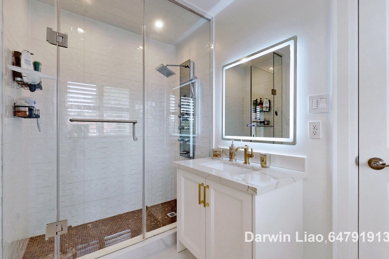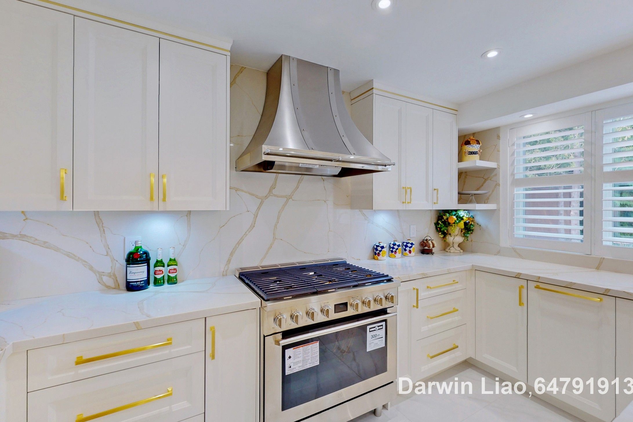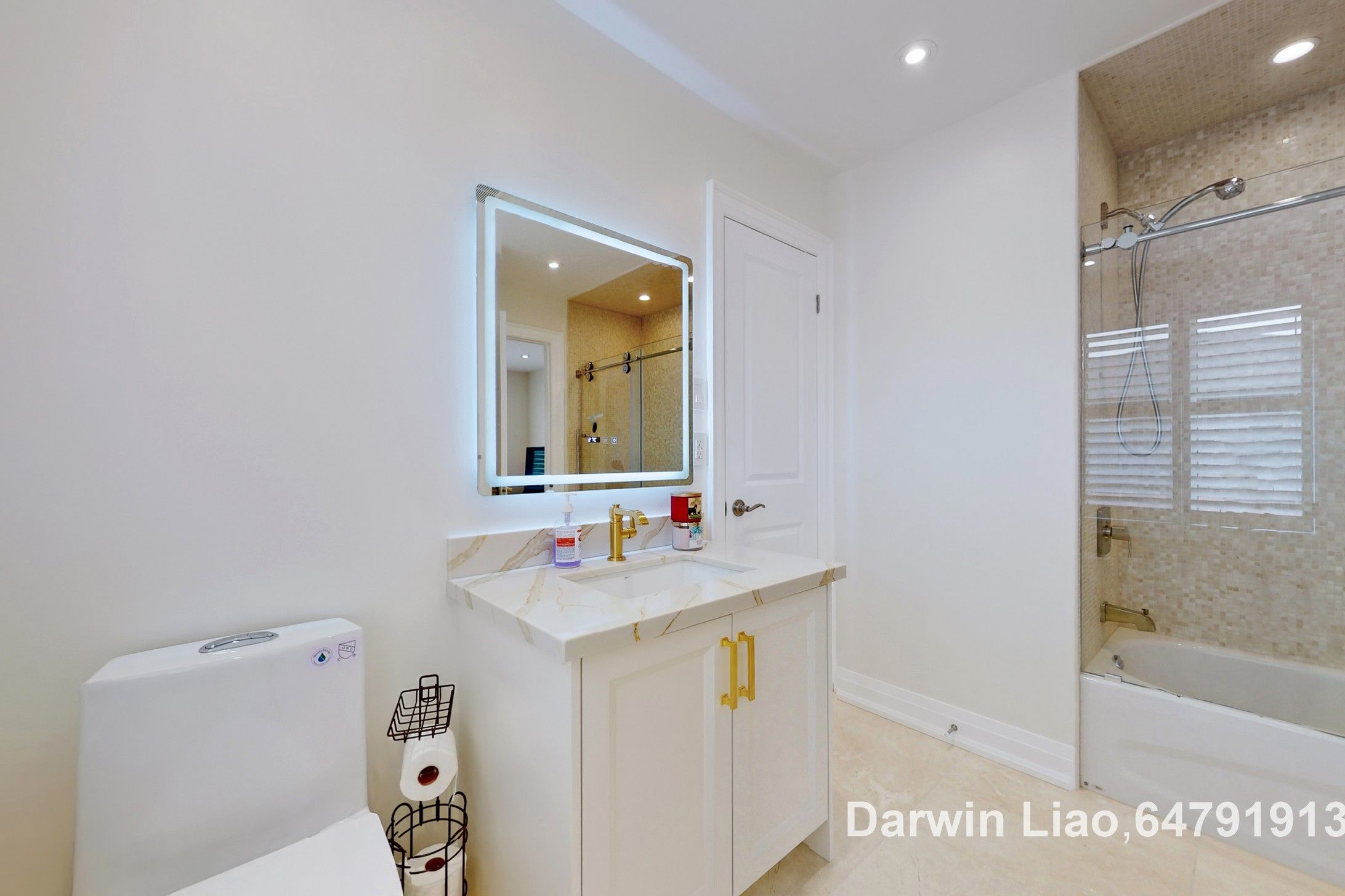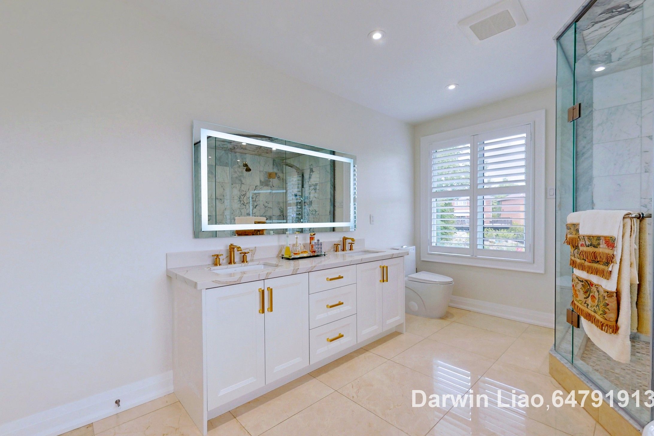 Exquisite 5-bedroom home at prime location, a magnificent living area of 6000 sq ft (incl. basement), a vast front yard with 20 parking spaces, and a gorgeous epoxy finished 3-car garage, newly renovated and ready to move in. Greeted by a magnificent crystal chandelier when entering. All new re-design kitchen features modern luxury cabinets, marble countertops, and brand new high-end appliances. Beautiful hardwood and marble flooring, iron picket stairs, and new triple-pane energy-efficient windows with California shutter. The basement offers a delightful recreational area with one bedroom and bathroom. Newly renovated sunroom with a 200sq ft garden view, providing both energy savings and ample storage space. Conveniently located near a plaza, park, and bus stop. Falls within the boundary of the prestigious St. Theresa of Lisieux and RH High schools. A prime location with excellent potential for future development.All Elfs, All Exist Wdw Covers, All Crystal Lights, New S.S Apls(Cooktop, Fridge, Oven) Dw, & Mw. Cac'16, Hef'18, Hwt'16', Humidifier, Elec Air Cleaner, Roof'21.