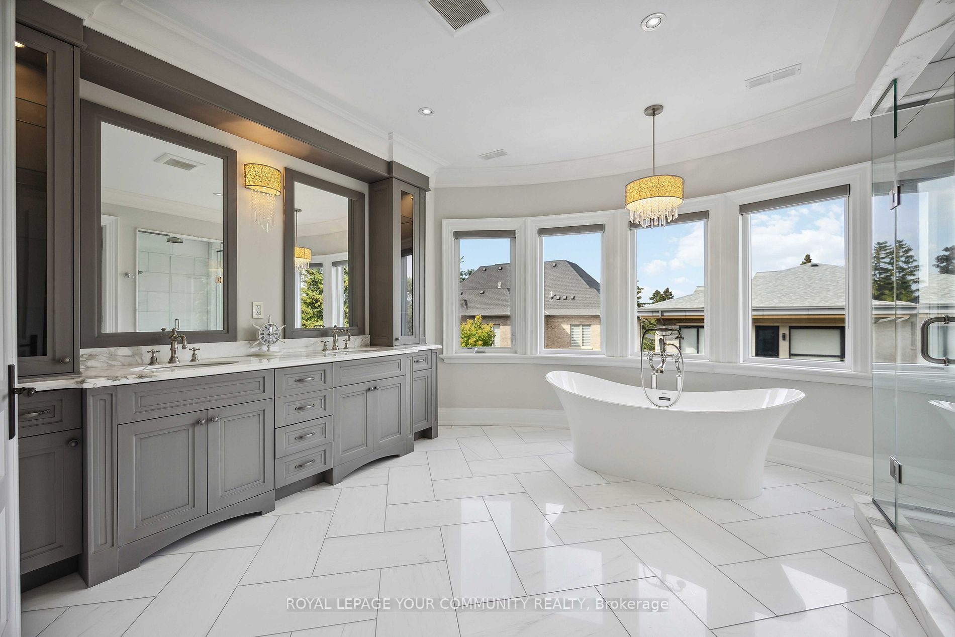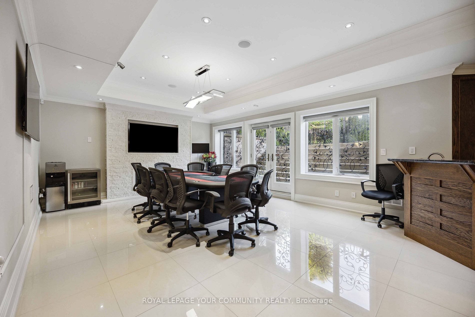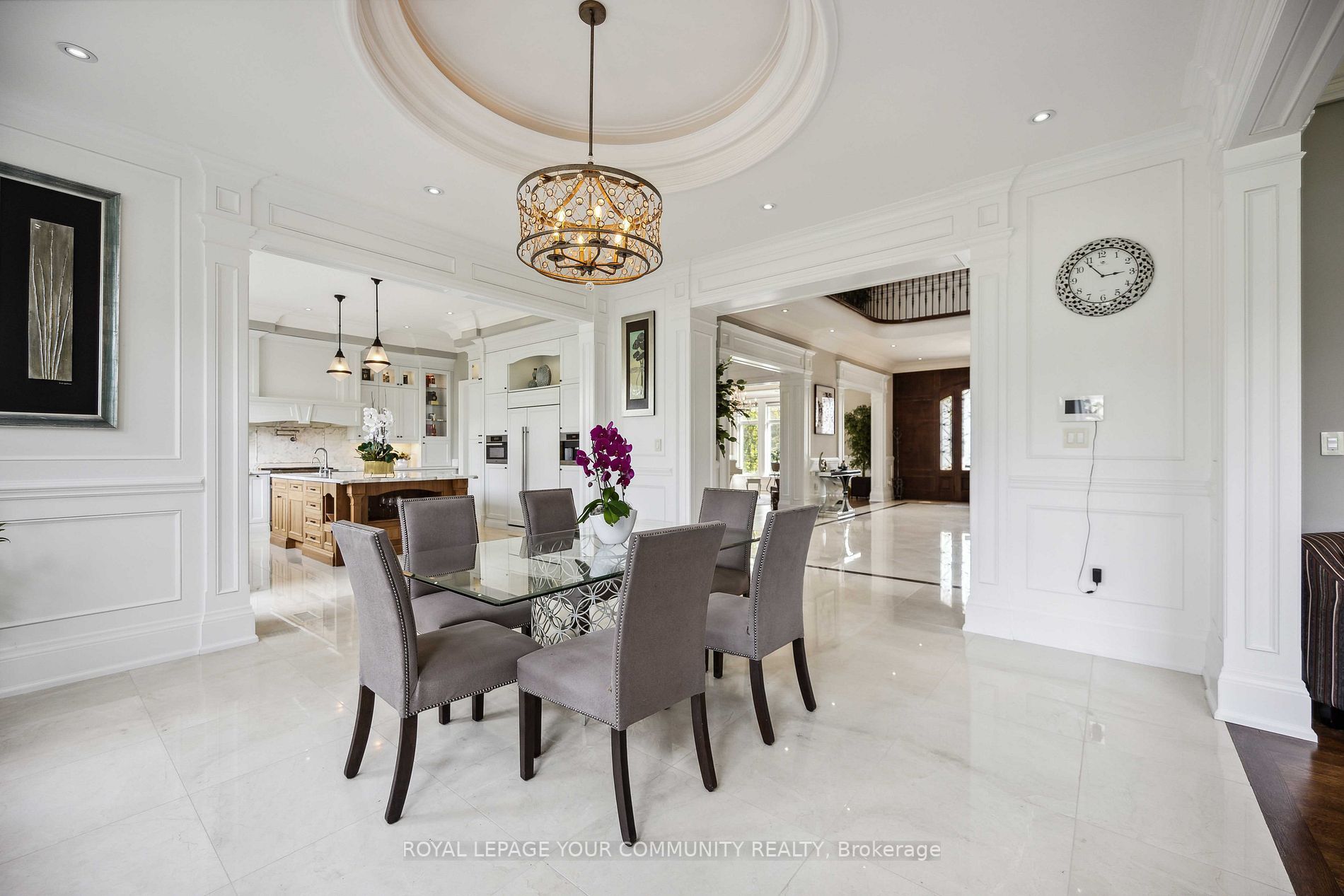 最精细的木饰和工艺,主层挑高11英尺,超大窗户,入口处38英尺天窗搭配宏伟的灰泥穹顶,为整个区域引入自然光。整个区域铺设白橡木、大理石、瓷砖地板,