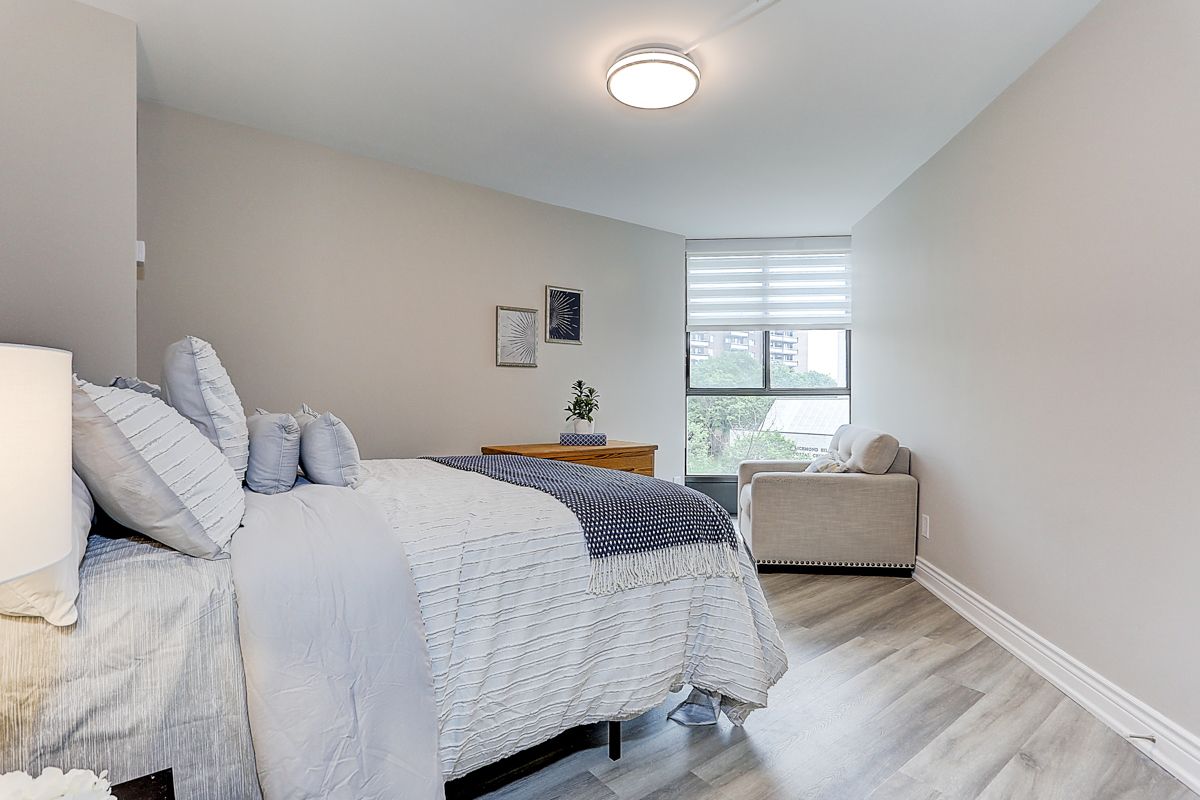 Gorgeous, Fully Renovated With The Best Layout. Immaculate + Spacious Corner Unit, Approx 1300 Sq Ft. 3 Bedrooms, 2 Baths In Peaceful And Well- Managed Building. High-End Finishes Throughout, Smooth Ceilings Installed In Whole Unit, Pot Lights In Living Room, Kitchen And Hallway. Fully Renovated Kitchen And Both Bathrooms And Tiling, New Floors, Oak Steps and railings, All Doors Replaced 2022, All Appliances 2022, Custom Made Blinds 2022 and Zebra Blinds For Bedrooms. Fan Coils 2022, New Ceiling Fixtures For Each Bedroom/Kitchen/Laundry Room/Bathrooms, New Bathtubs/Shower Stalls, Vanities, Mirrors, etc. Large Balcony, 2 Parking Space And A Locker. Walking Distance To Yonge St. Hillcrest Mall, Transit, School, Entertainment, & Great Parks.S/S Fridge, Dishwasher, Stove, Hood Range, Washer, Dryer, All Blinds, All Electric Light Fixtures.