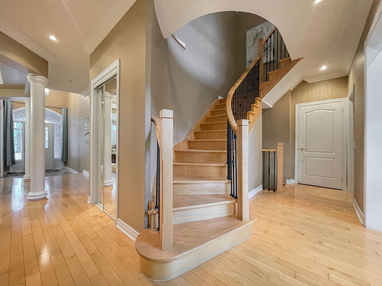 Luxurious Living On Rolling Ravine Community In Jefferson!3121 sqft as MPAC.Almost 5000 Sqft Of Living Space.Functional laylout.This Beauty Features: Stone interlock front drive way and back yard. Low maintenance for you. Enclosed Front Porch, Granite Foyer,Maple Hardwood Floor Through-Out,Coffered Ceiling In Dining With Built In Lighting, Custom California Shutters, Kitchen Has Granite Counter,Servery With Extra Cabinets,Full Pantry,Open To Above Family Room Filled With Natural Lights + Fireplace,Built-In Shelves,Main Floor Office. Walking distance to super market , pharmacy , bank and grocery store. top Richmond Hill High School.Excellent elementary school