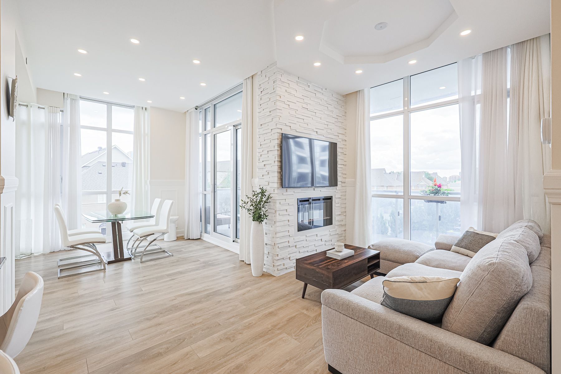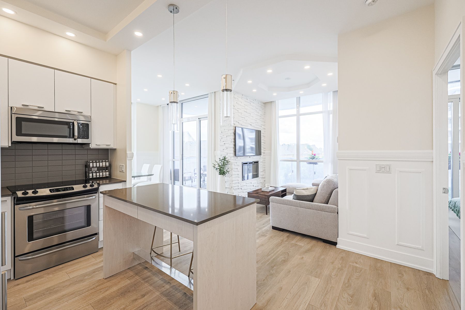 Experience Unparalleled Luxury In This Meticulously Upgraded Corner Unit Steps From Hillcrest Mall On Yonge St. 2 Bright Bedrooms Plus Den, 10' Smooth Ceilings With Pot Lights, Floor To Ceiling Windows. Living Room Stone Wall W/Wall Mounted Elec Fp. Modern Kitchen With S/S Appl & Quartz Counters. Wrap Around Balcony (193 Sq Ft). Fantastic Amenities Include 24Hr Concierge, Indoor Pool, Steam Room & Spa, Gym, Yoga Room, Theatre, Game Room, Party Room, 2 Terraces, Car Wash, Guest Suites, Visitor Parking, Boardroom, Pet Groom Room, BBQ Allowed.S/S Fridge, Stove, B/I Dishwasher, Microwave/Fan, W/D, Fireplace. 1 Parking & 1 Locker. All Existing Window Coverings & Light Fixtures.